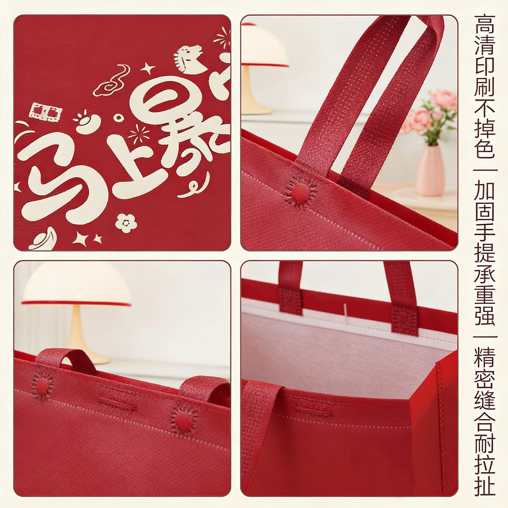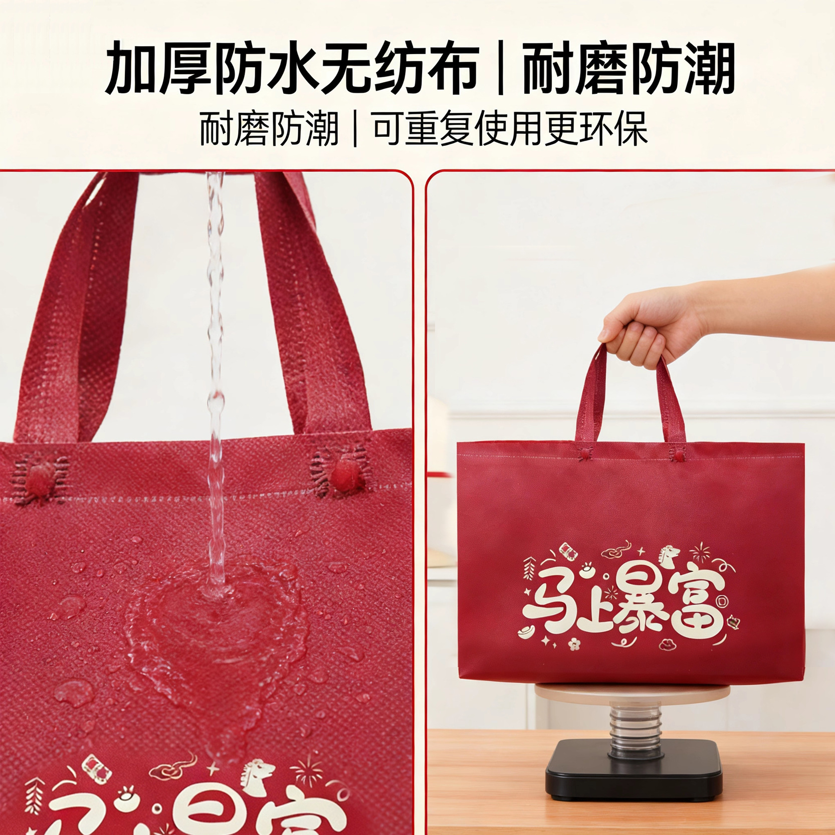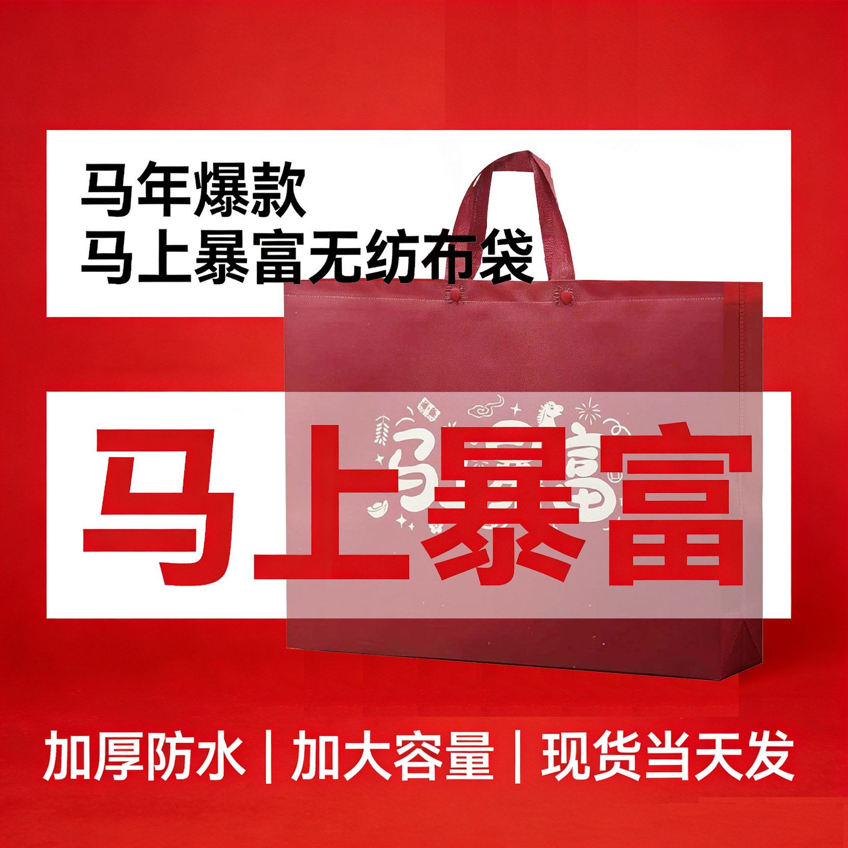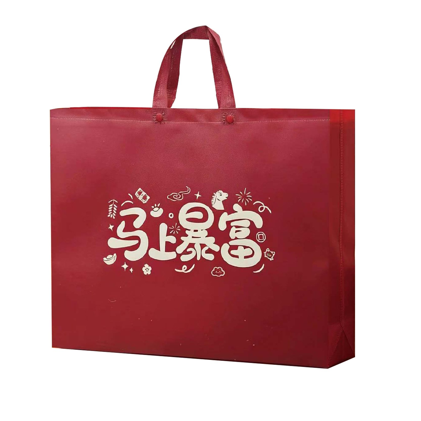 红色新年款无纺布手提马上暴富送礼加厚环保广告礼品袋现货批发