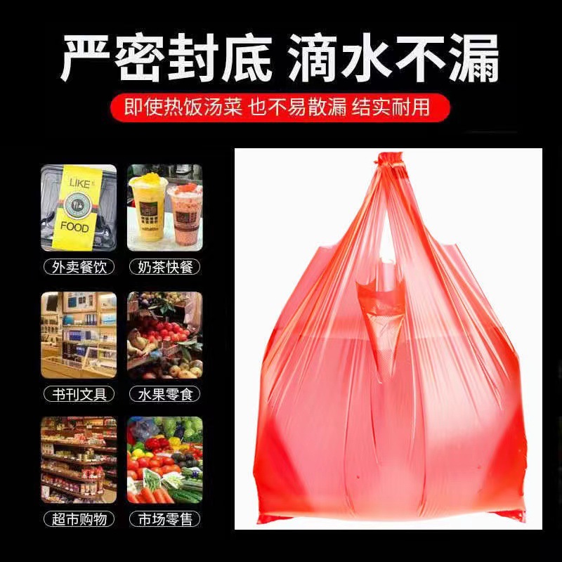 红色塑料袋水果超市手提袋蔬菜购物袋外卖打包袋大中小号背心袋子