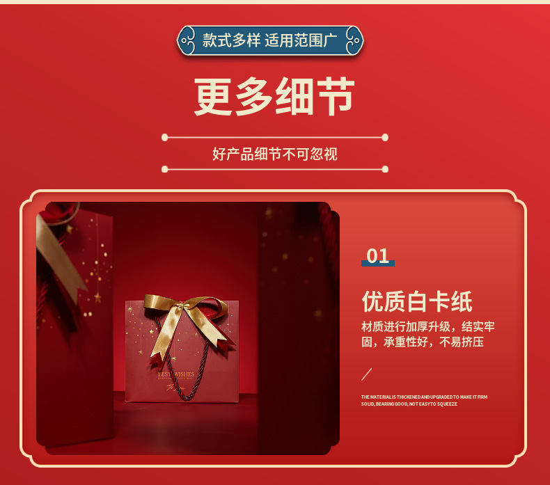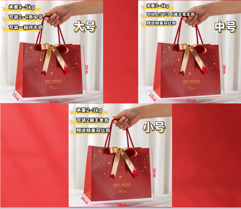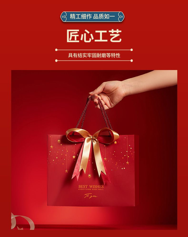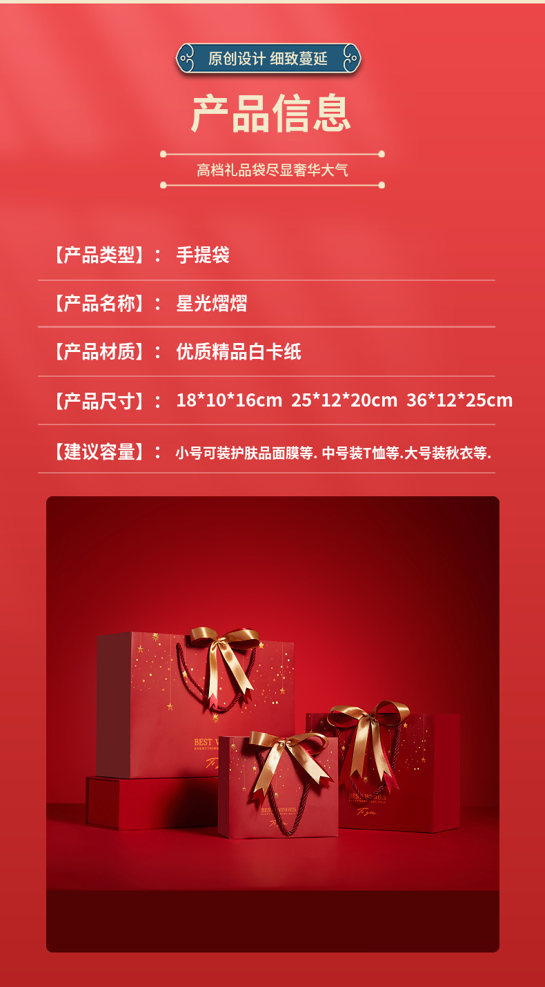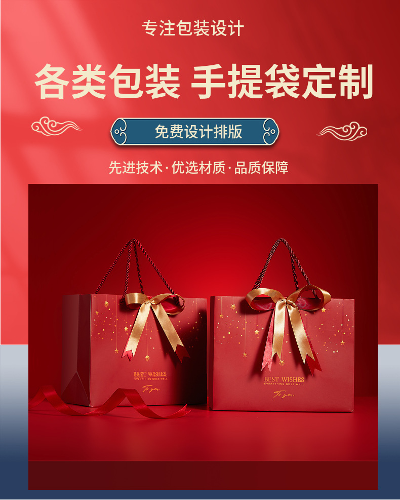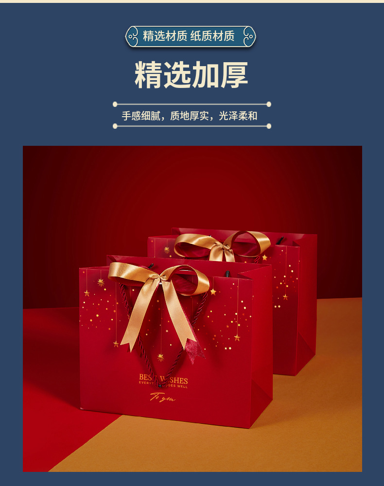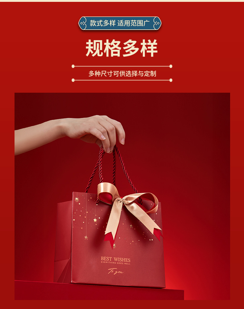 情人节新年礼品袋生日伴手红色喜礼袋节庆通用纸袋赠丝带手提袋