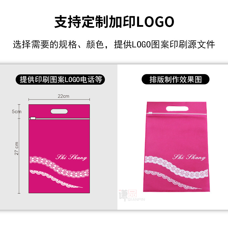 私护用品收纳袋情趣内衣包装袋玫红色可印LOGO手提无纺布拉链袋