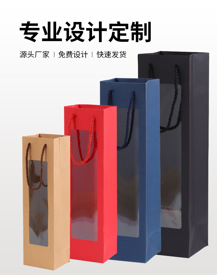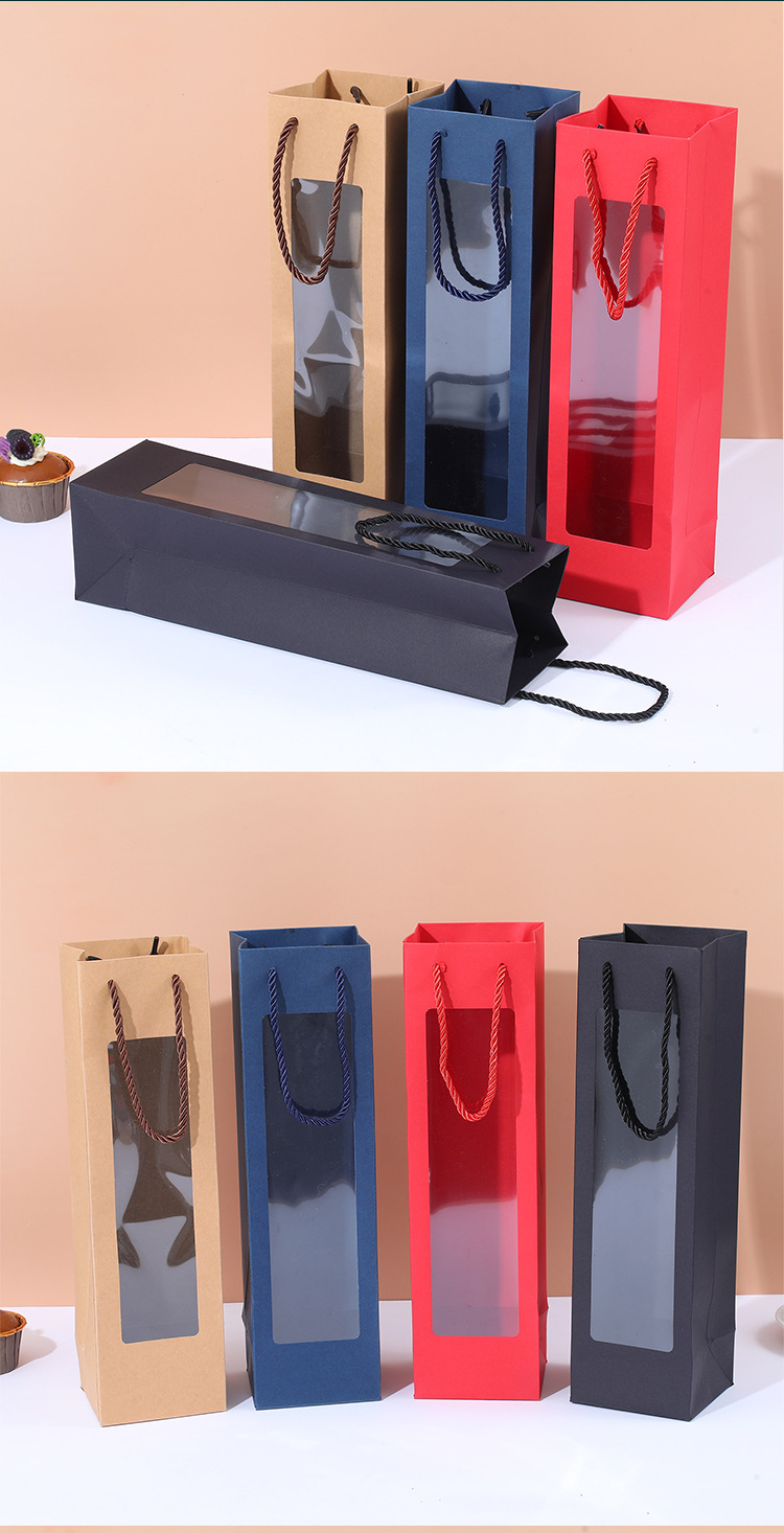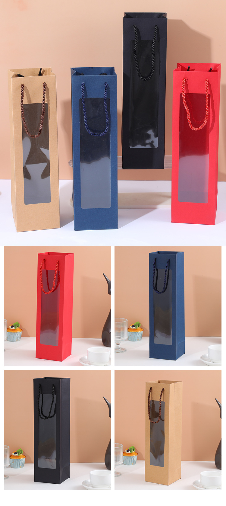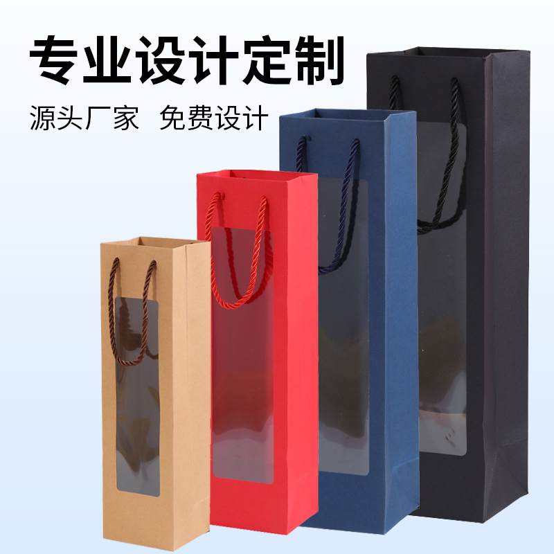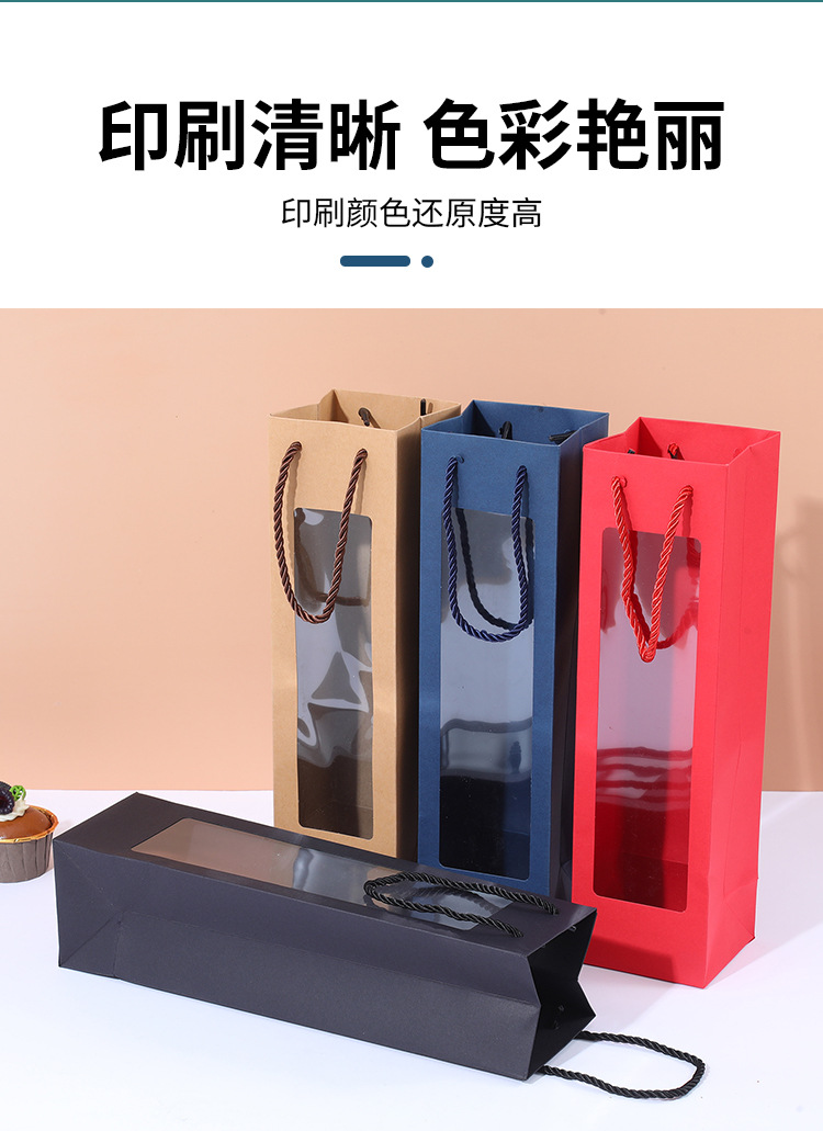 跨境经典单只装红酒袋精美简约透明开窗香槟葡萄酒卡纸礼品包装袋