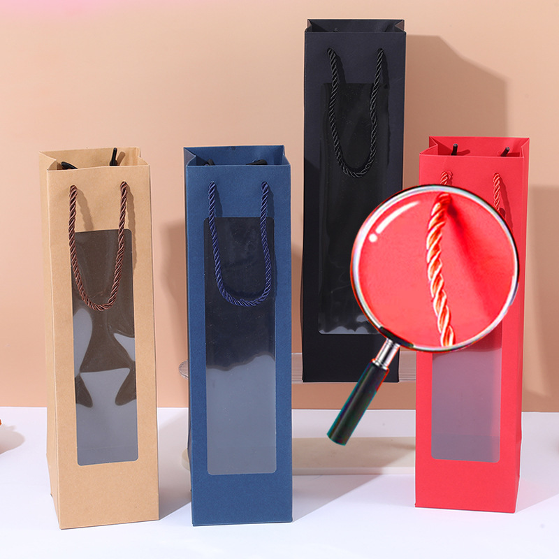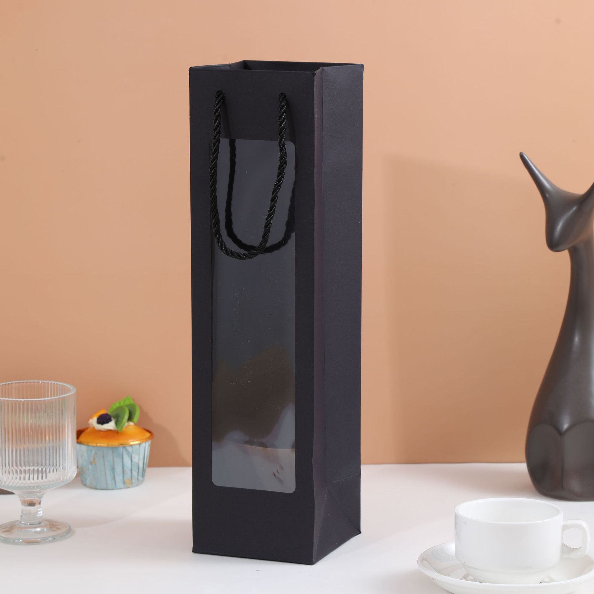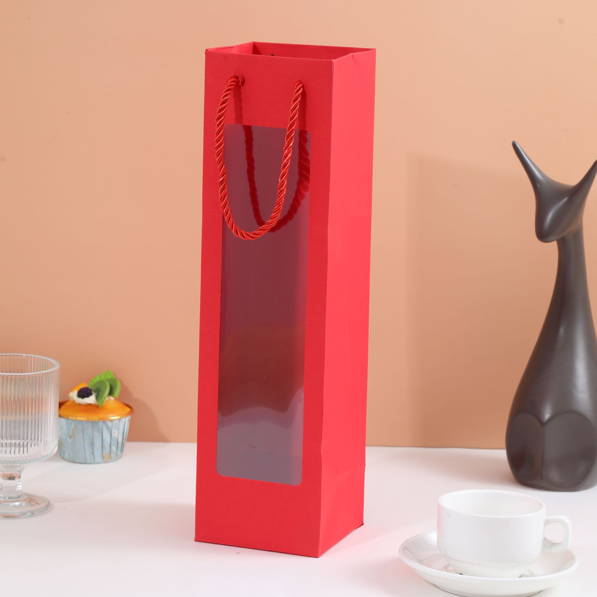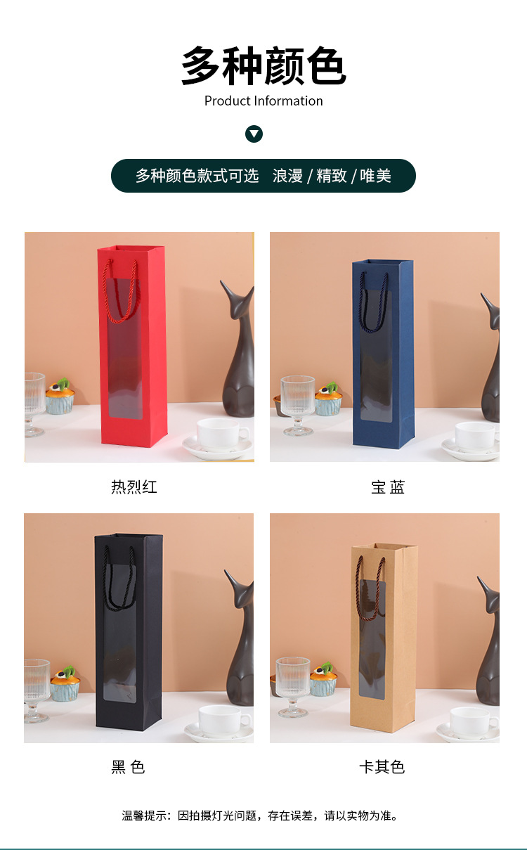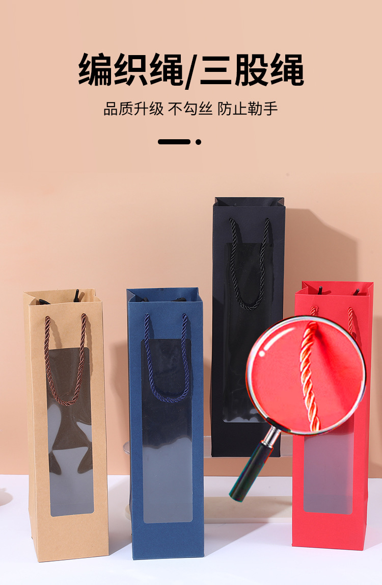 跨境经典单只装红酒袋精美简约透明开窗香槟葡萄酒卡纸礼品包装袋