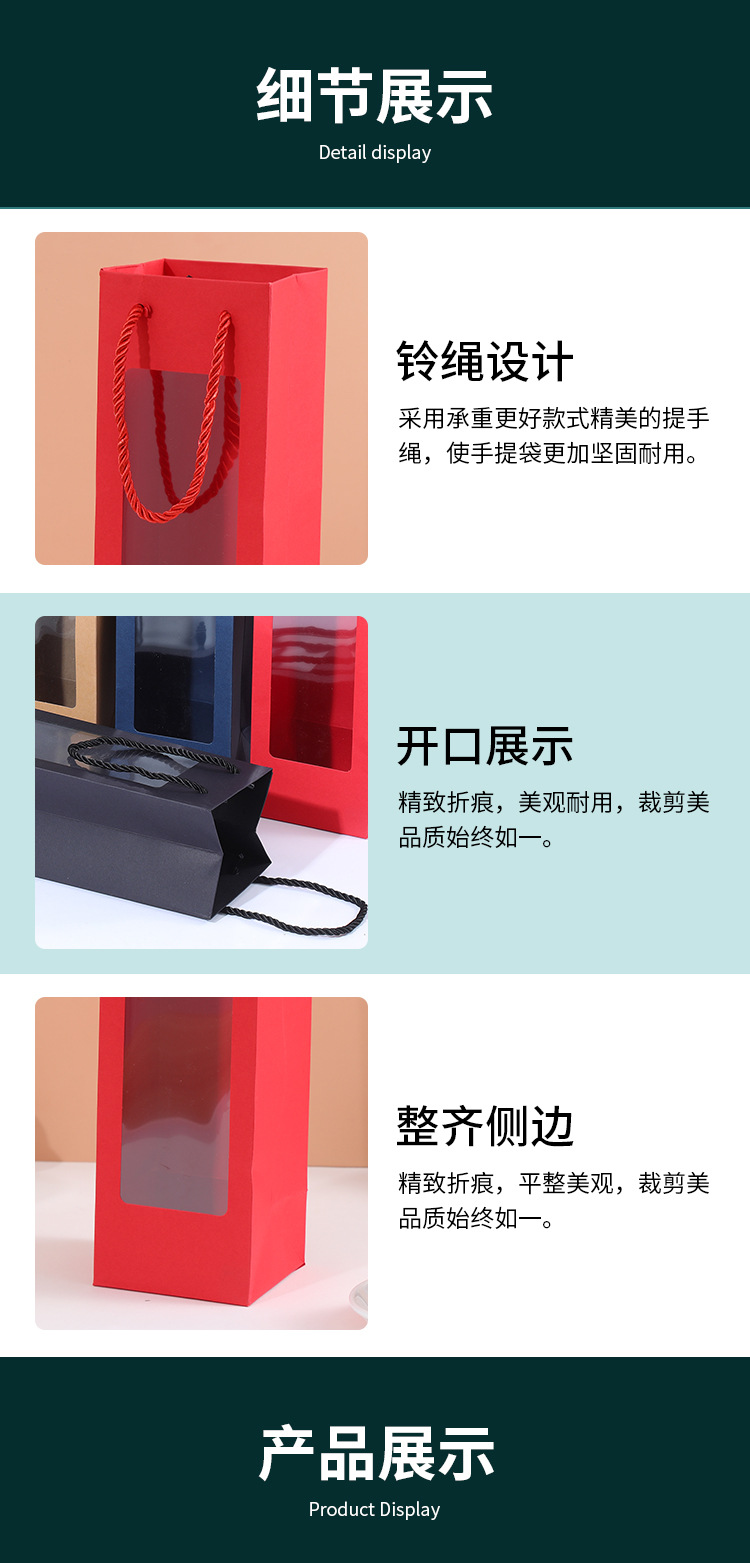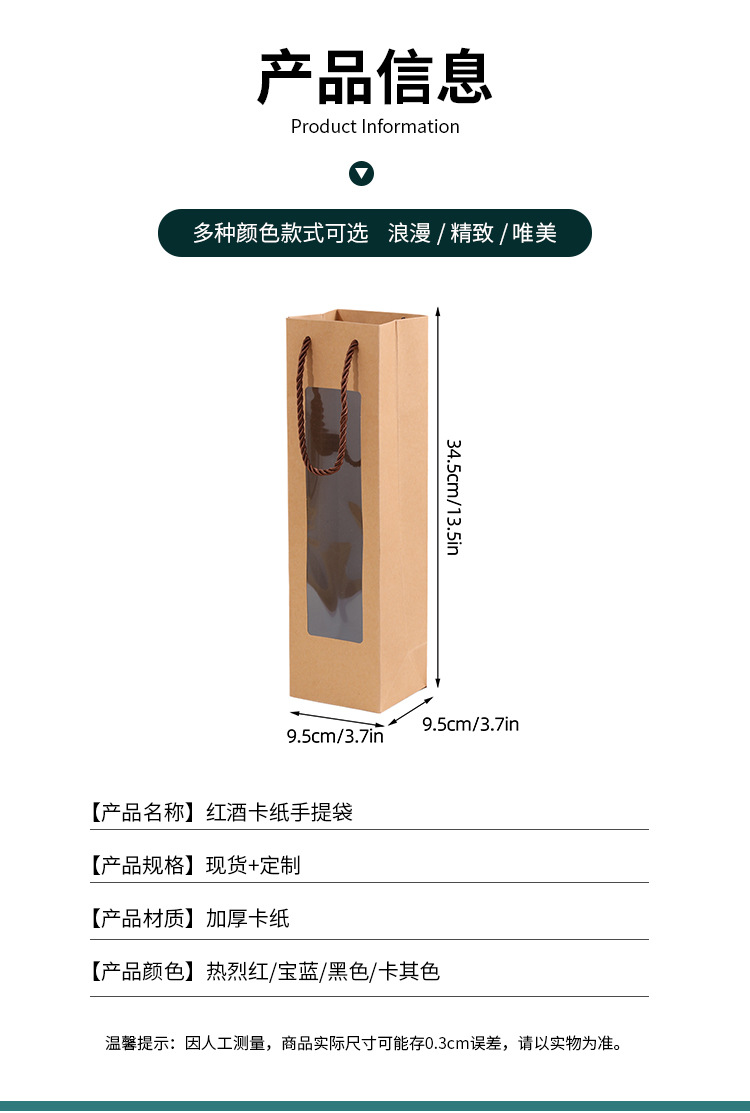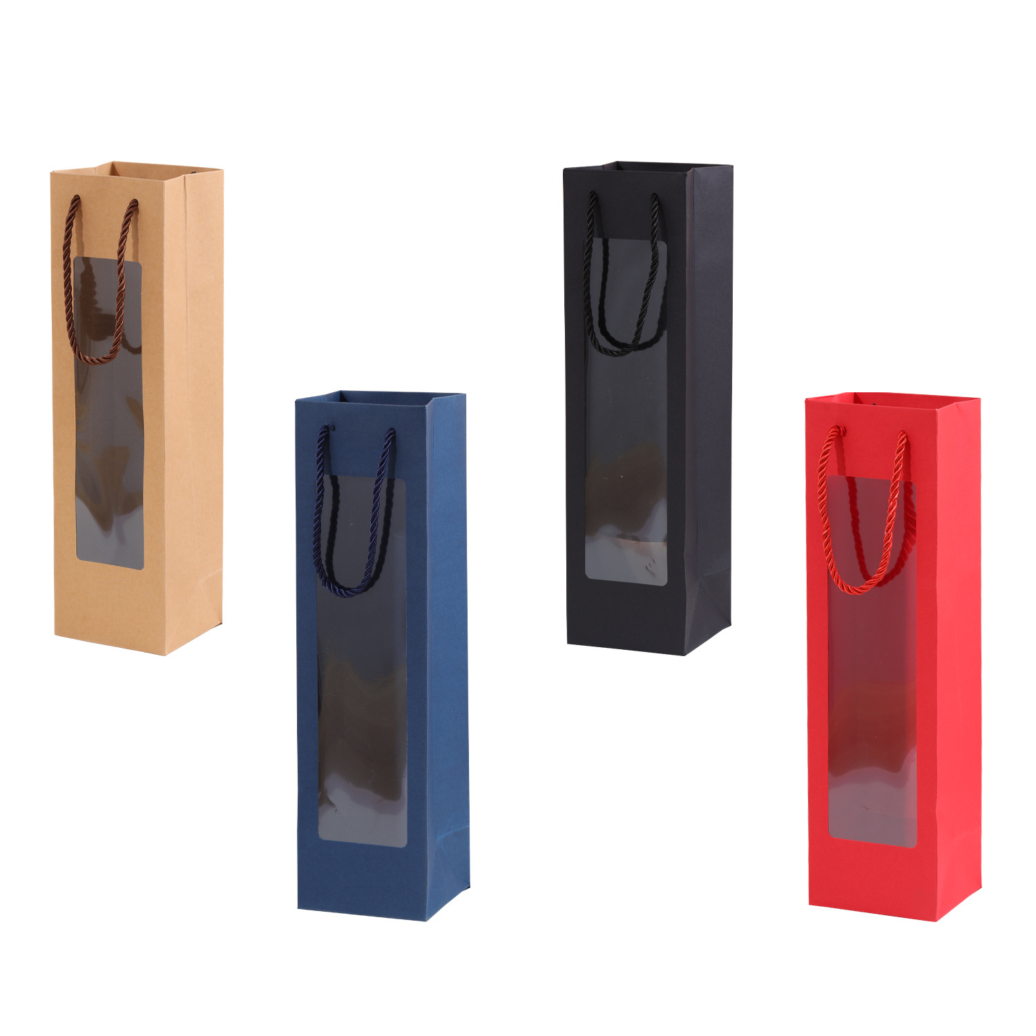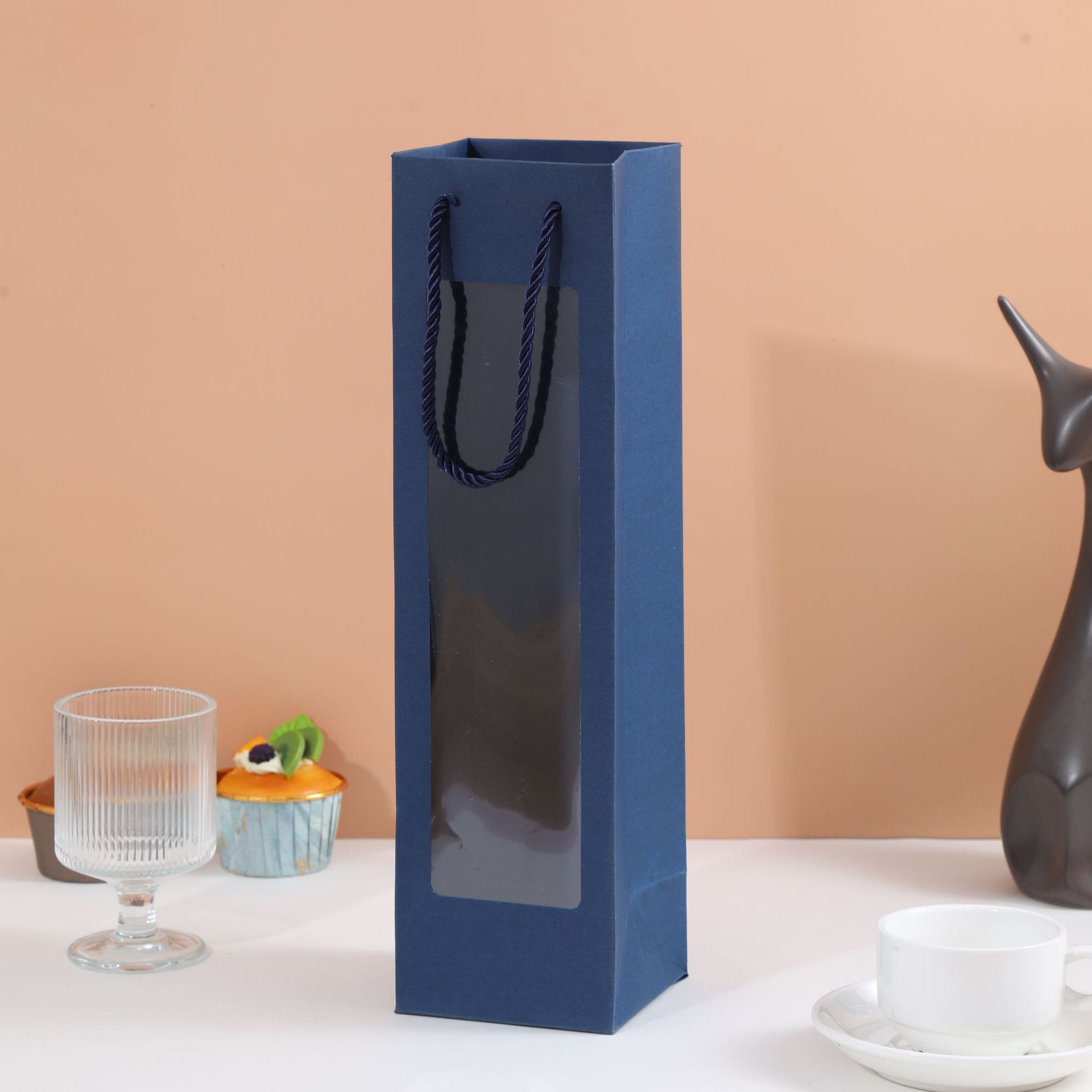 跨境经典单只装红酒袋精美简约透明开窗香槟葡萄酒卡纸礼品包装袋