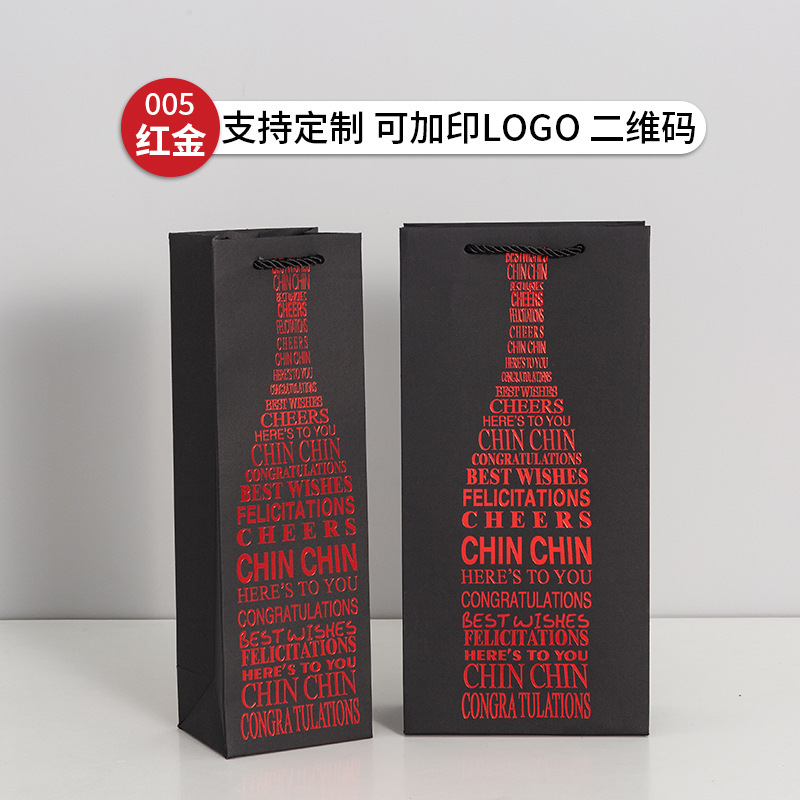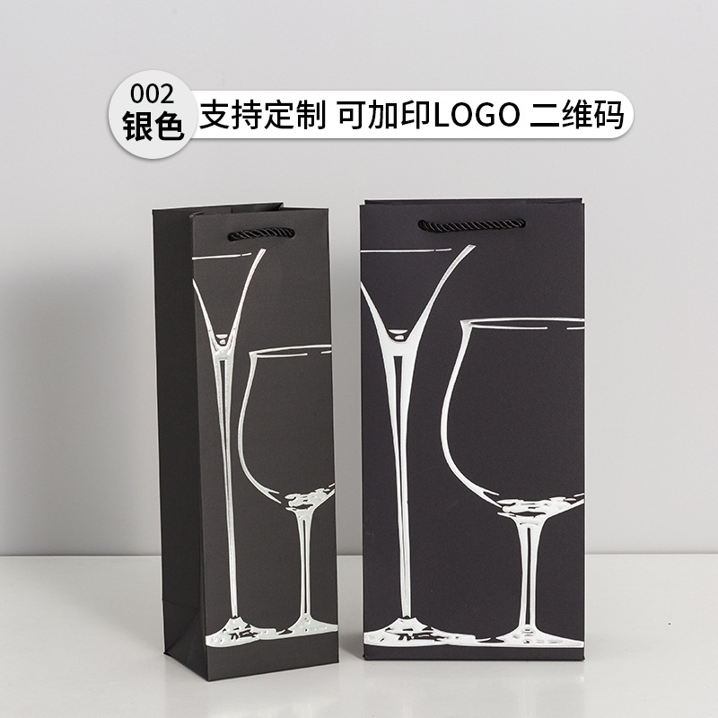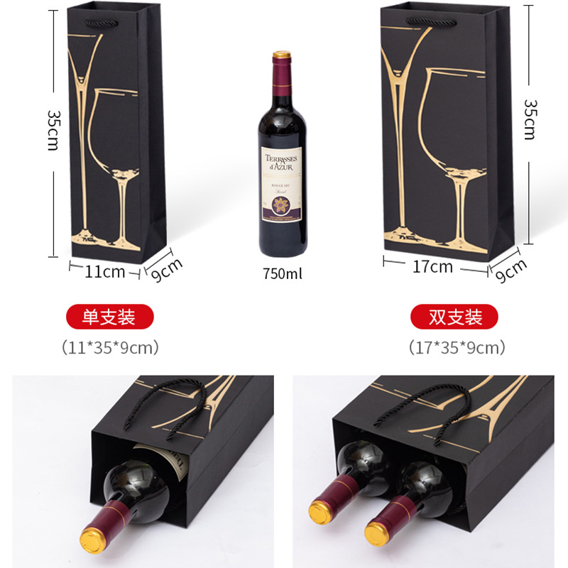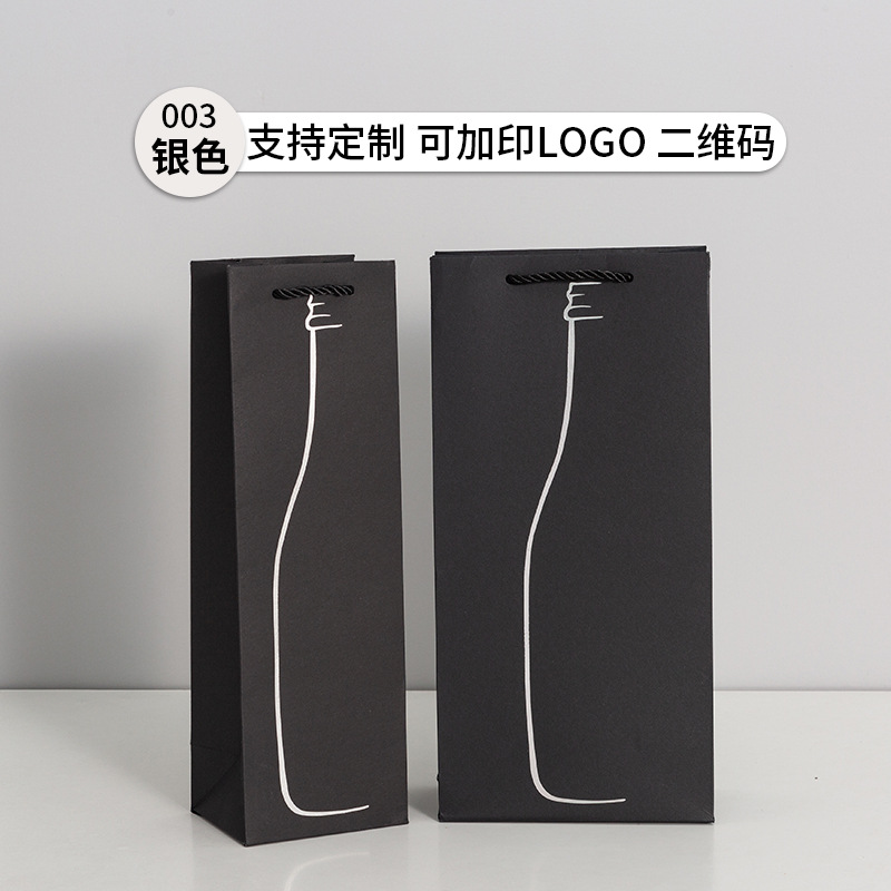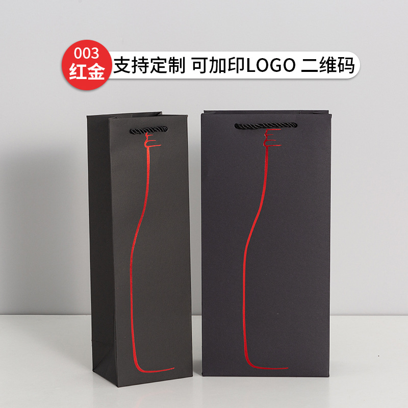 红酒袋批发黑卡烫金红酒手提袋酒类礼品包装袋加厚酒水袋印可logo