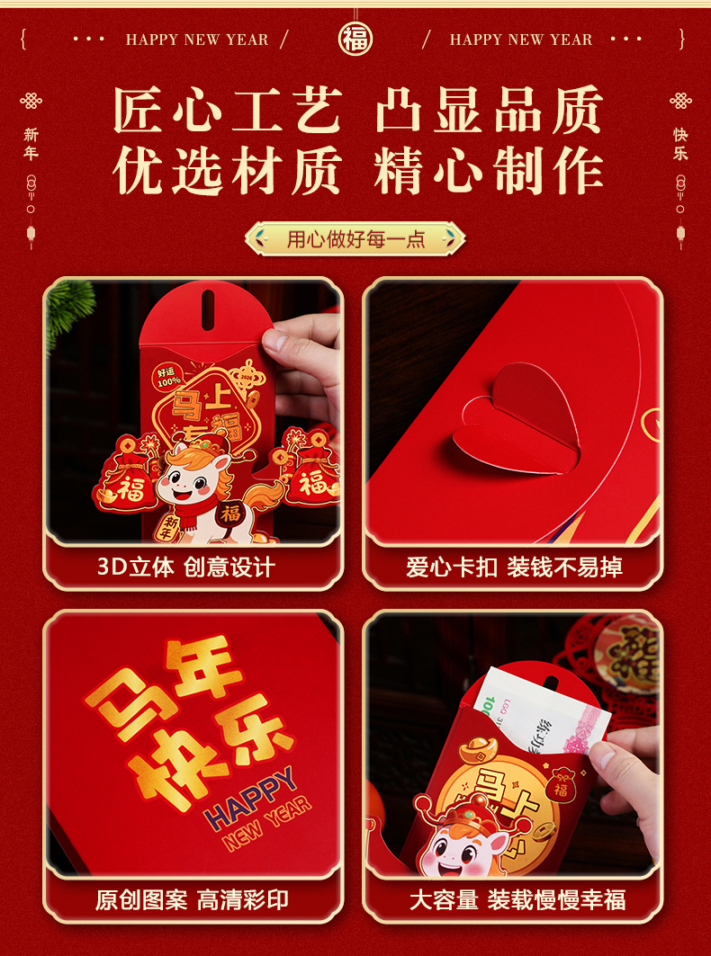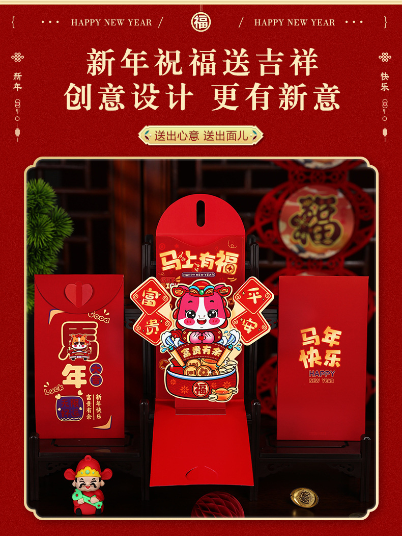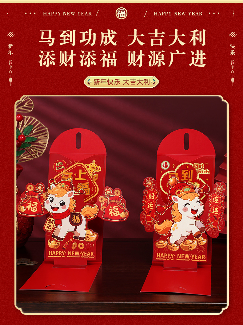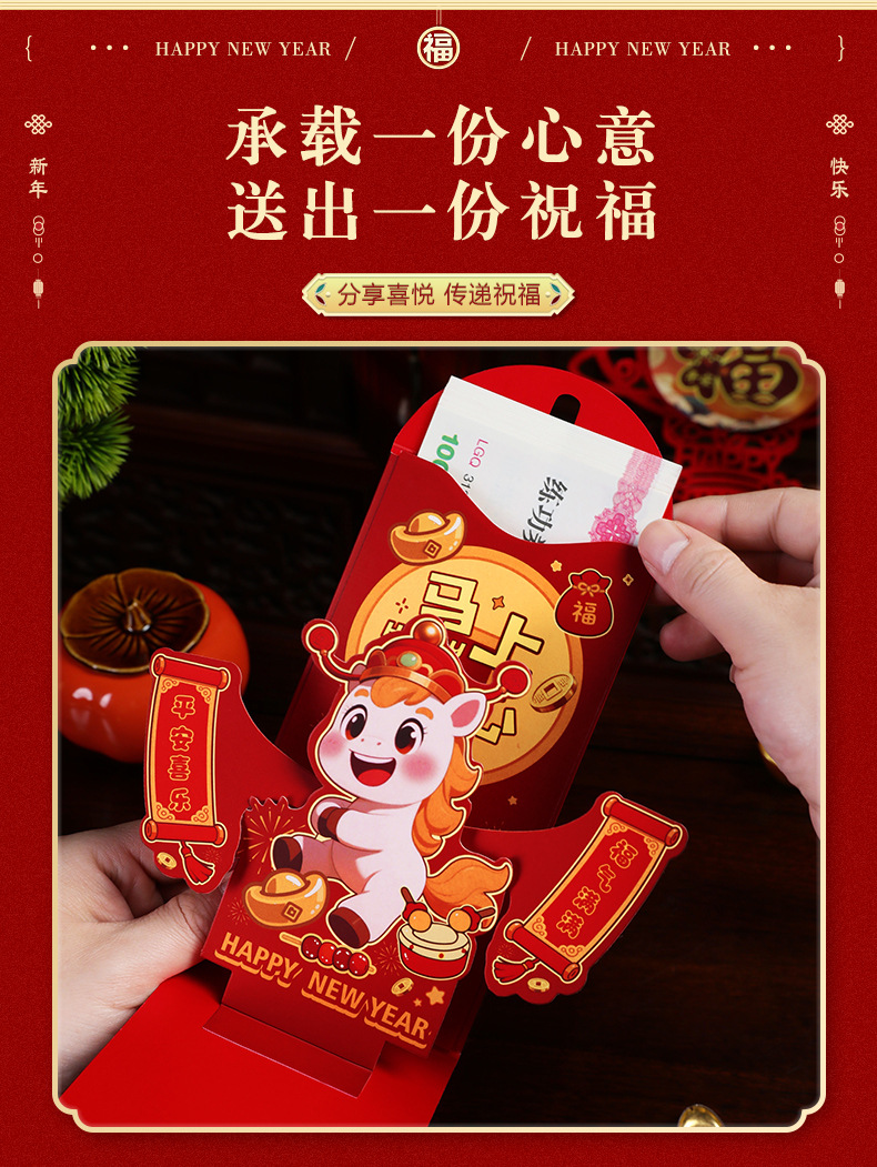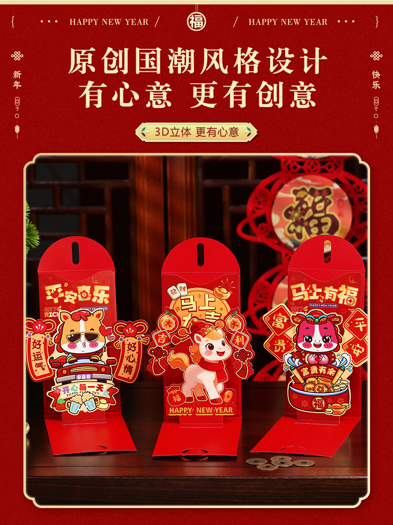 3D立体新款马年红包创意折叠新利是封包过年压岁包2026红包