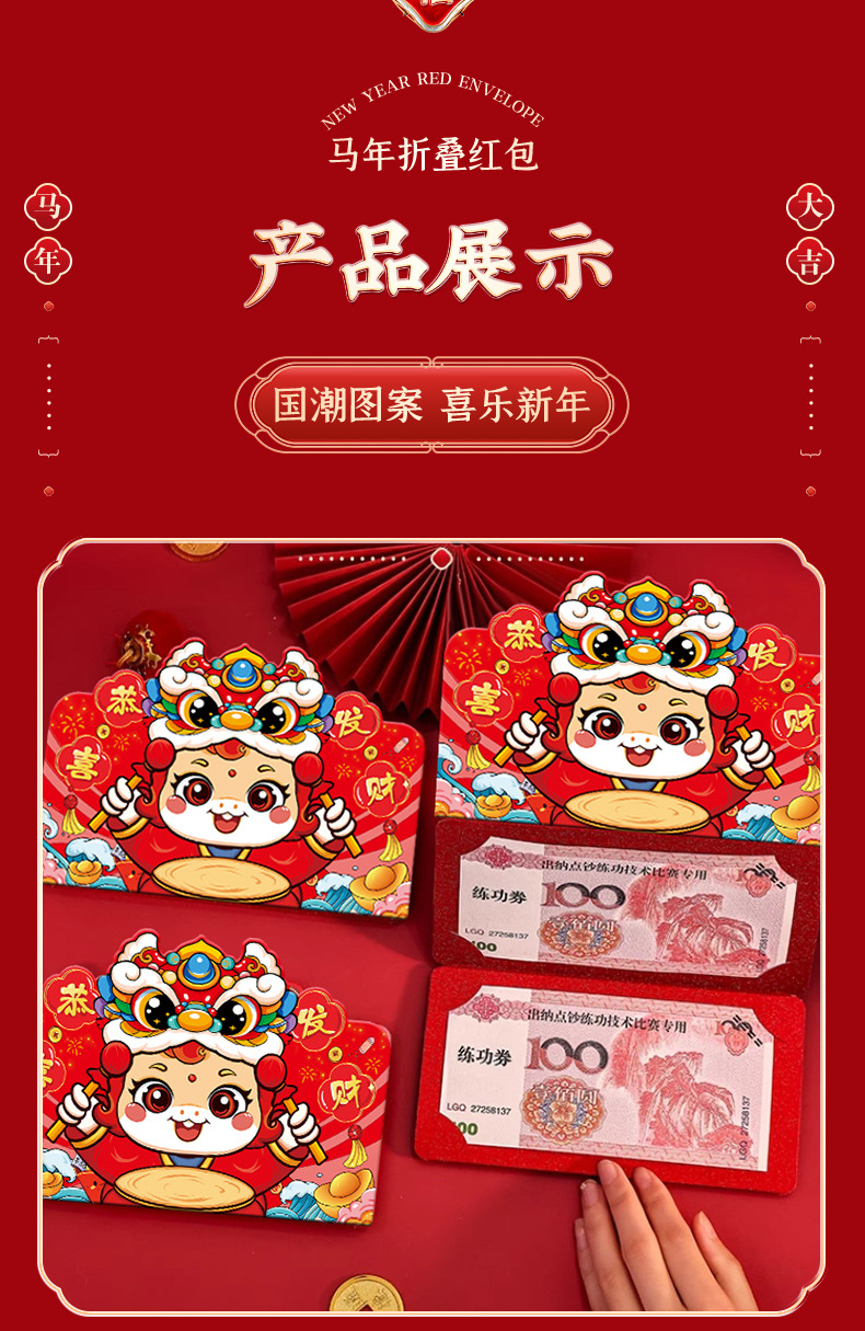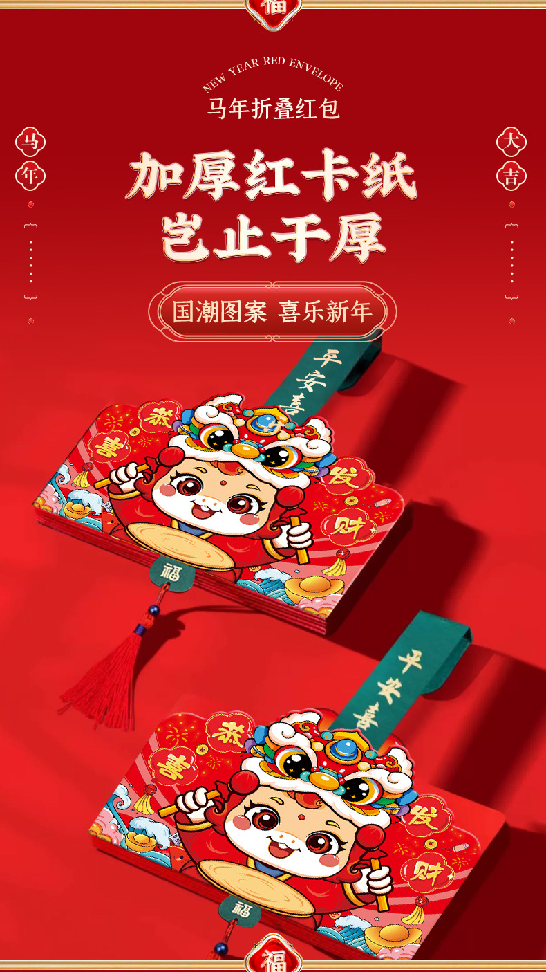 马年春节折叠红包创意卡通过年利是封2026新款新年封包小孩压岁钱