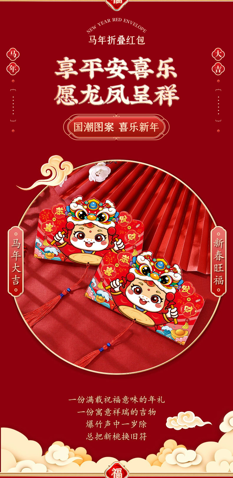 2026 new new year envelope children‘s lucky money horse year spring festival folding red envelope creative cartoon new year gift envelope