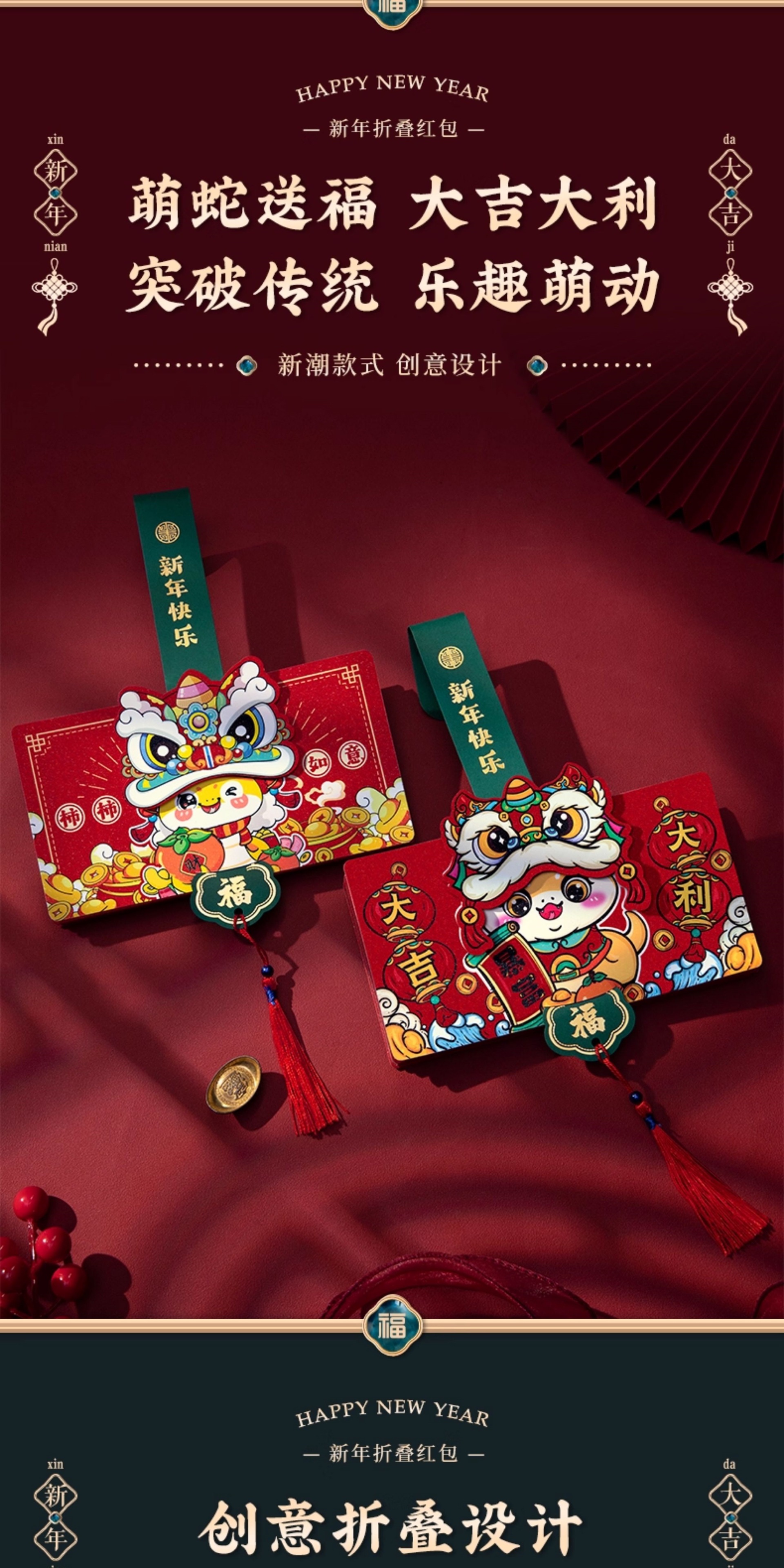 马年春节折叠红包创意卡通过年利是封2026新款新年封包小孩压岁钱