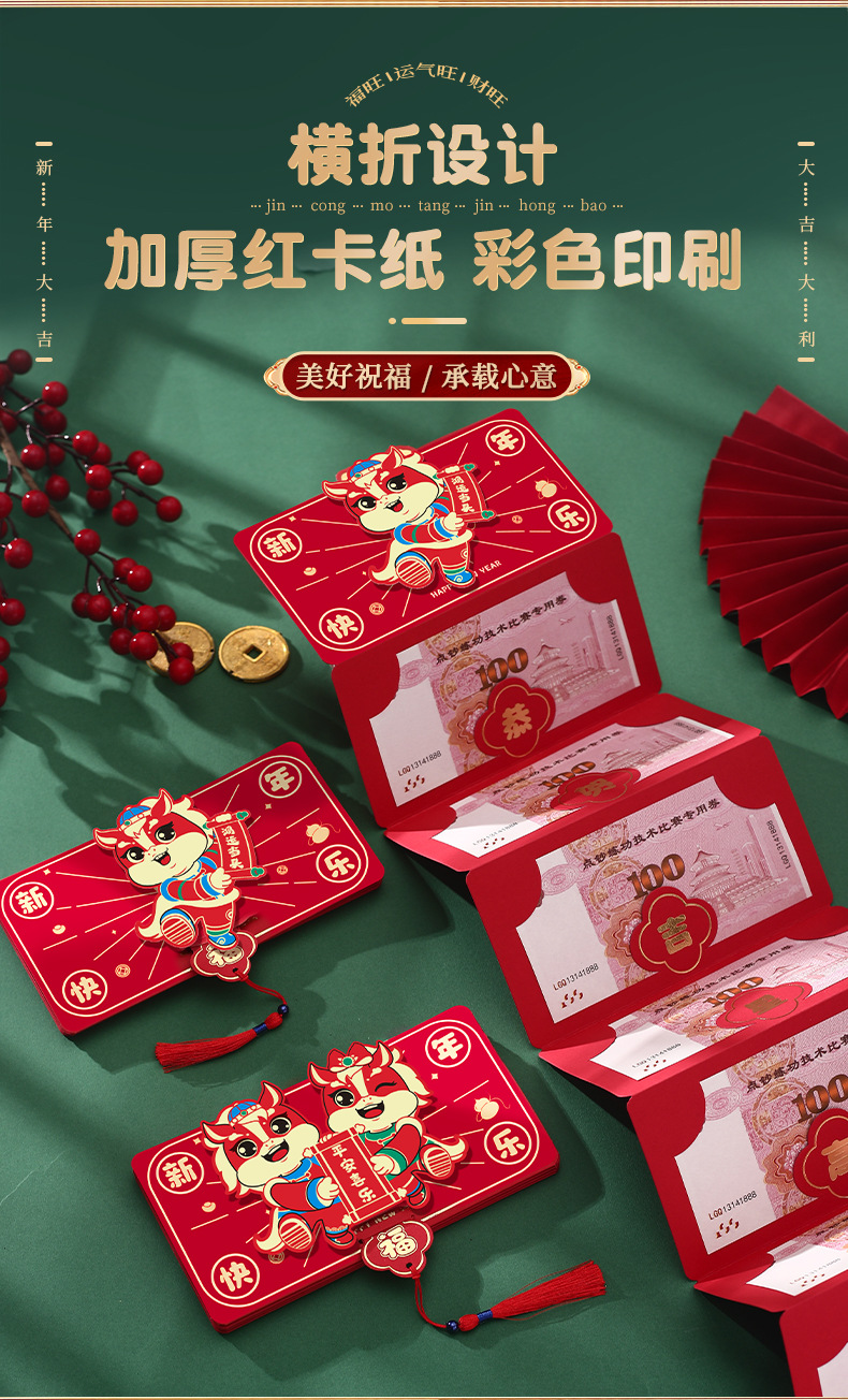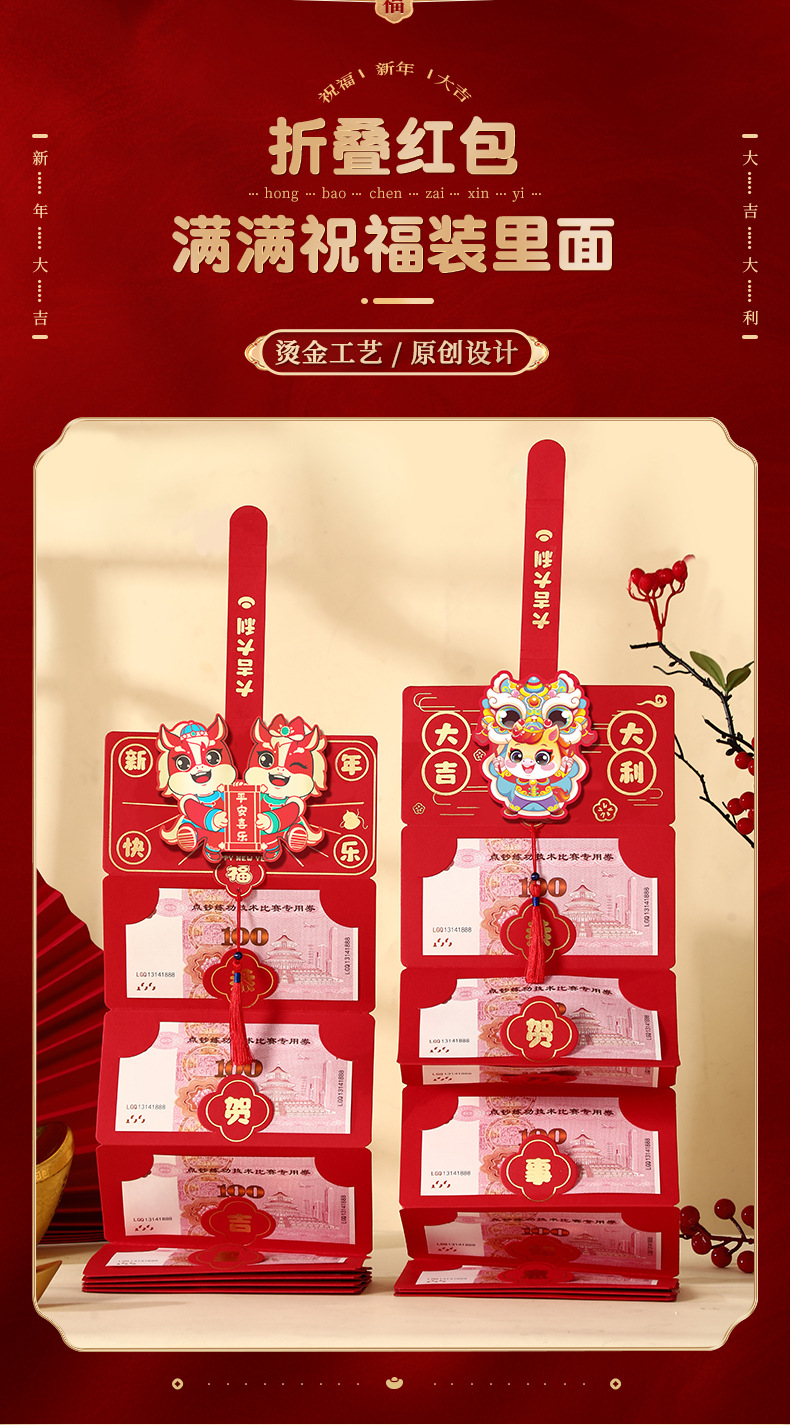 马年春节折叠红包创意卡通过年利是封2026新款新年封包小孩压岁钱