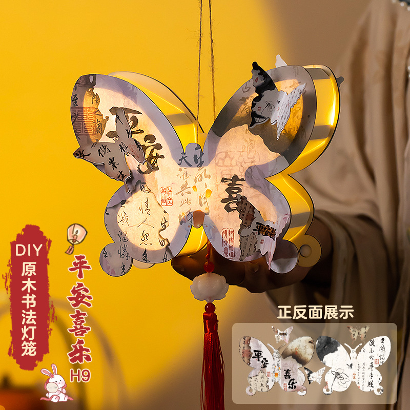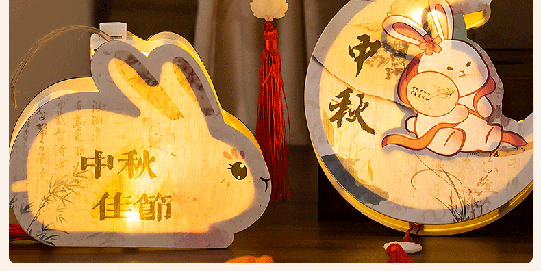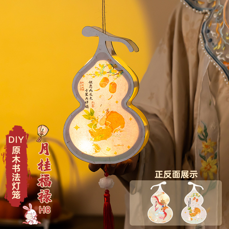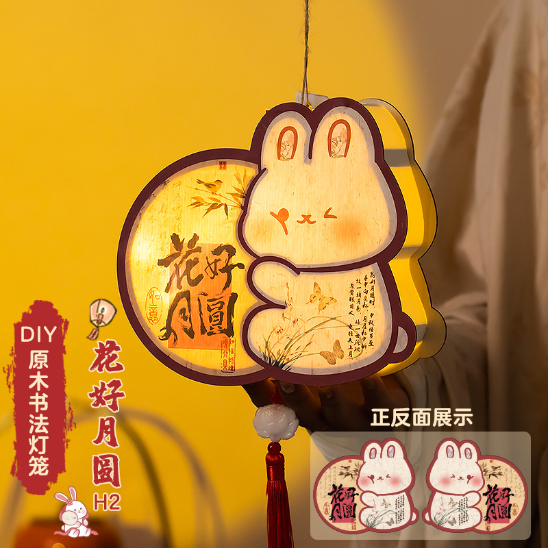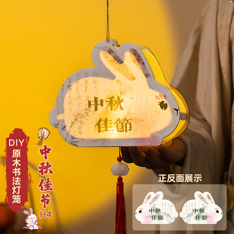 中秋节手提灯笼木质发光小兔子花灯儿童手工diy材料葫芦古风宫灯