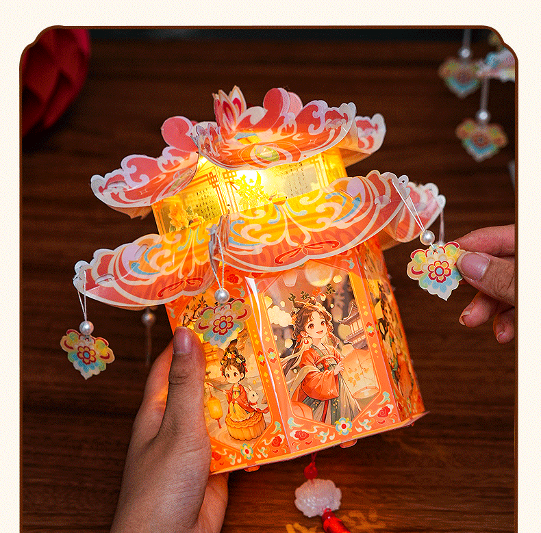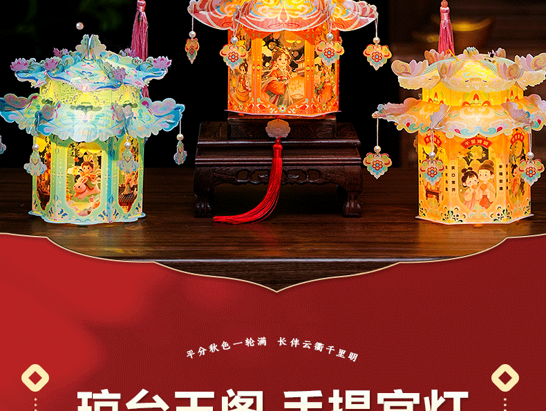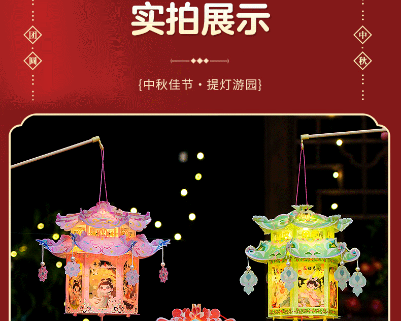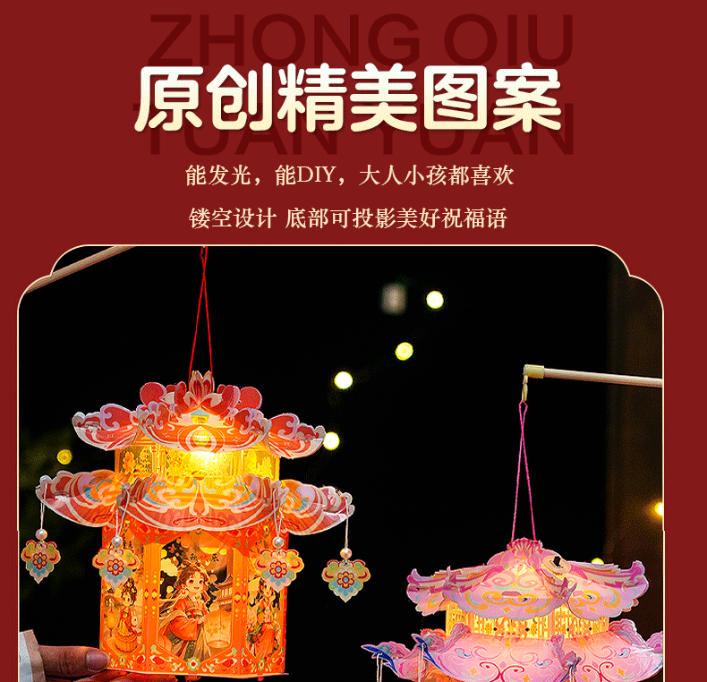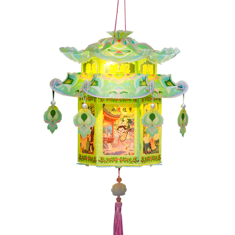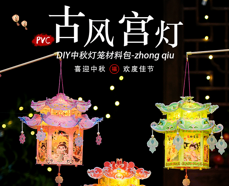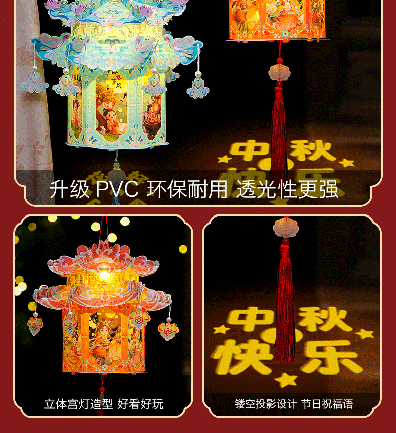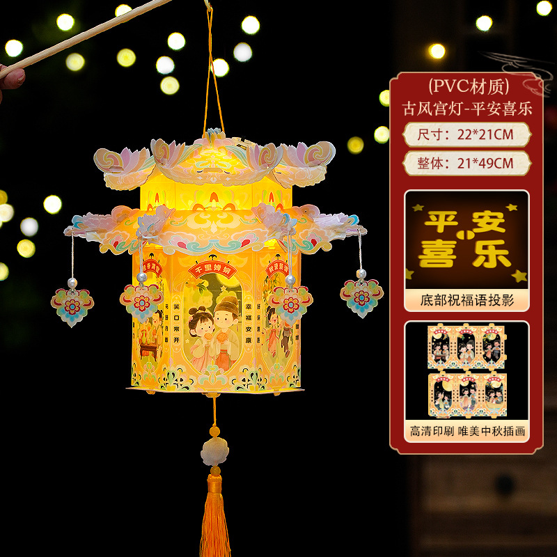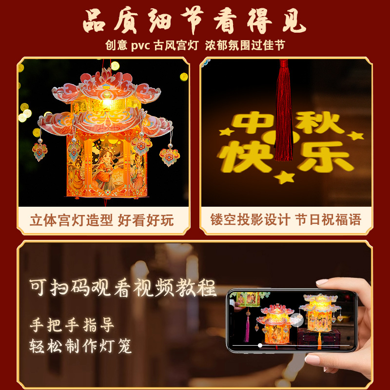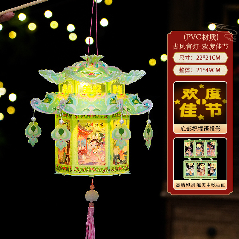 pvc中秋节手提灯笼国潮古风花灯儿童手工diy材料包发光投影小宫灯