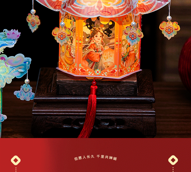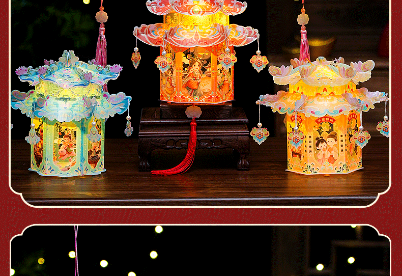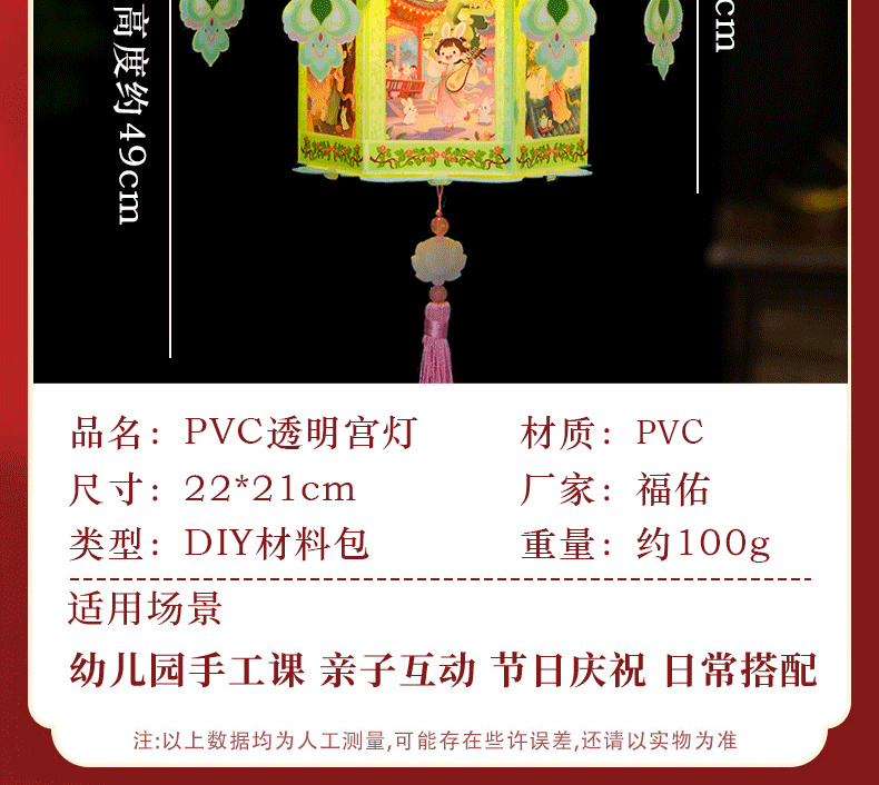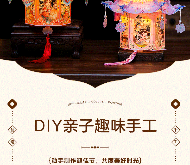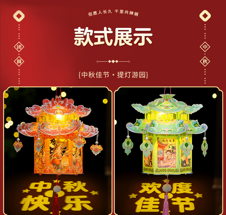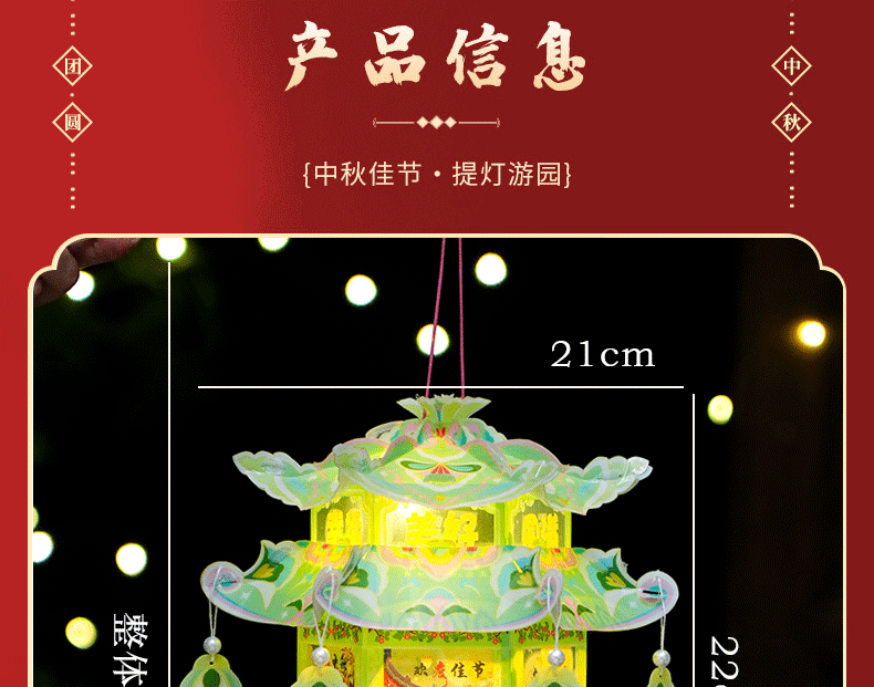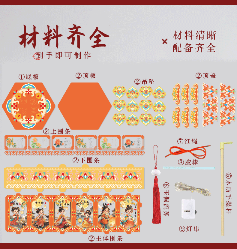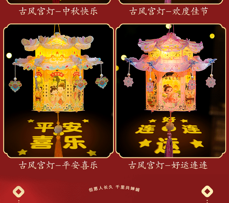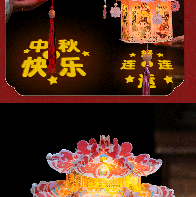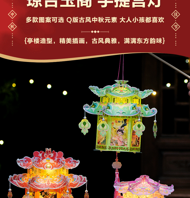 pvc中秋节手提灯笼国潮古风花灯儿童手工diy材料包发光投影小宫灯