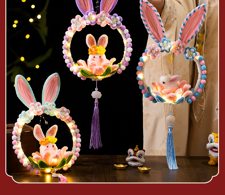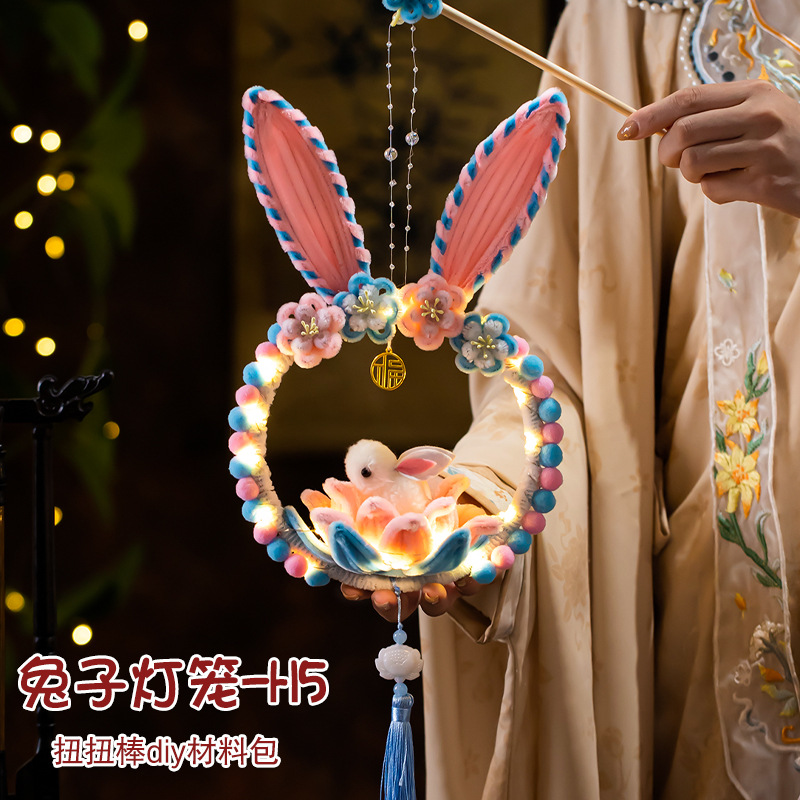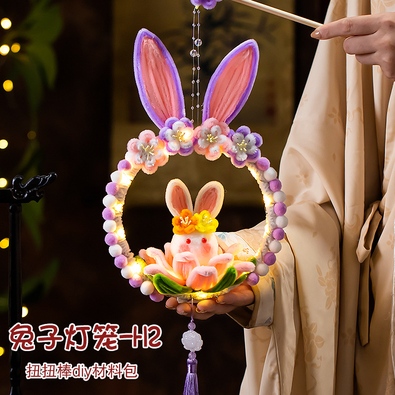 中秋节兔子灯笼莲花灯扭扭棒手工diy材料儿童手提发光灯笼荷花灯