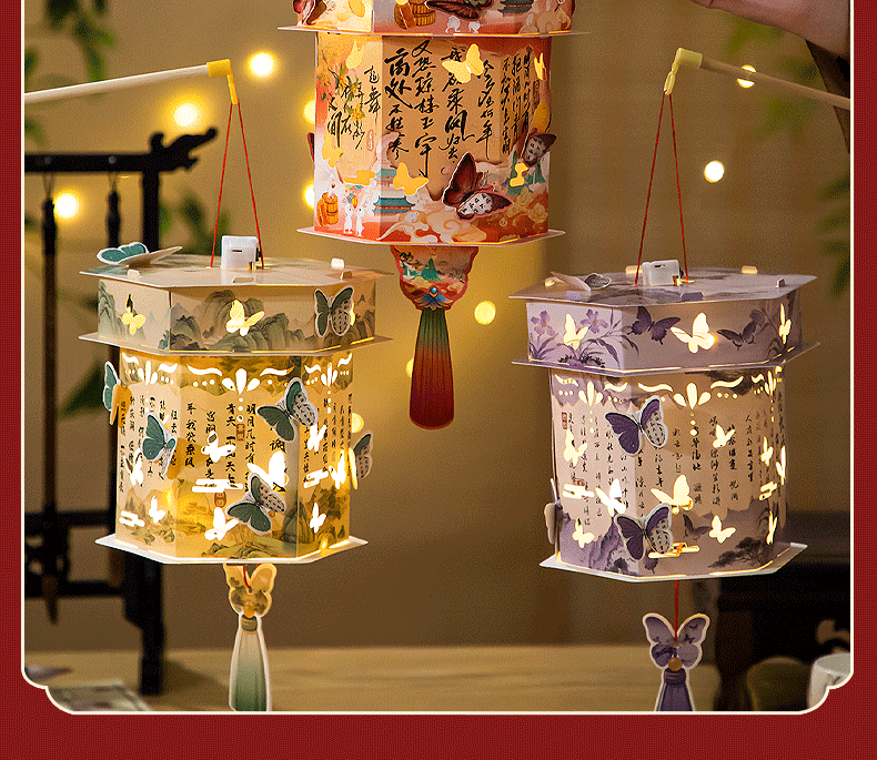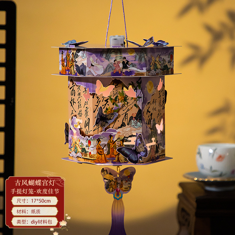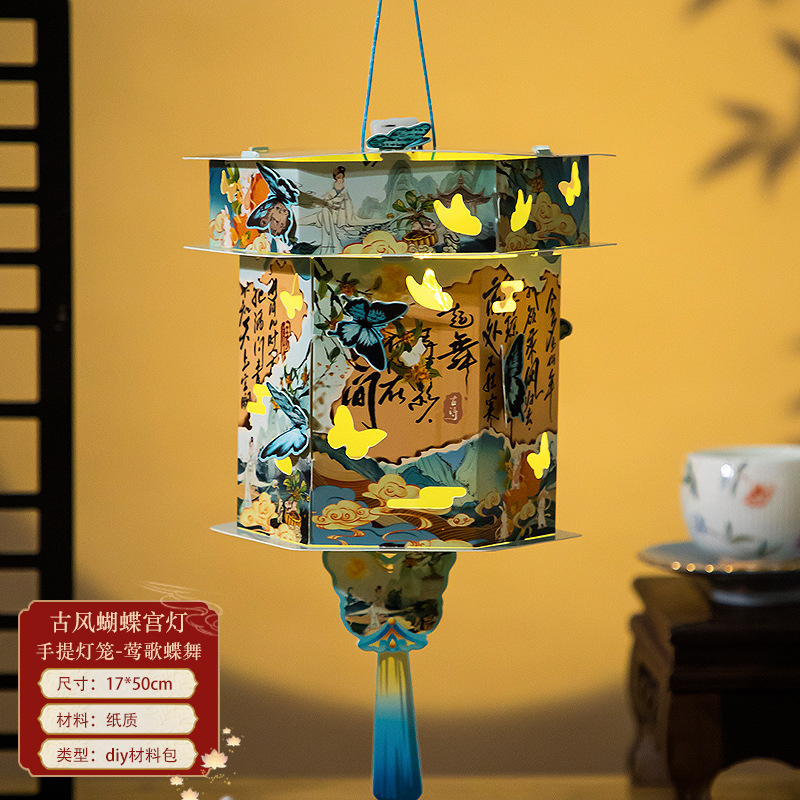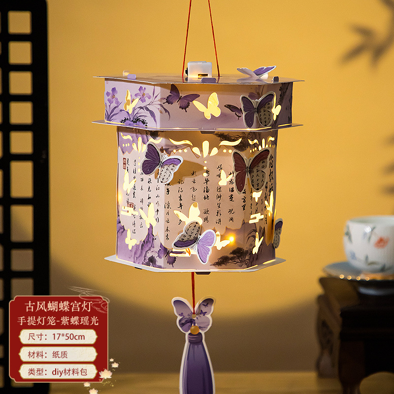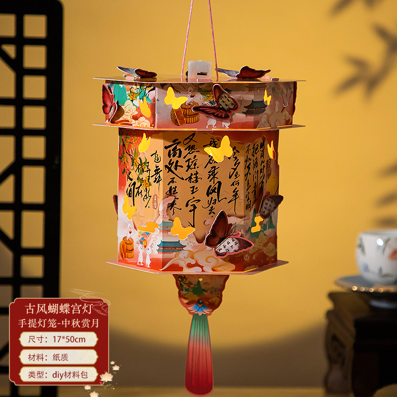 中秋节手提灯笼兔子花灯儿童古风灯笼创意手工发光灯笼diy材料包