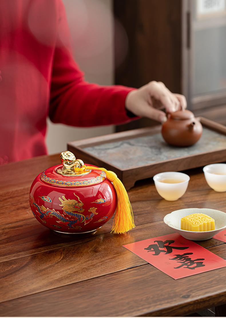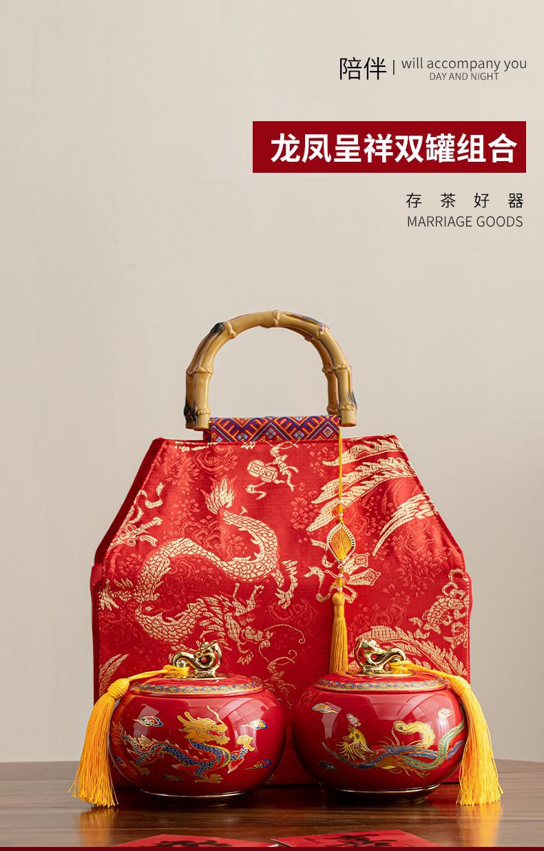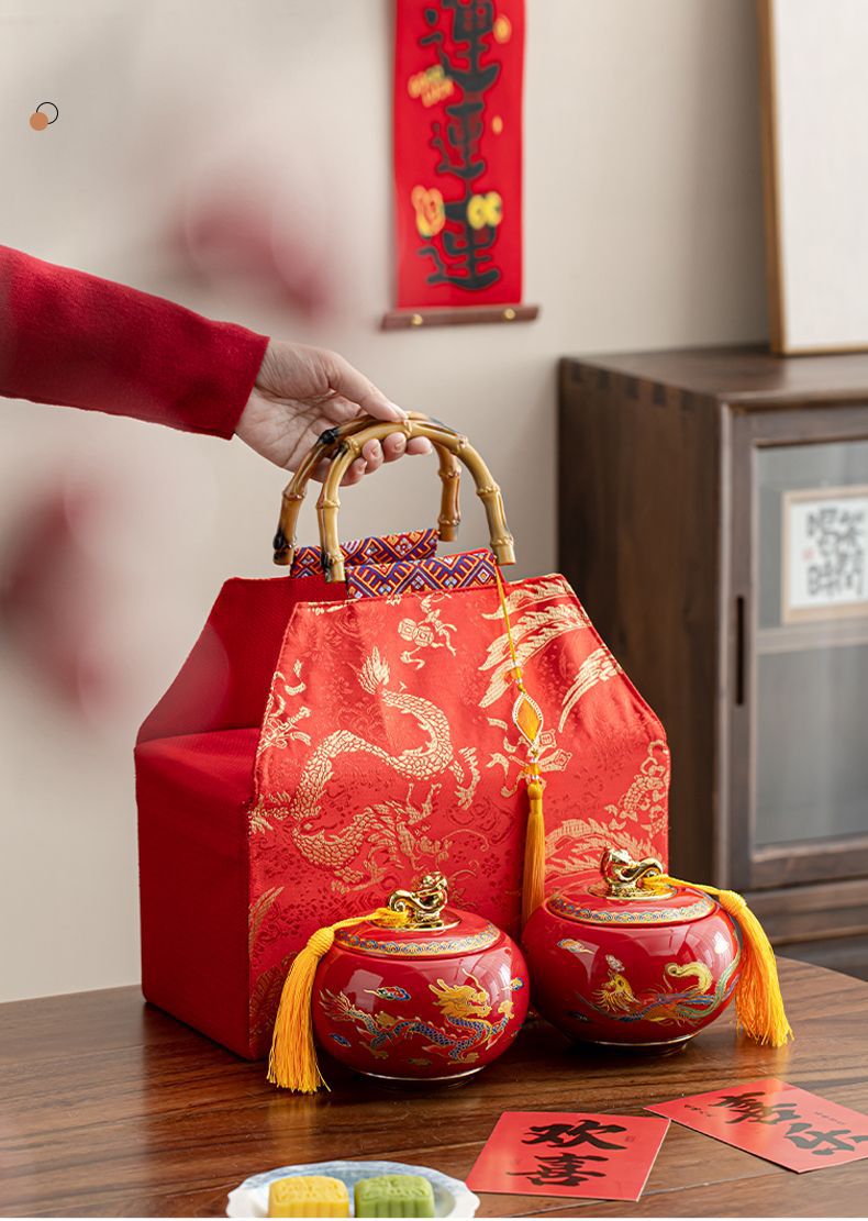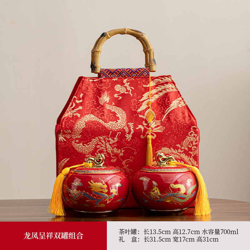 龙凤呈祥陶瓷罐茶叶包装礼盒空盒红茶金骏眉高档通用散茶装空盒子