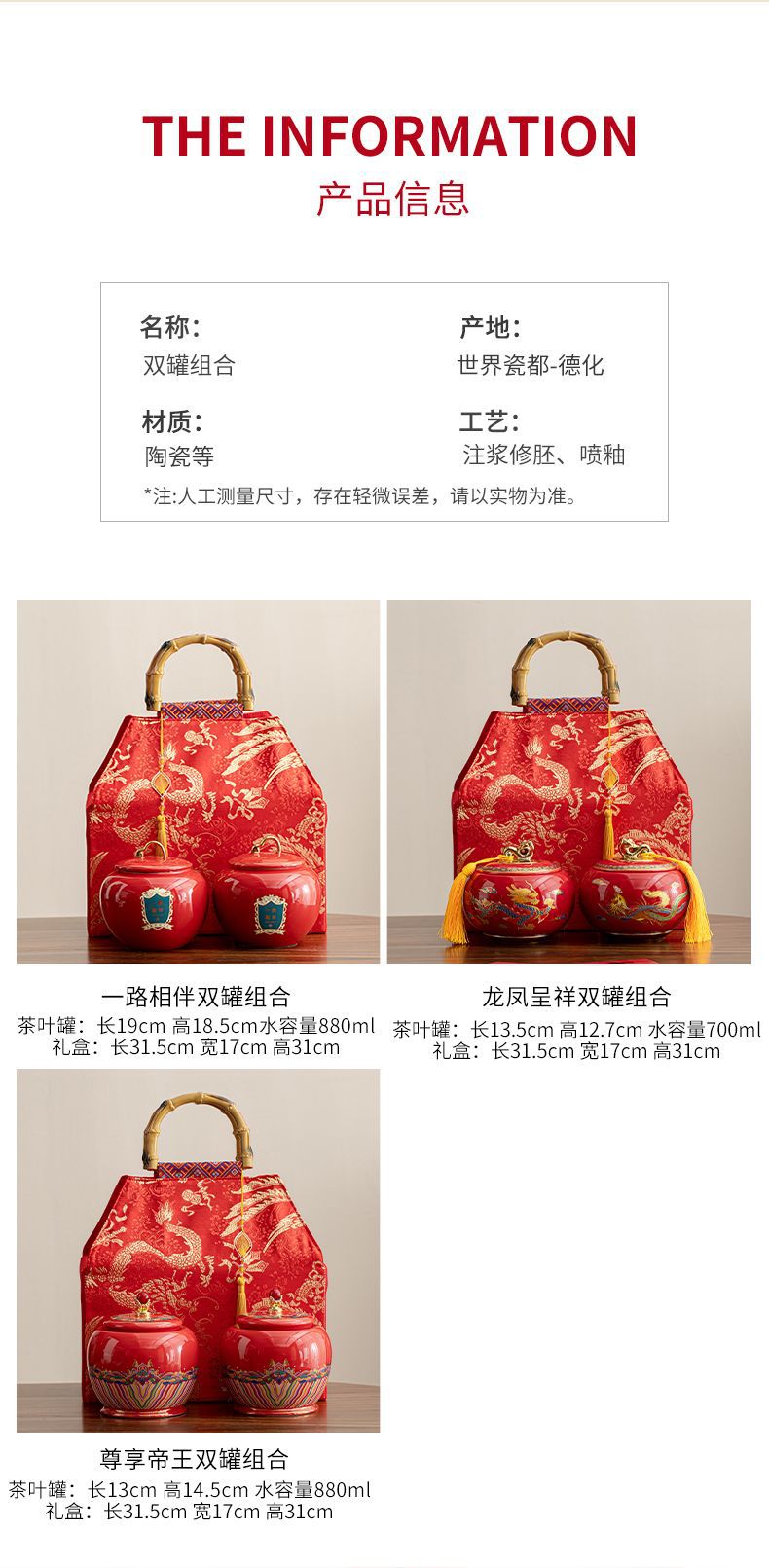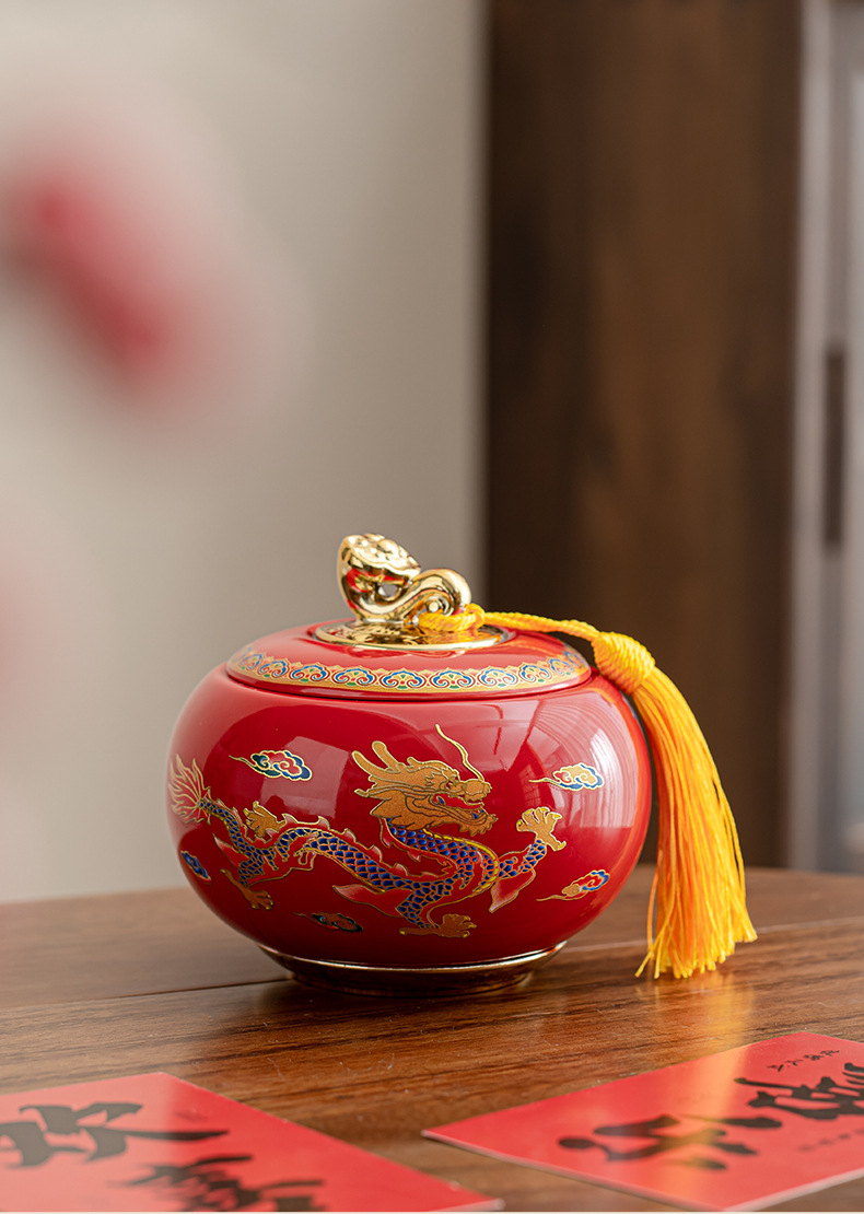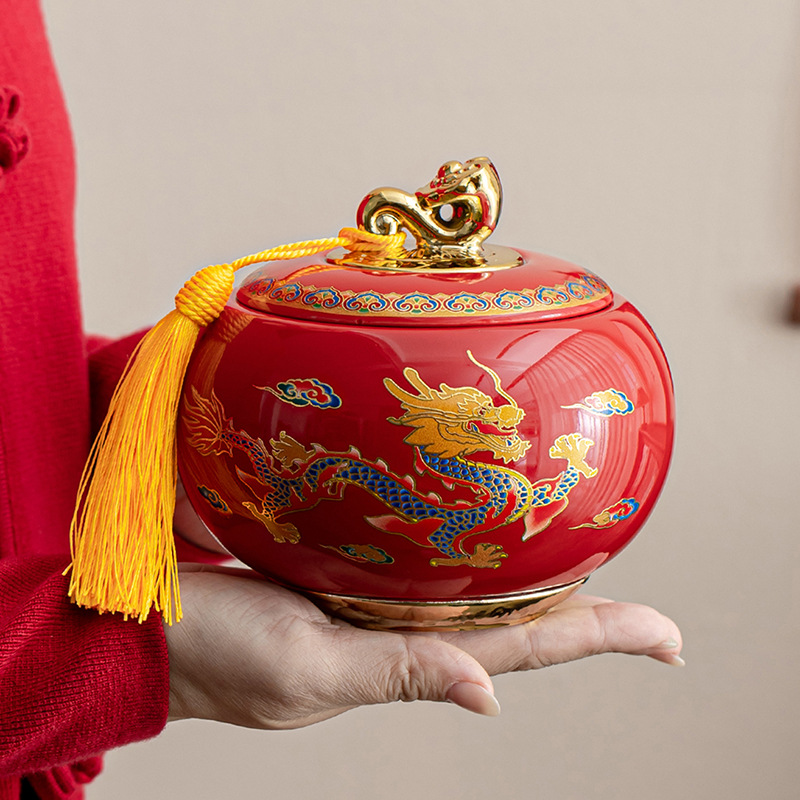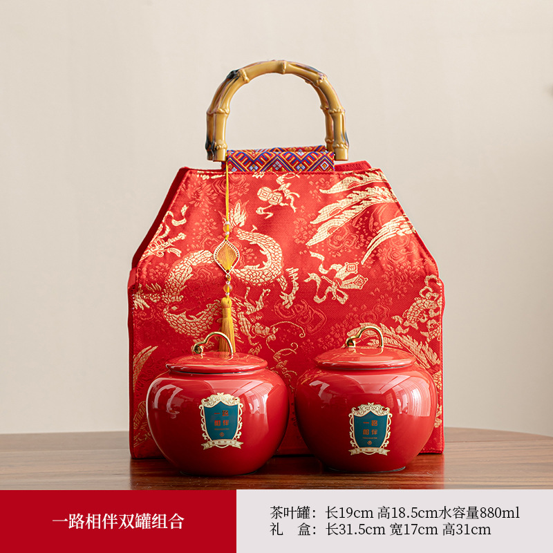 龙凤呈祥陶瓷罐茶叶包装礼盒空盒红茶金骏眉高档通用散茶装空盒子
