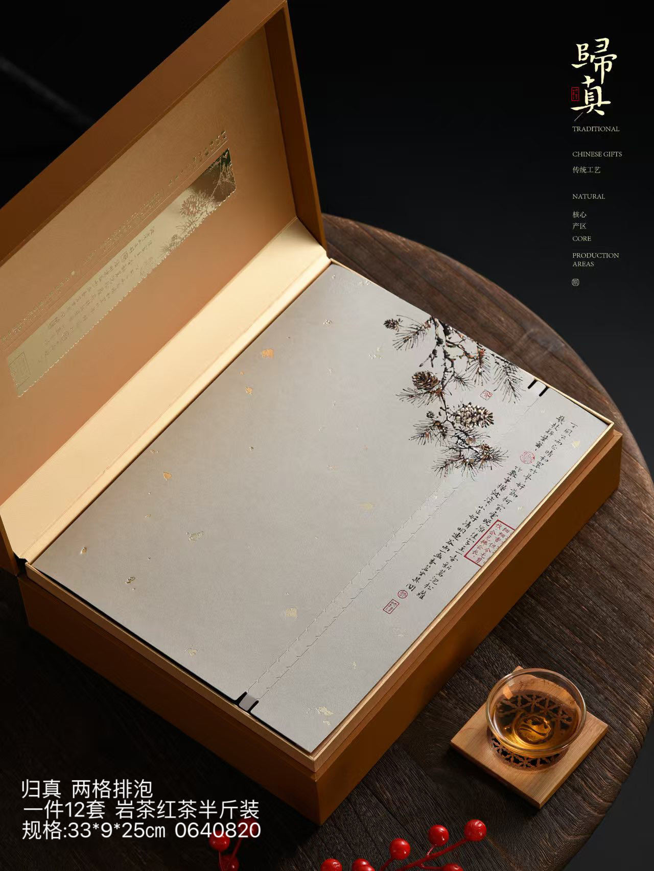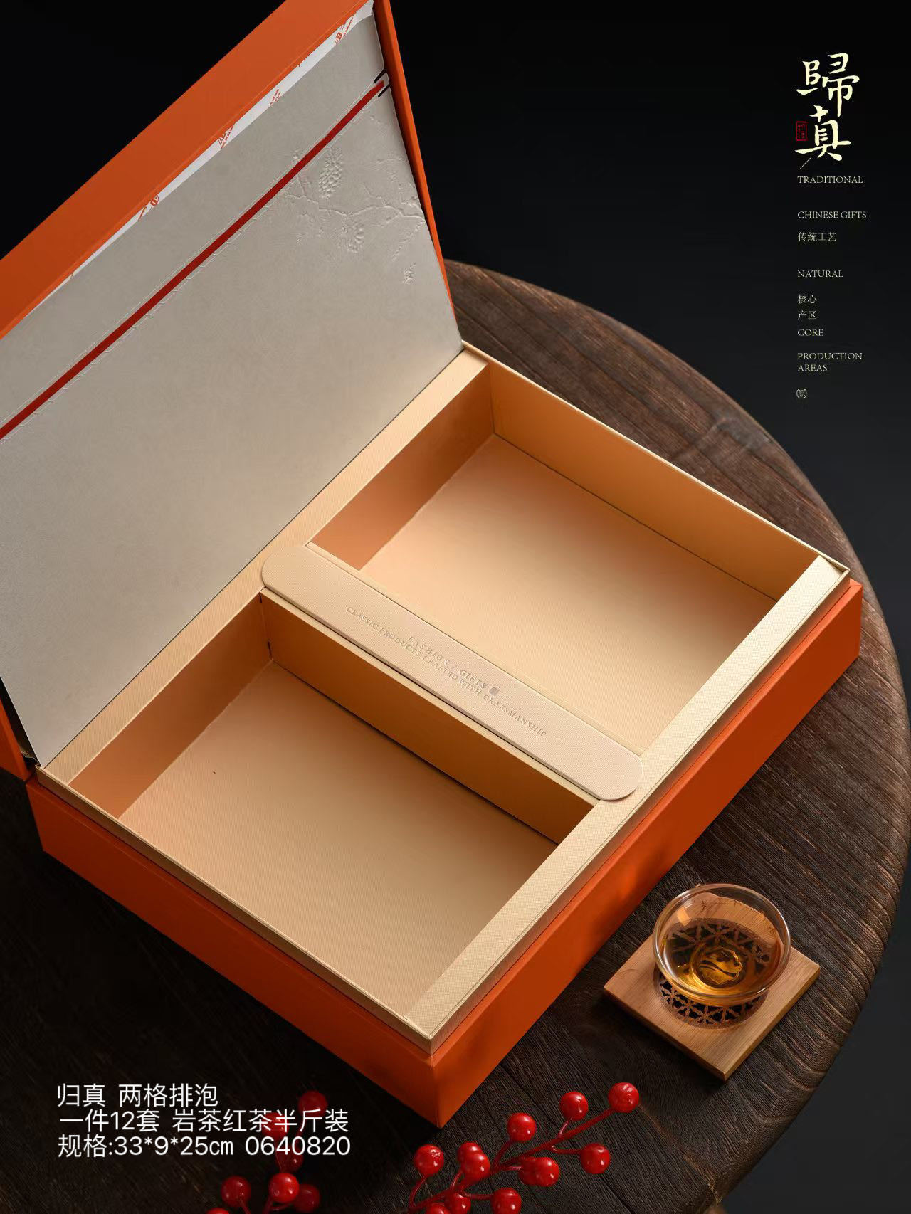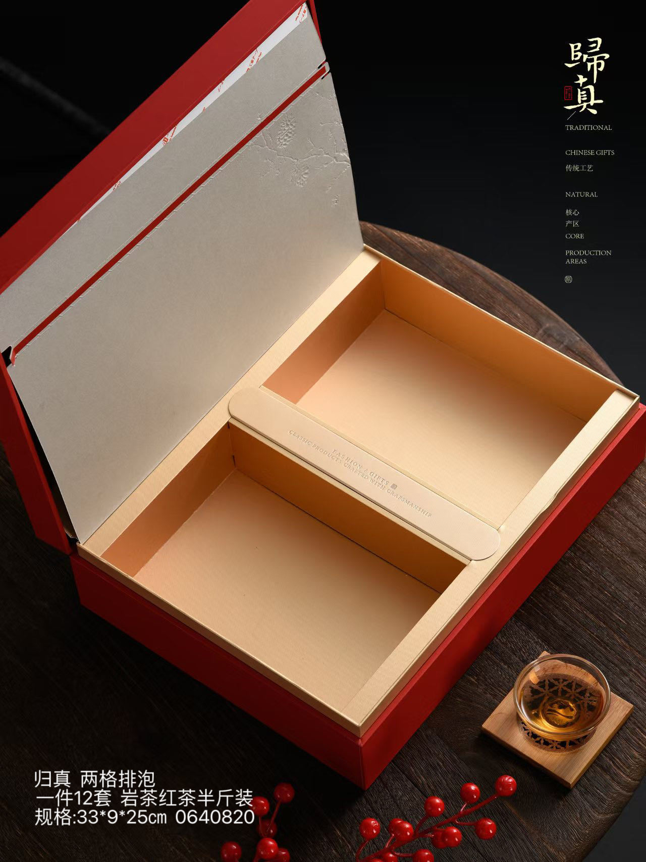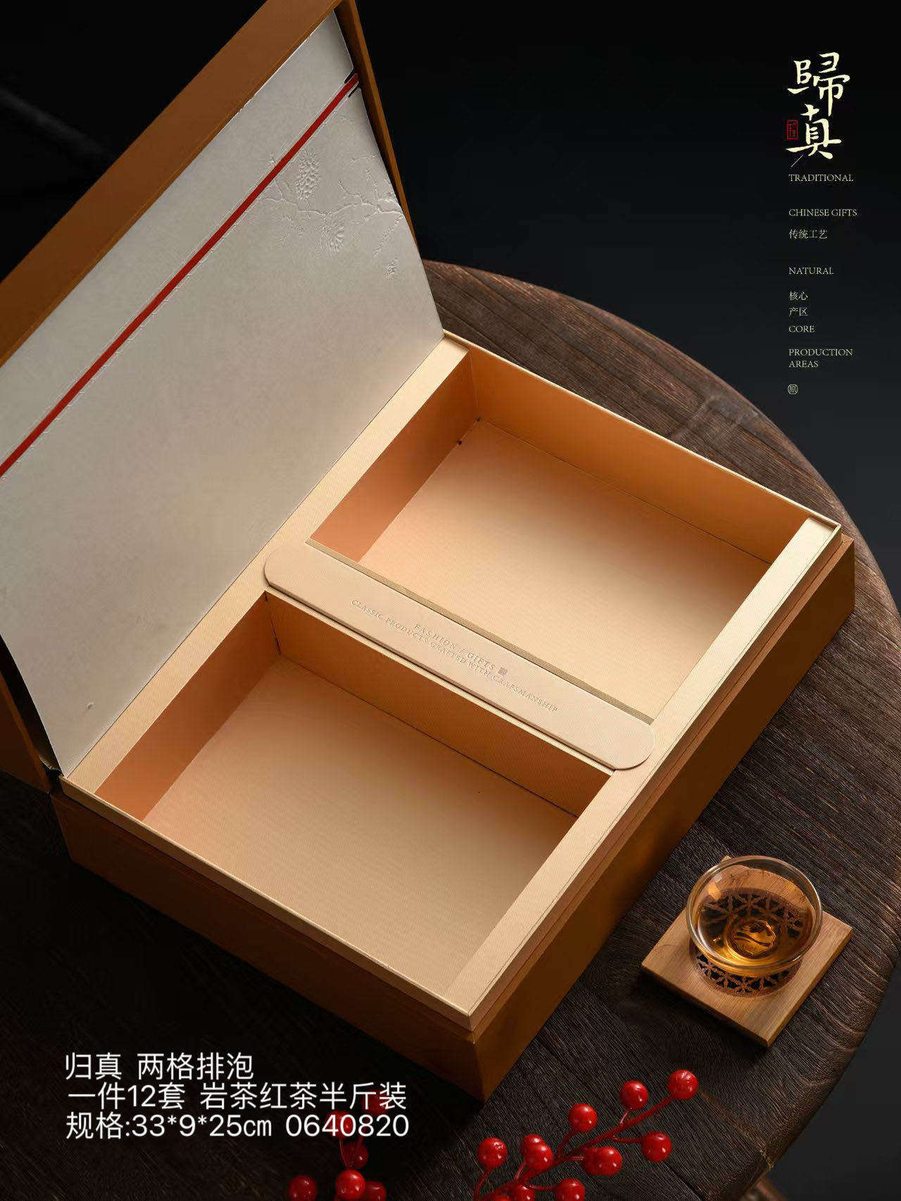 中国风礼盒空盒归真两格排泡红茶 岩茶半斤装