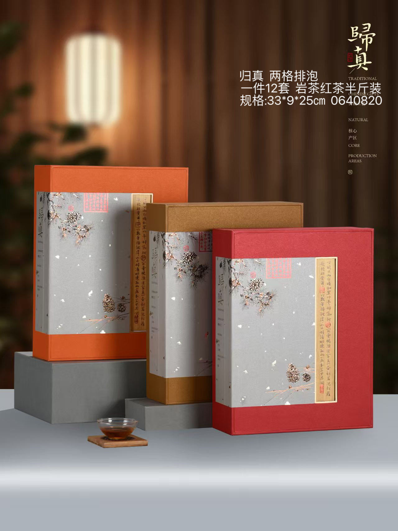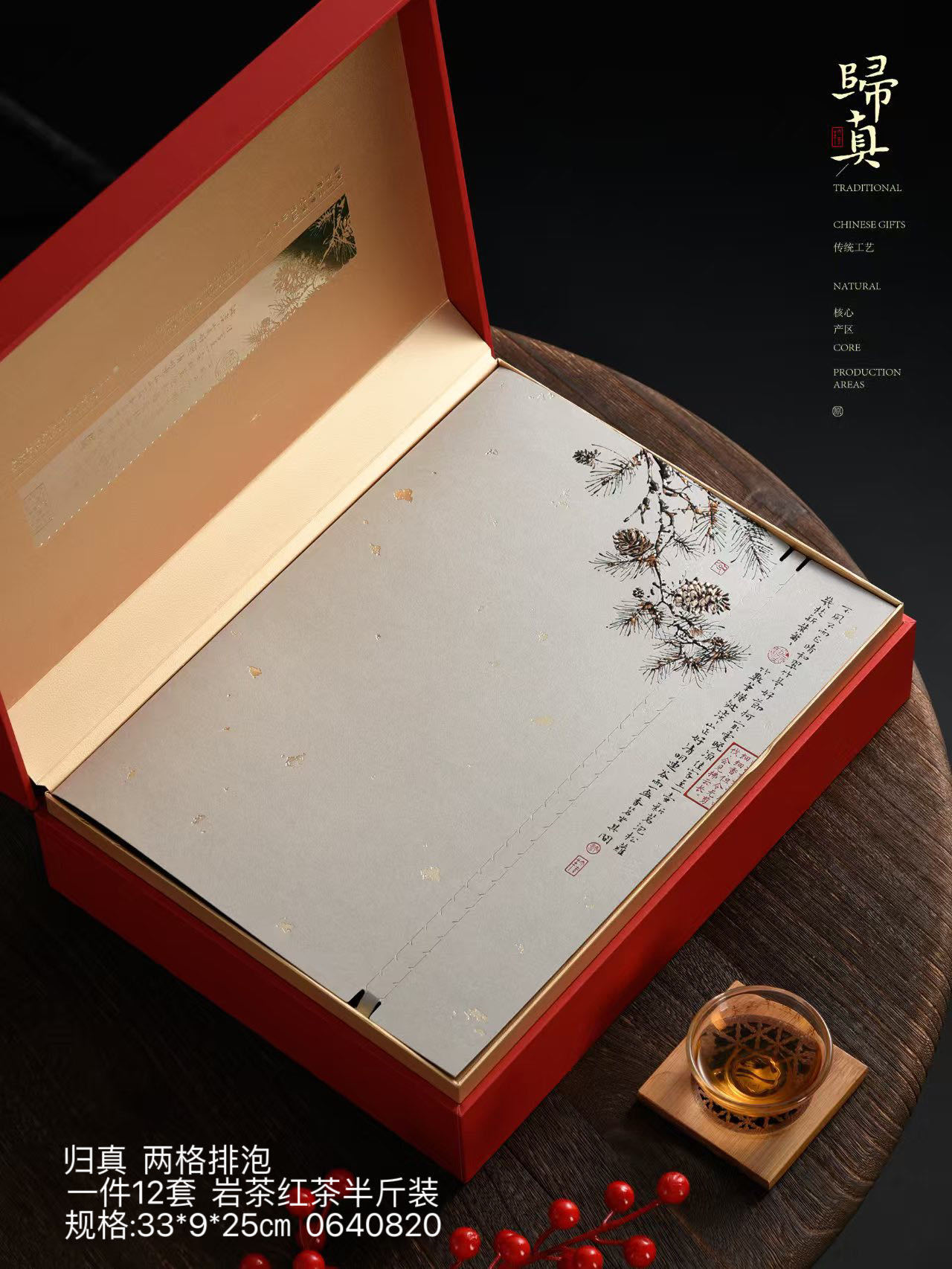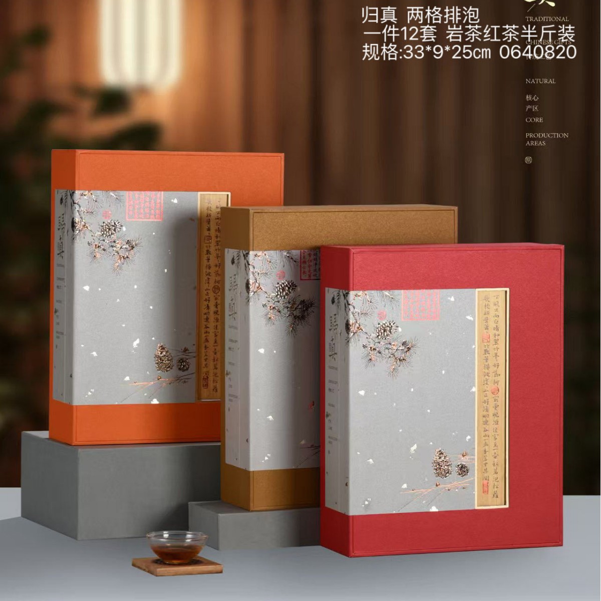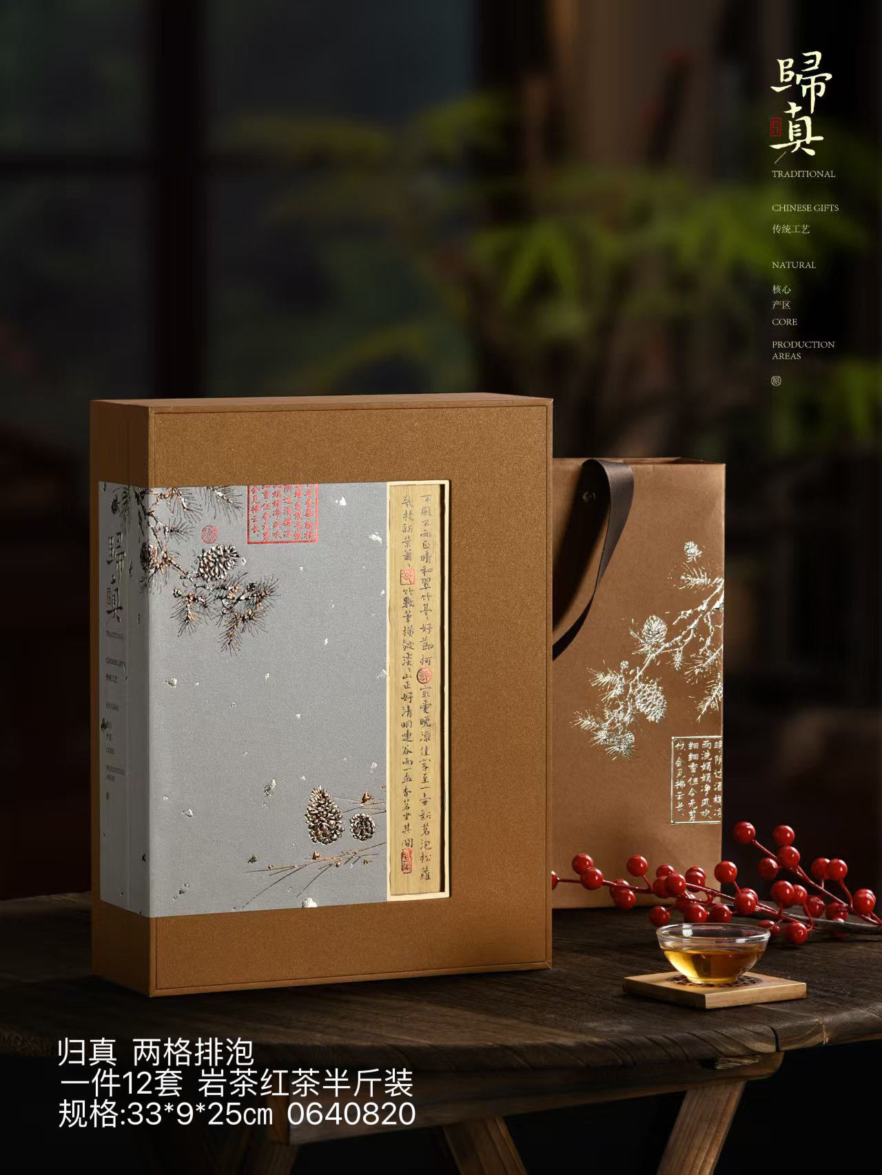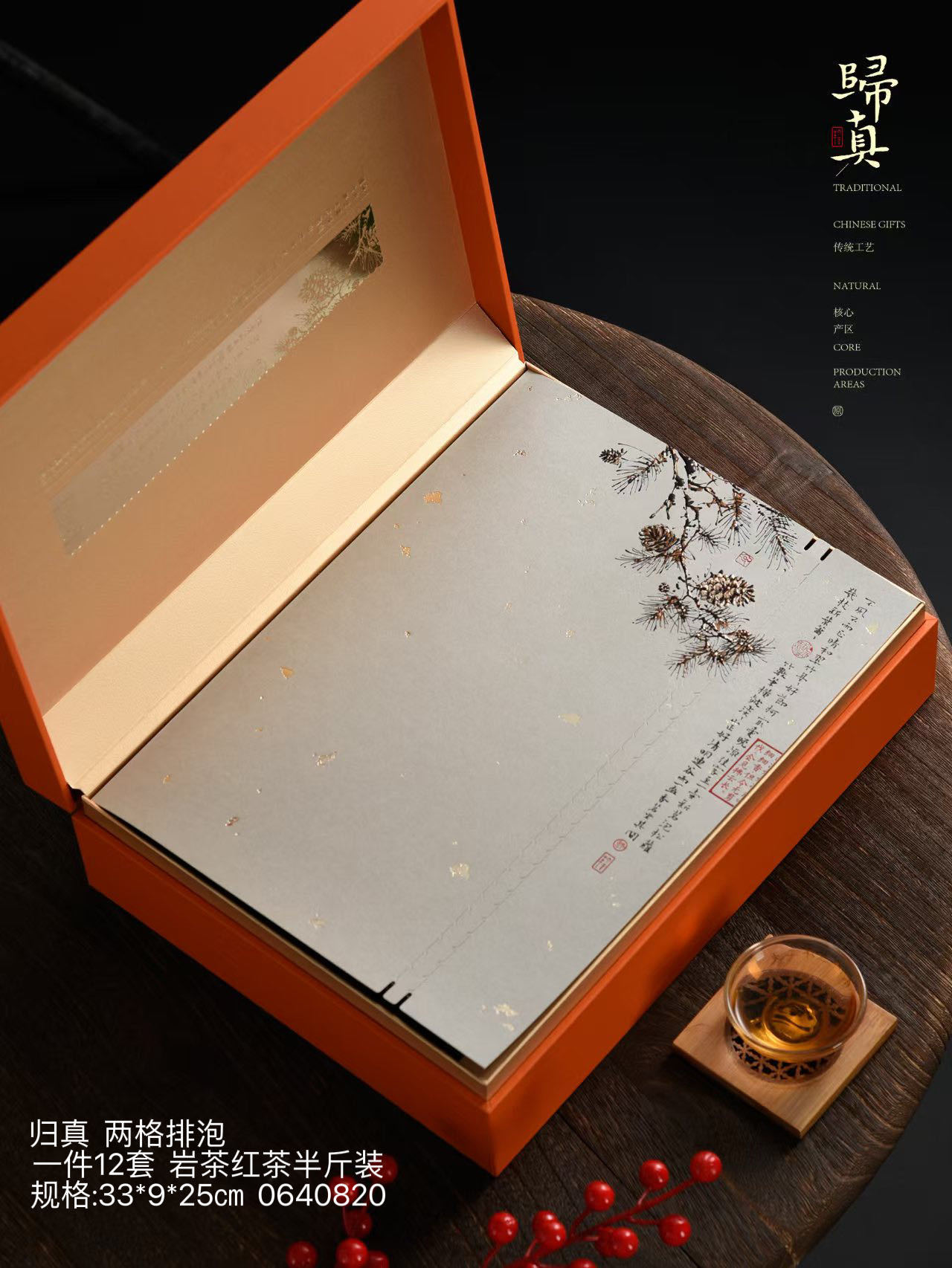 中国风礼盒空盒归真两格排泡红茶 岩茶半斤装