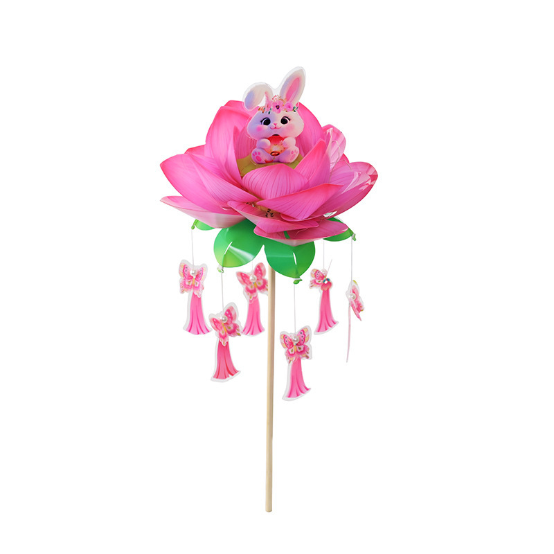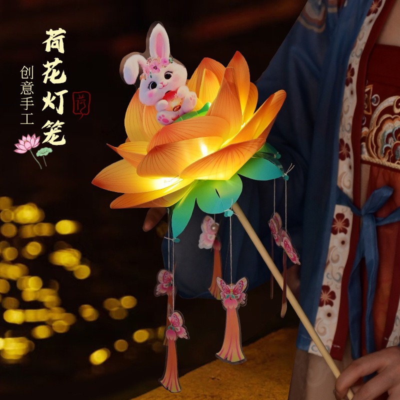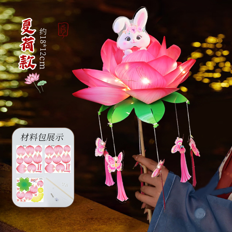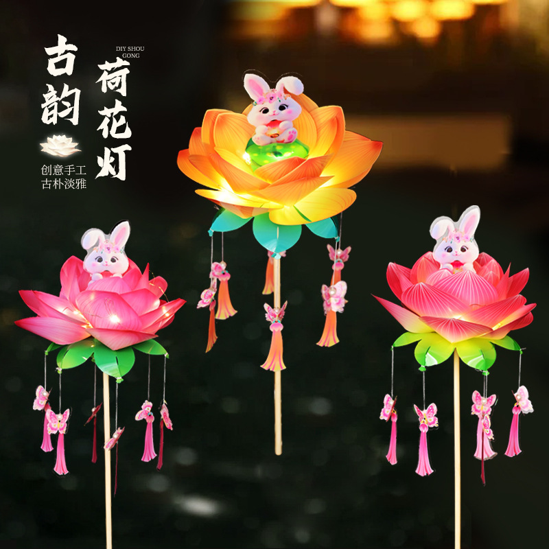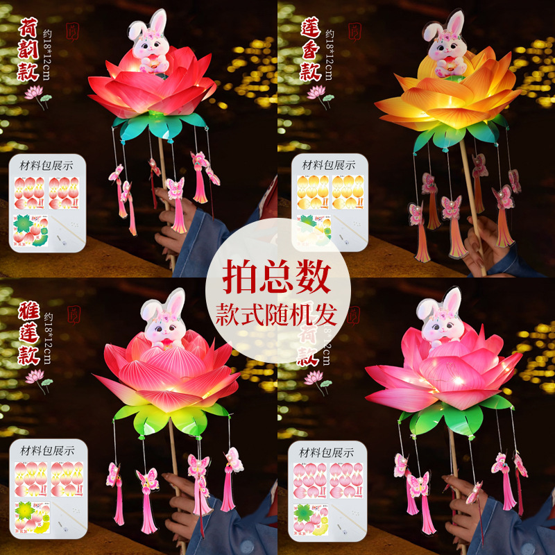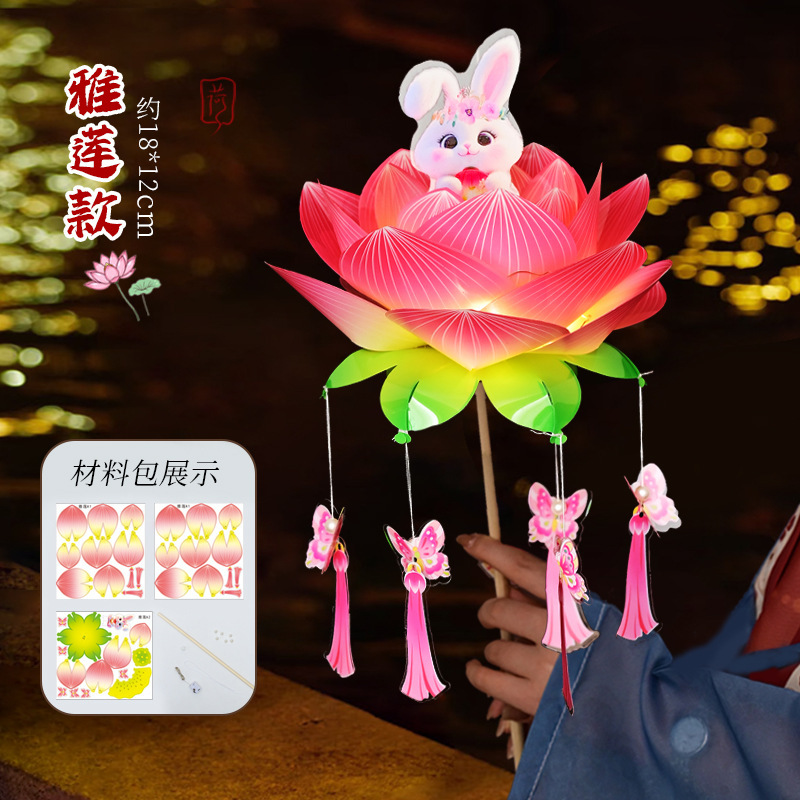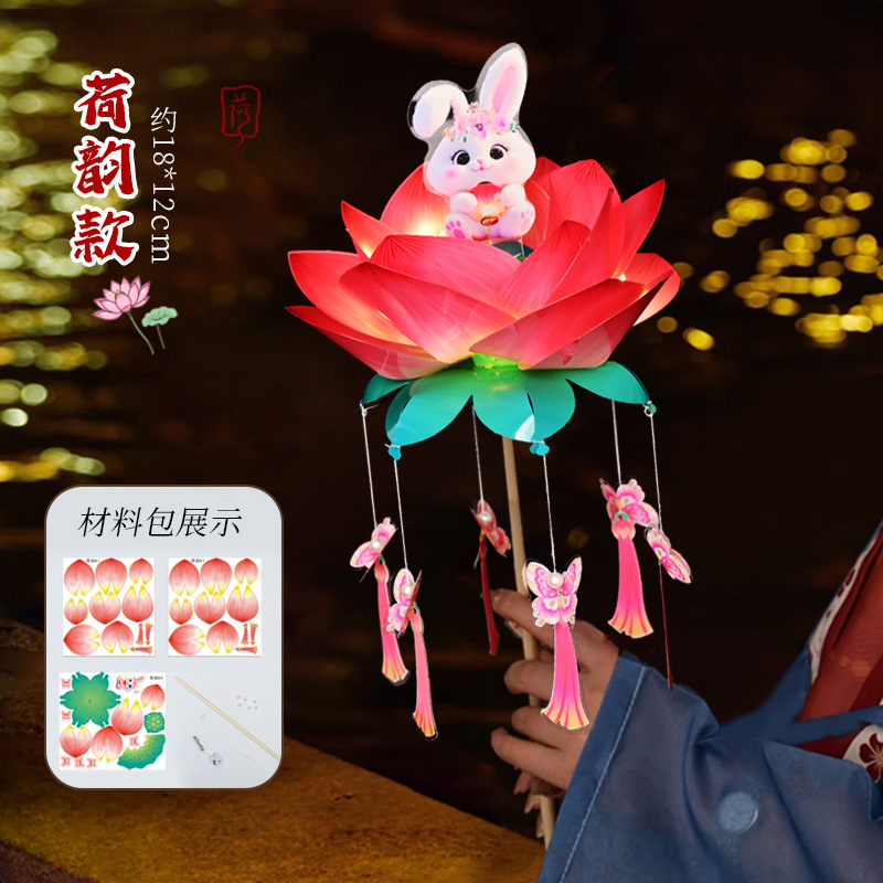 中秋节荷花灯笼古风手举兔子莲花灯儿童手工diy材料包发光兔子灯