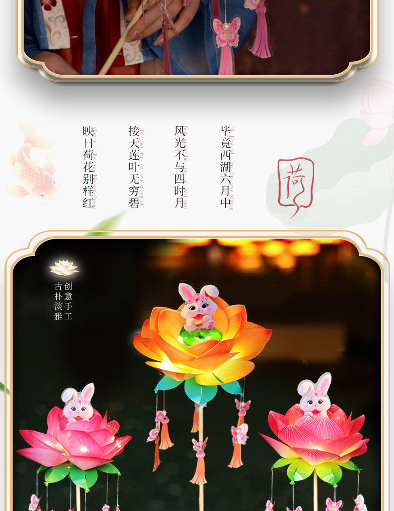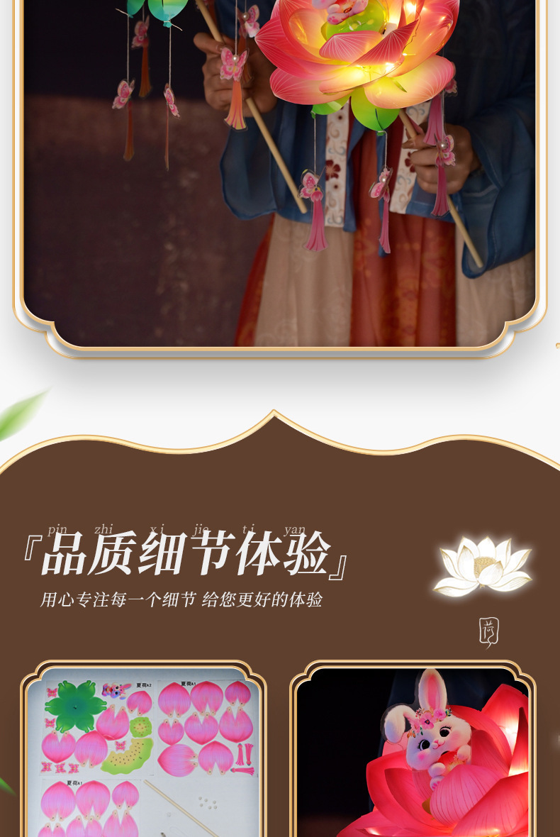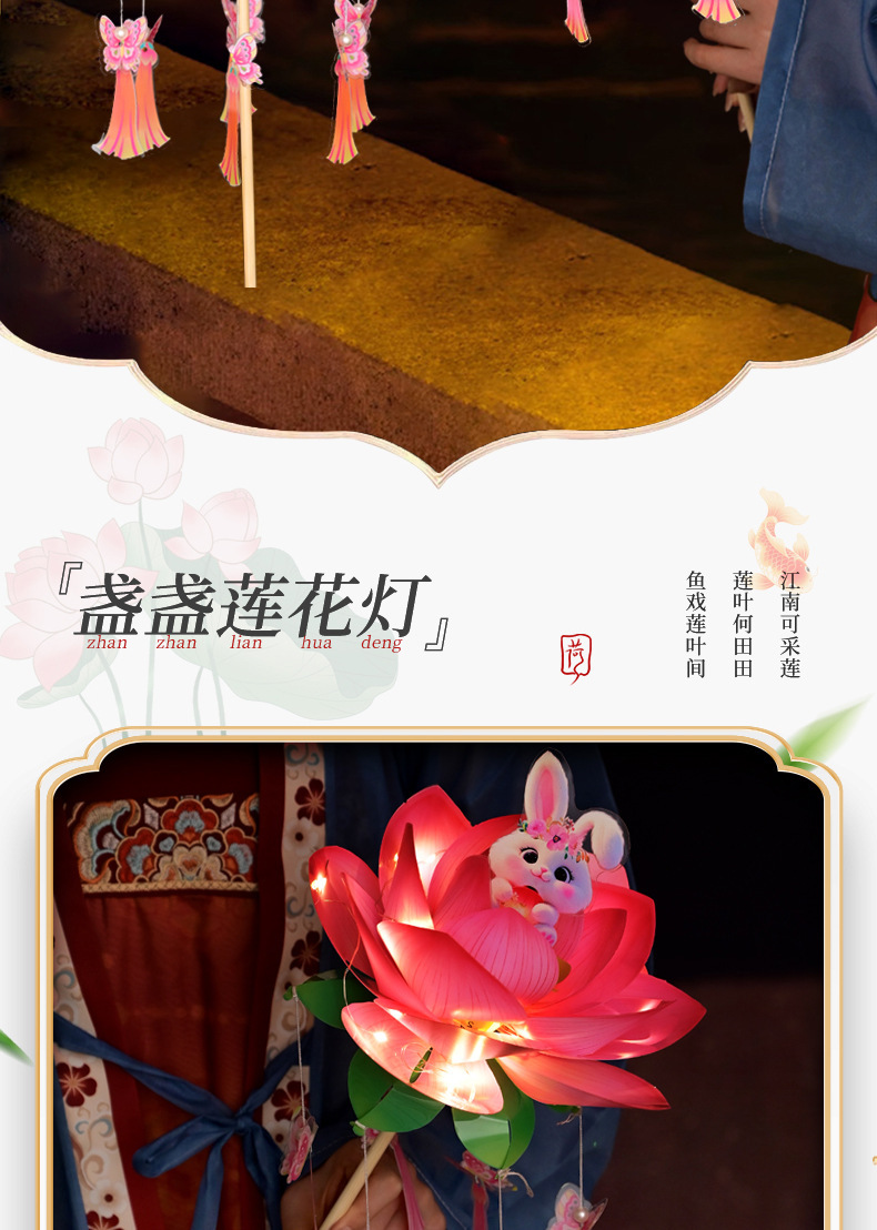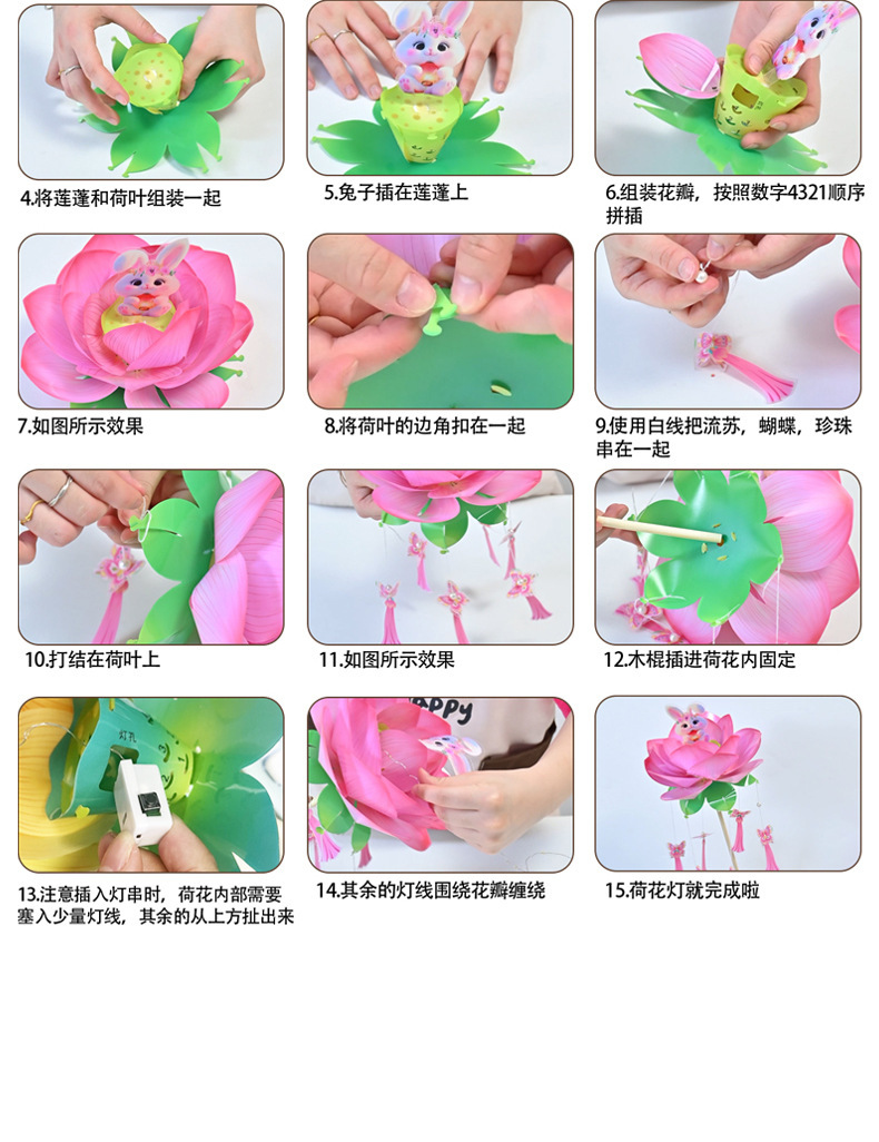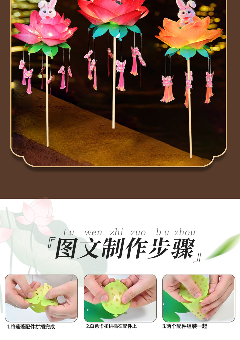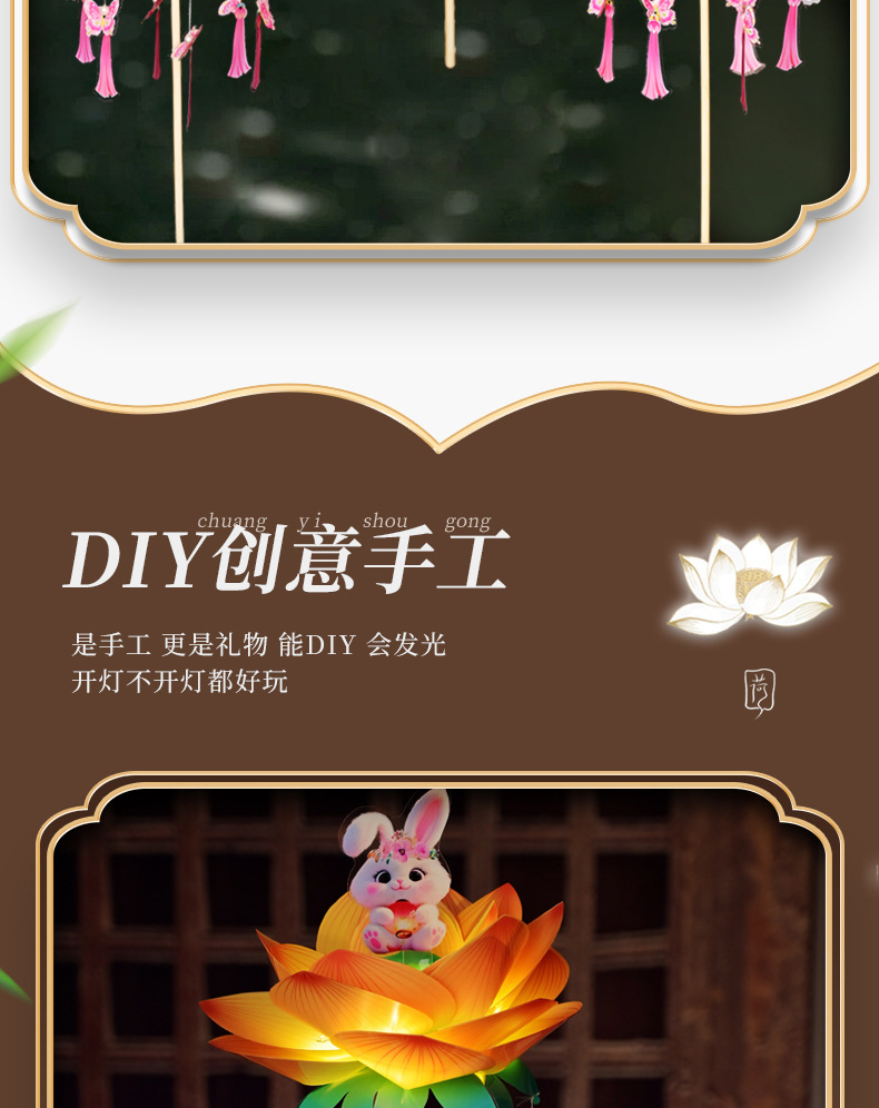 中秋节荷花灯笼古风手举兔子莲花灯儿童手工diy材料包发光兔子灯