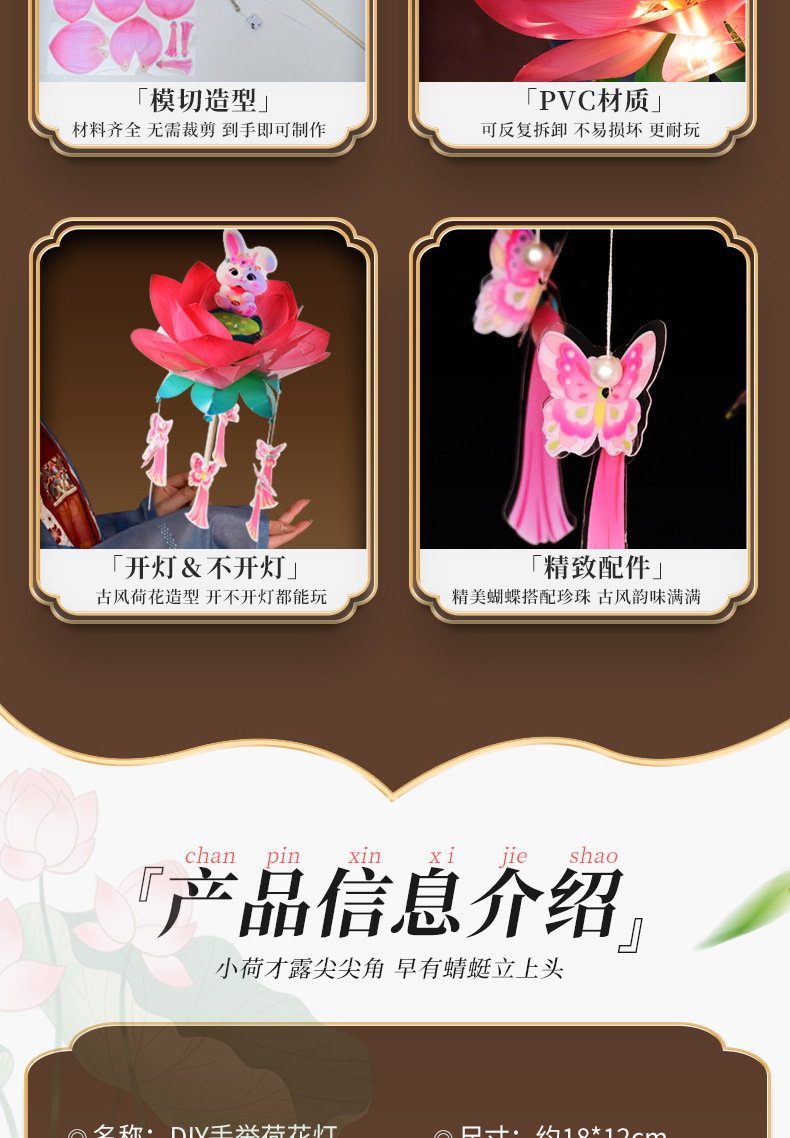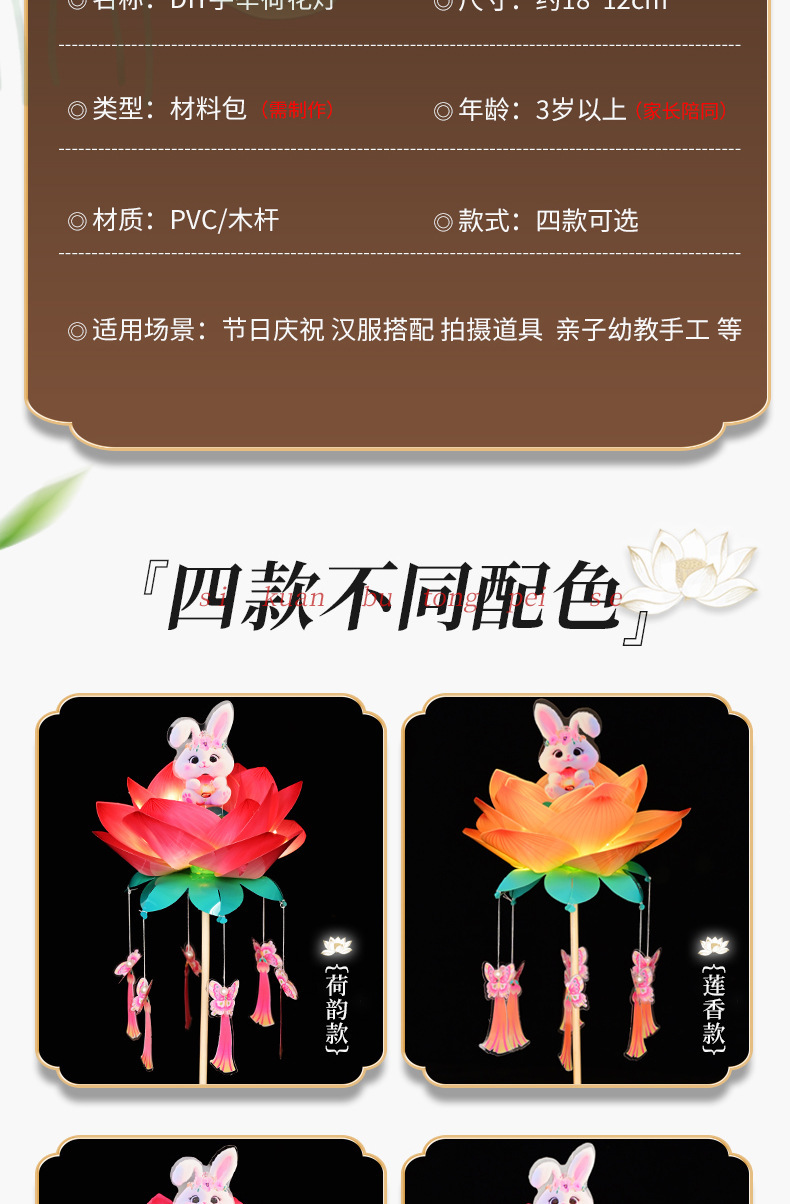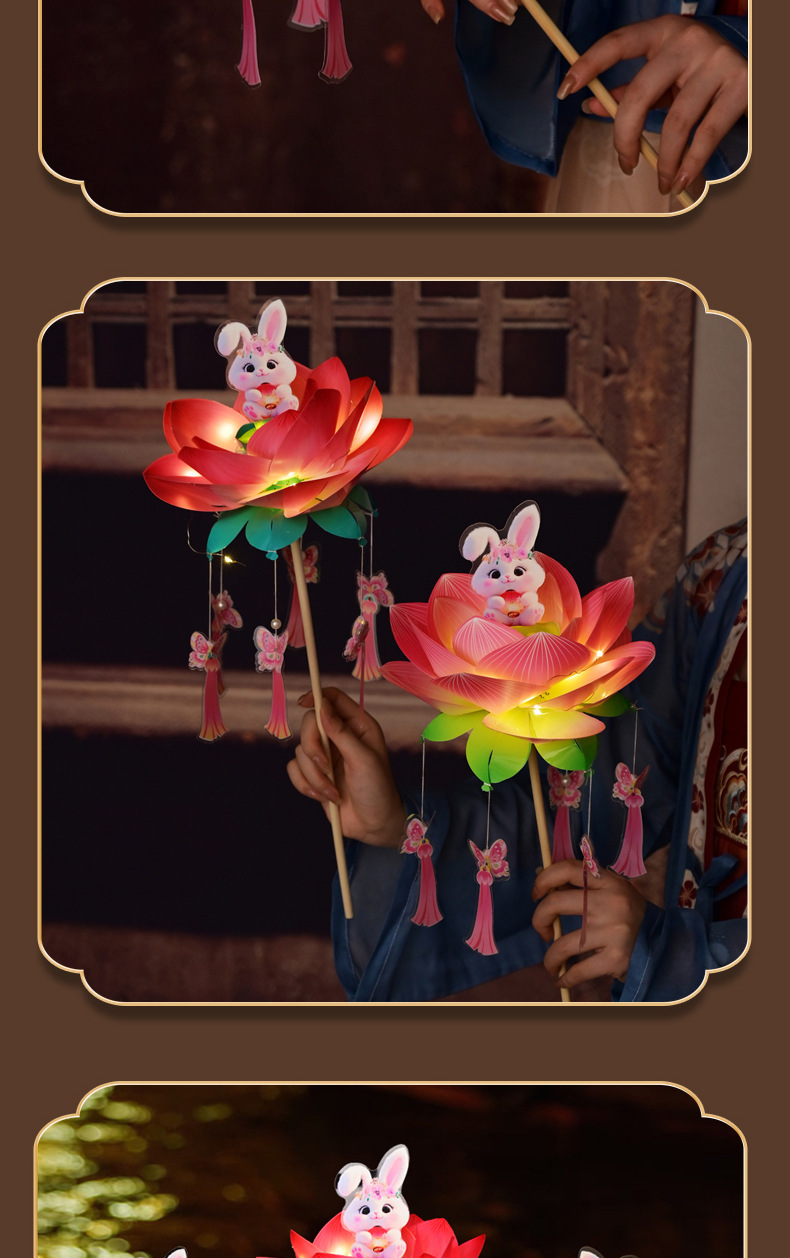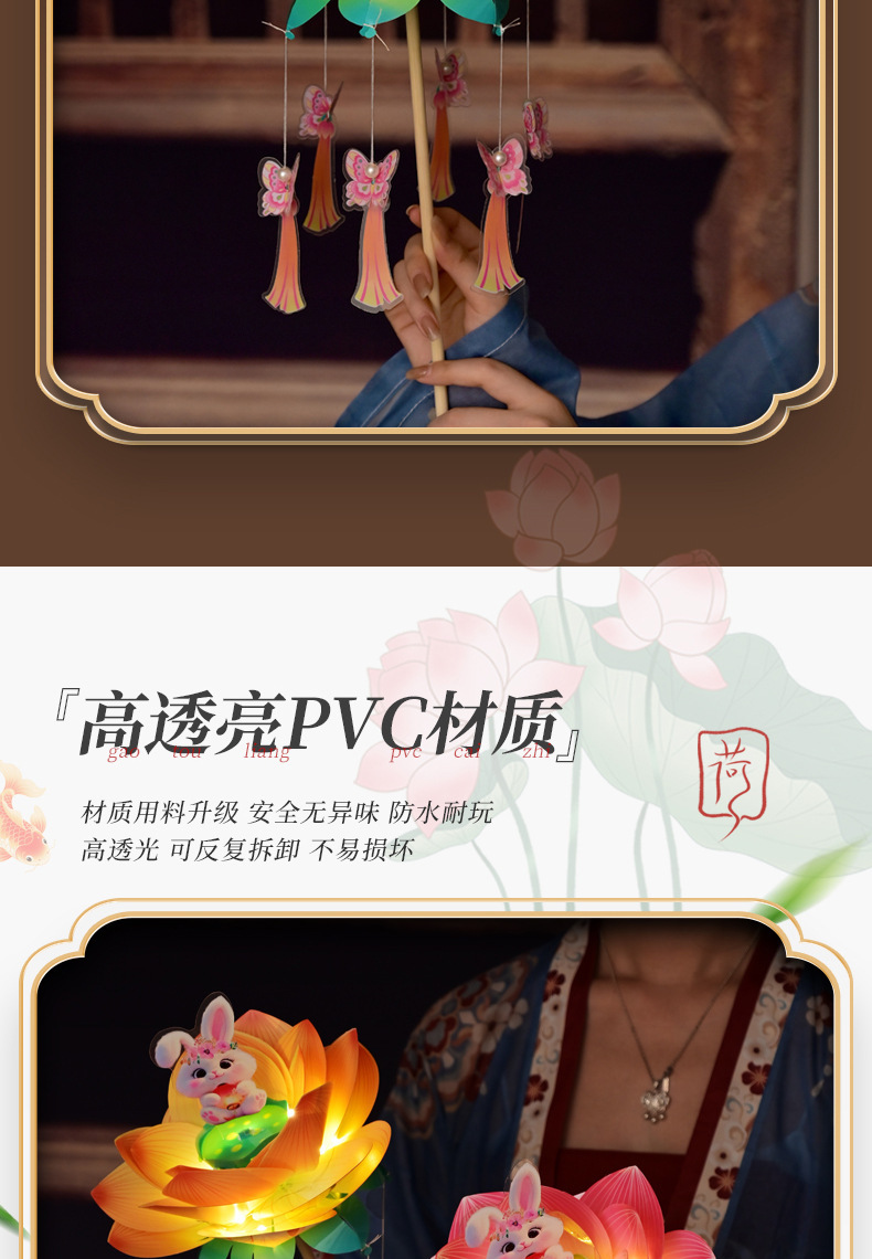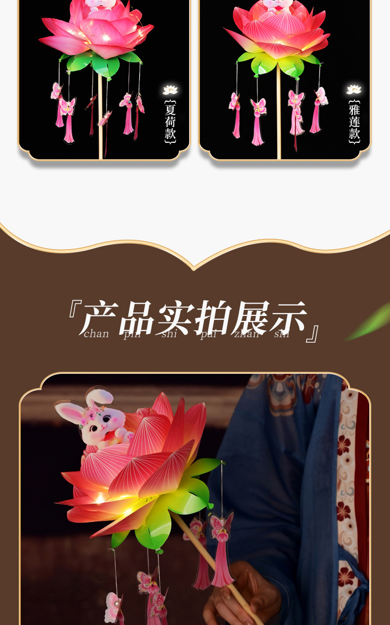 中秋节荷花灯笼古风手举兔子莲花灯儿童手工diy材料包发光兔子灯