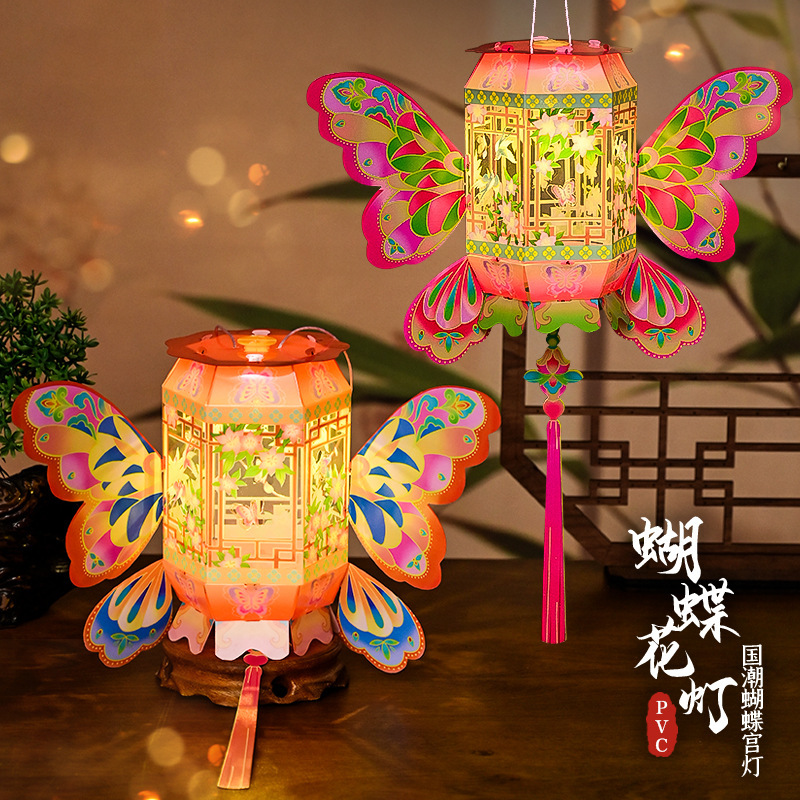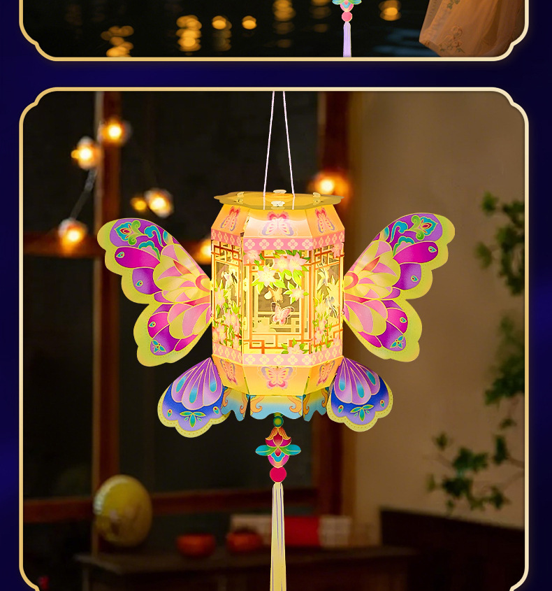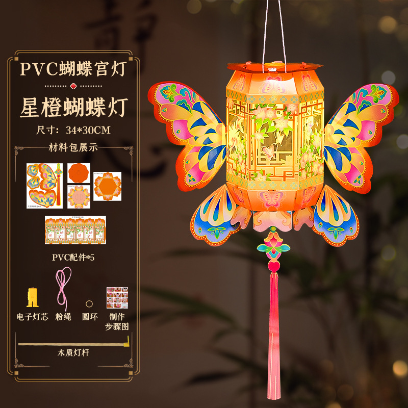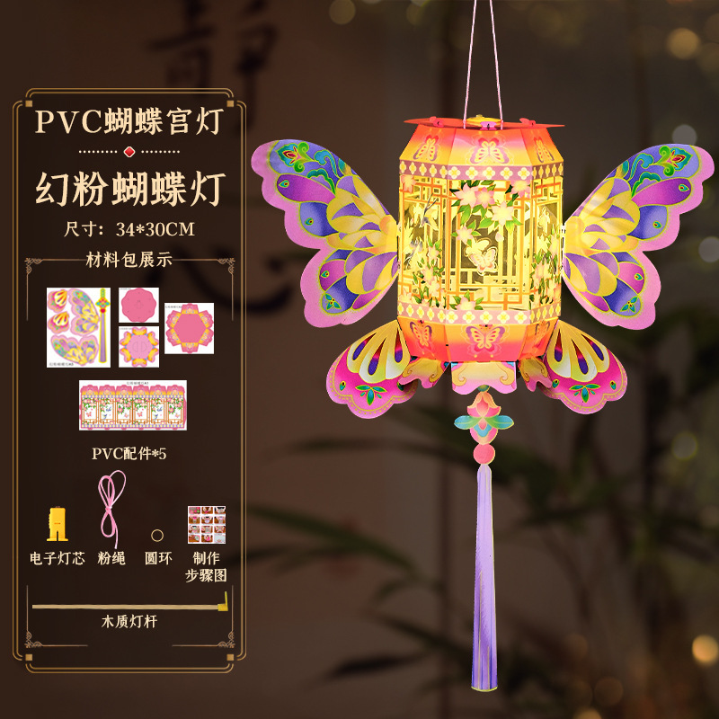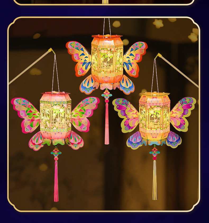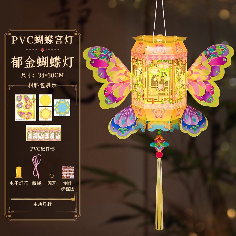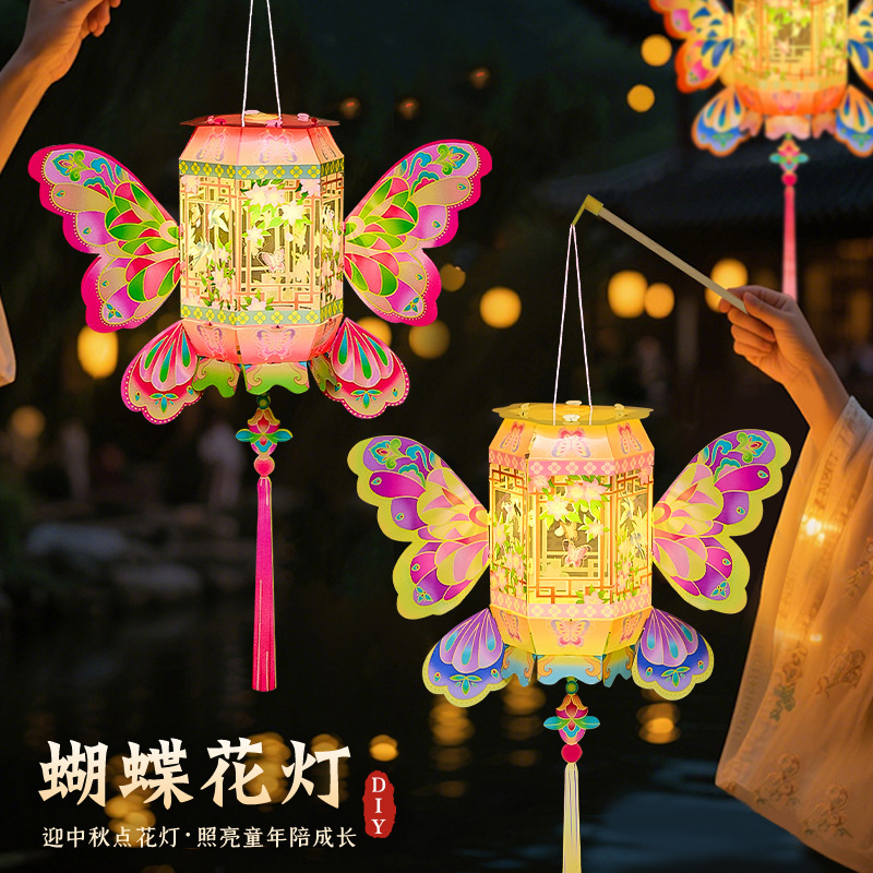 中秋节蝴蝶灯笼古风灯笼儿童手工diy材料包手提发光花灯宫灯摆摊