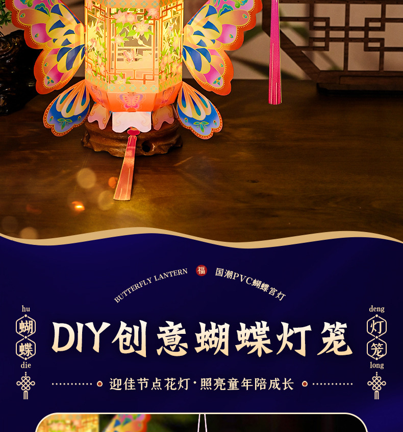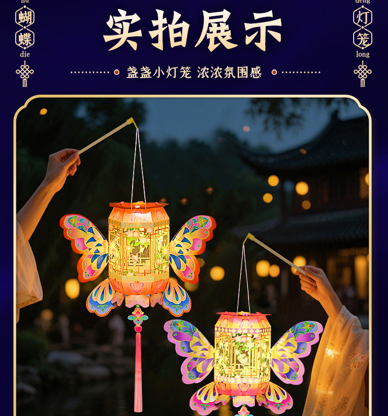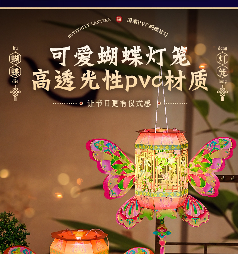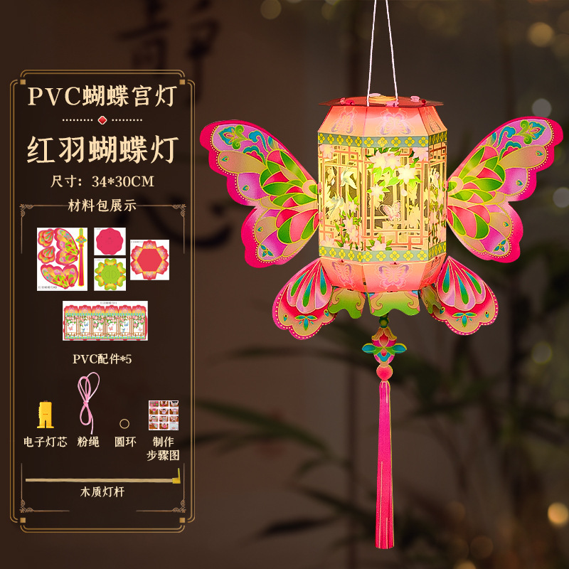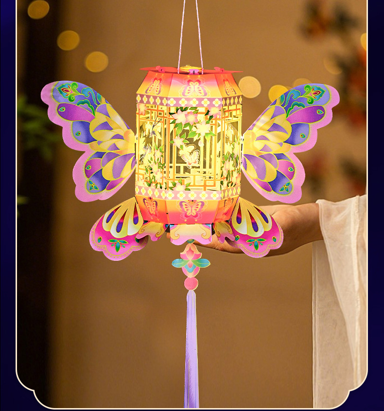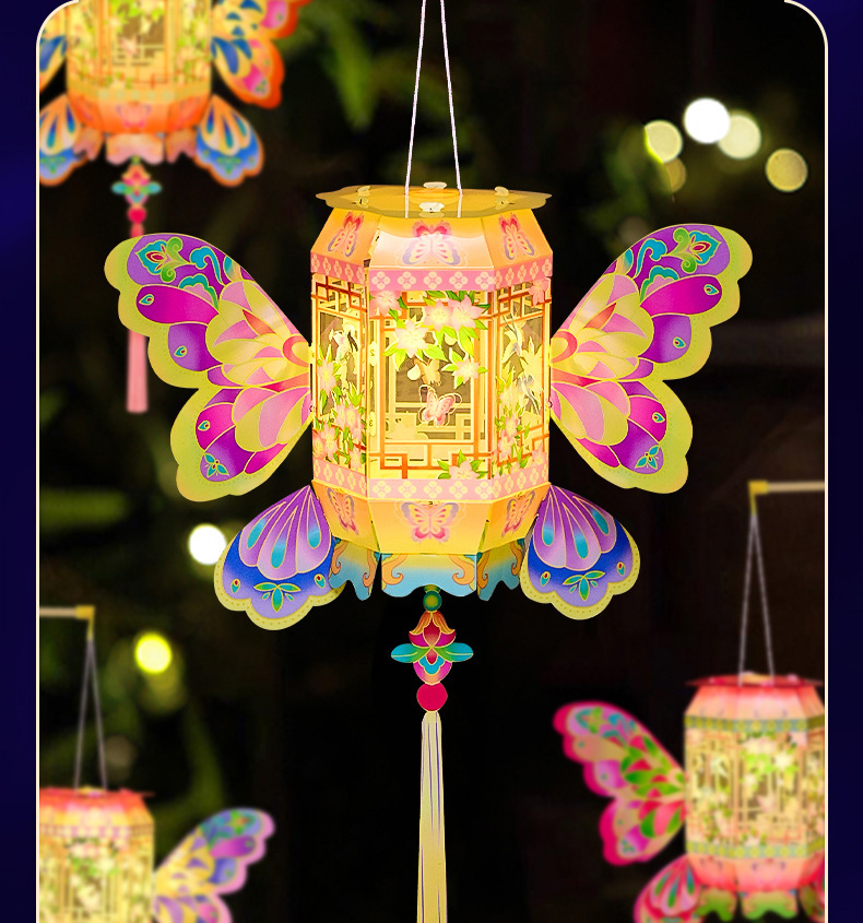 中秋节蝴蝶灯笼古风灯笼儿童手工diy材料包手提发光花灯宫灯摆摊