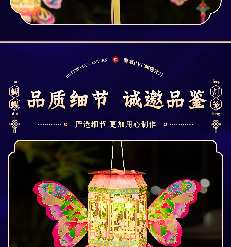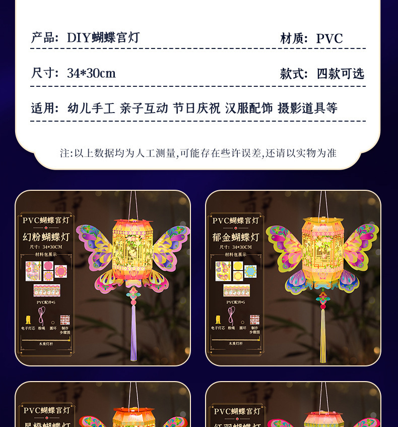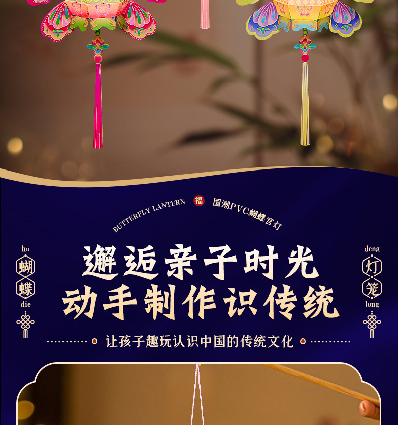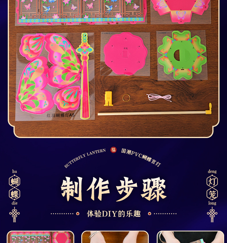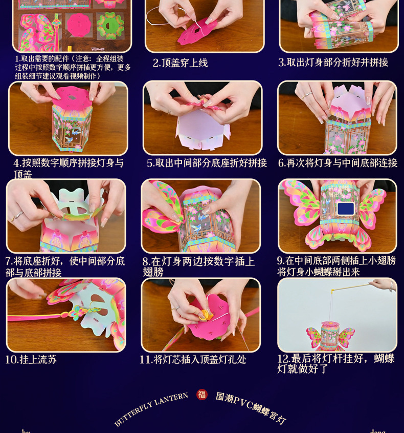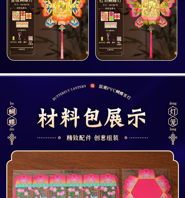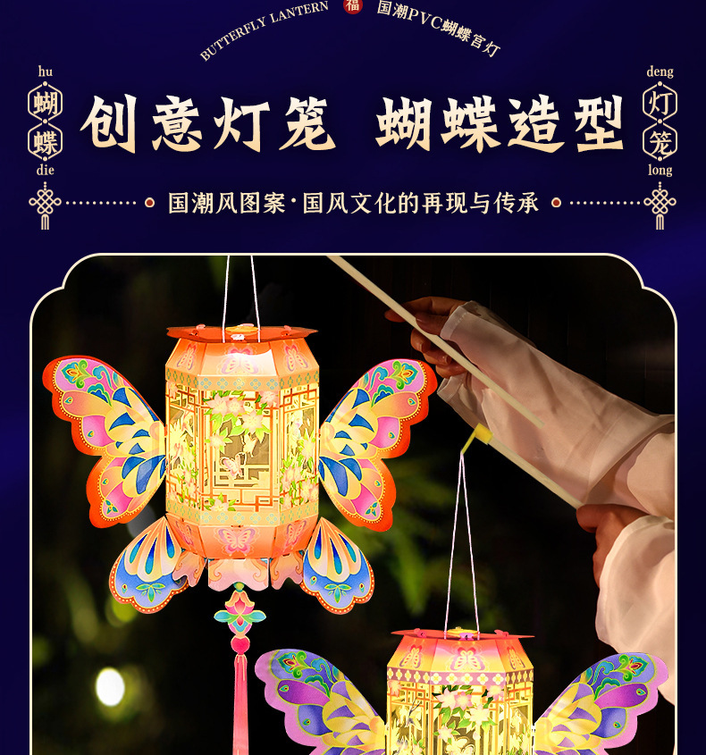 中秋节蝴蝶灯笼古风灯笼儿童手工diy材料包手提发光花灯宫灯摆摊