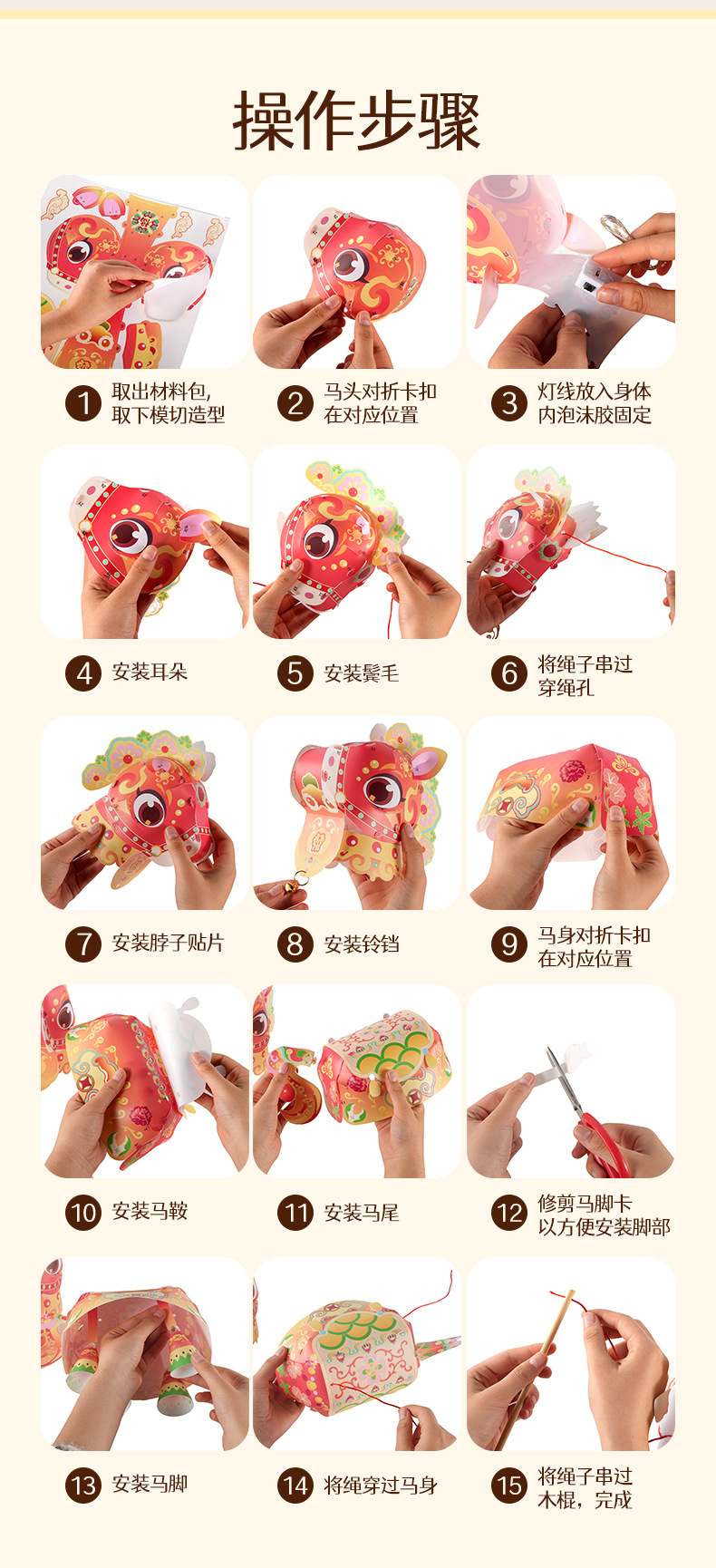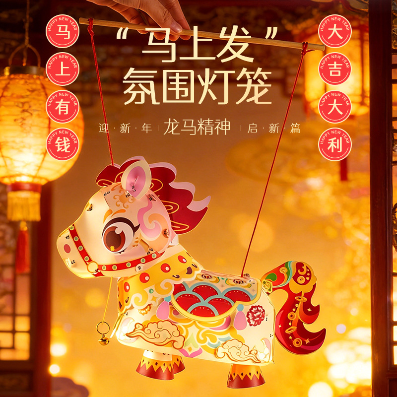 马年春节元宵马上发灯笼手工diy儿童动手制作材料包手提发光灯笼