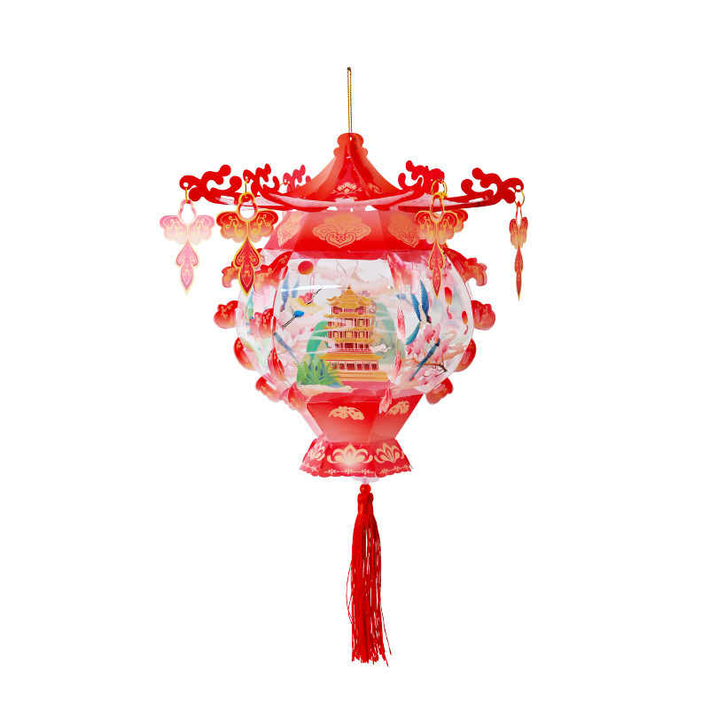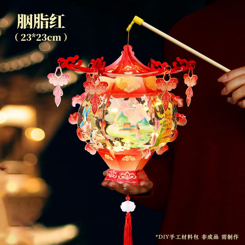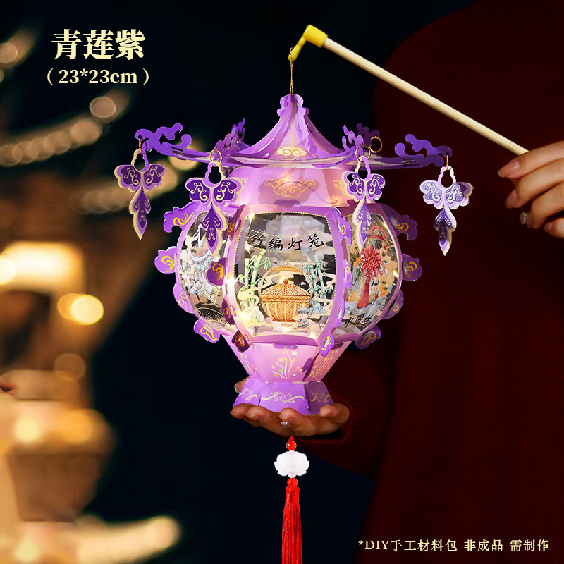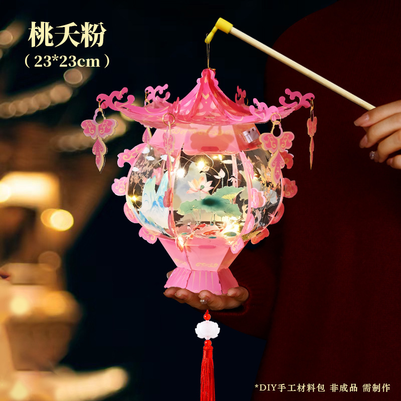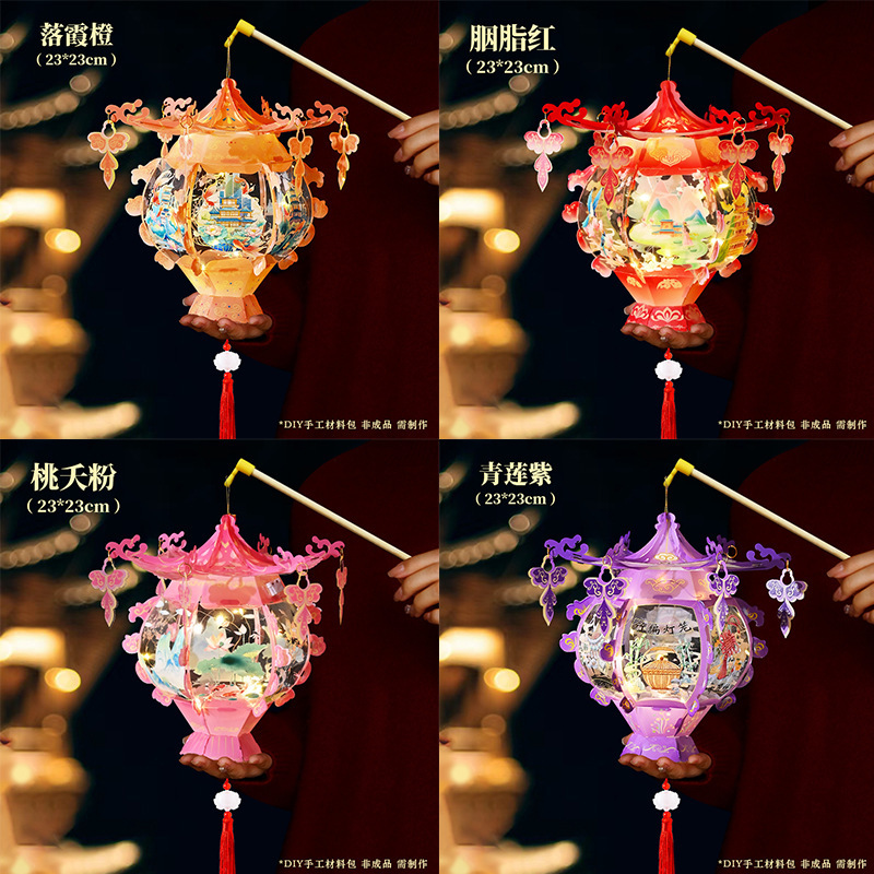 中秋节灯笼PVC儿童手提发光花灯手工diy材料包古典宫廷风立体宫灯
