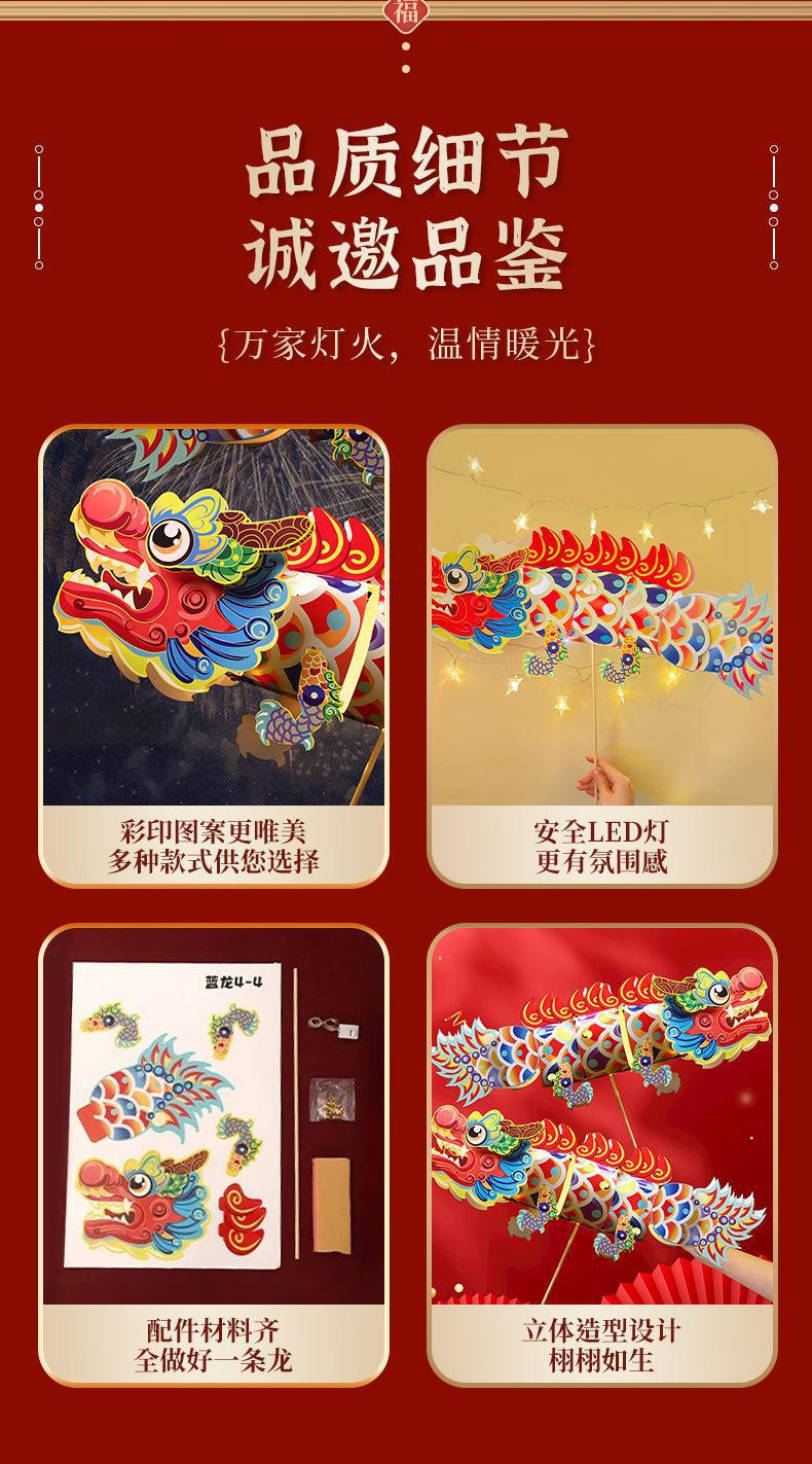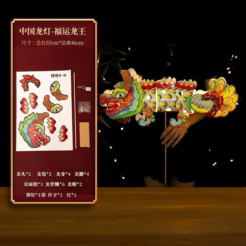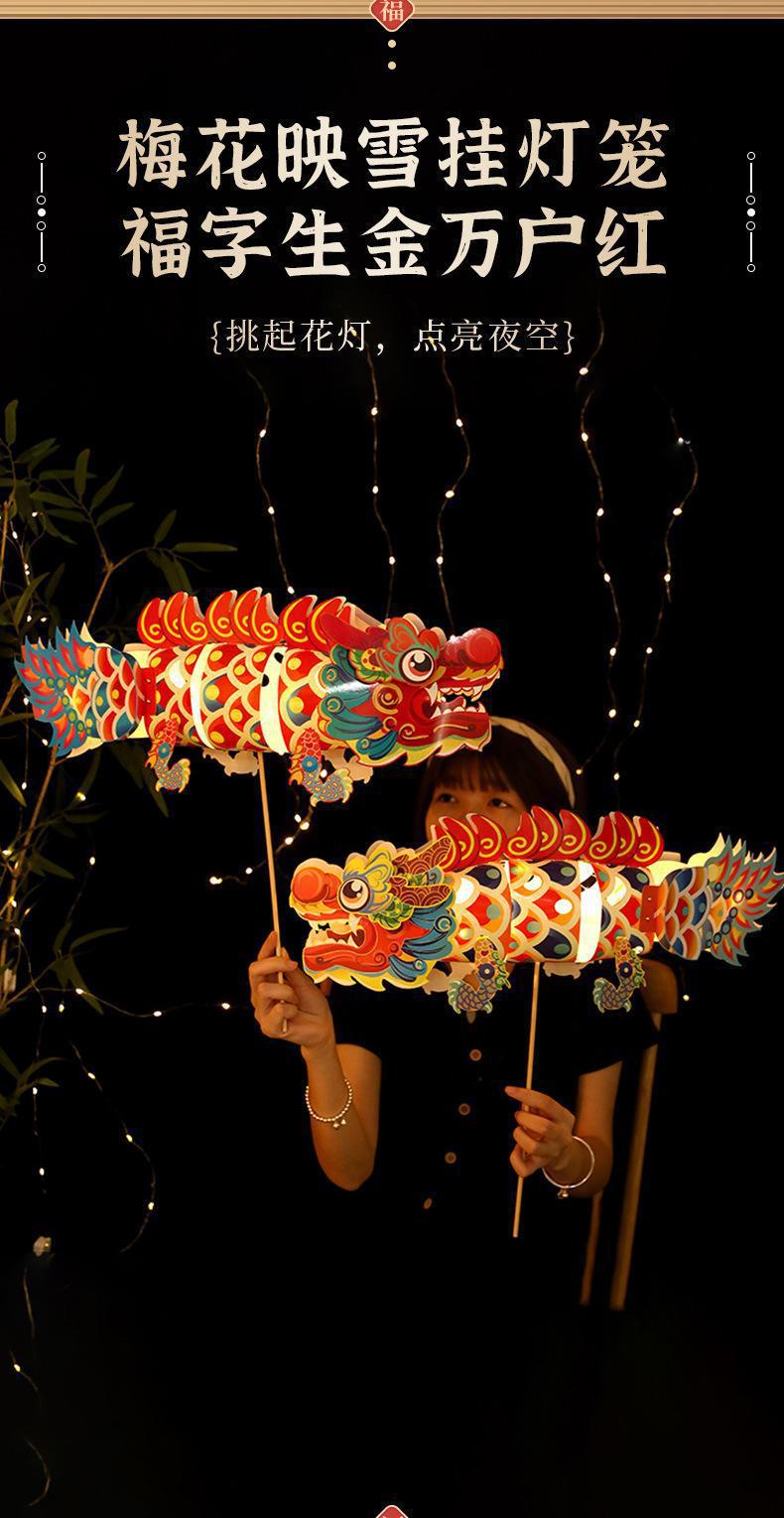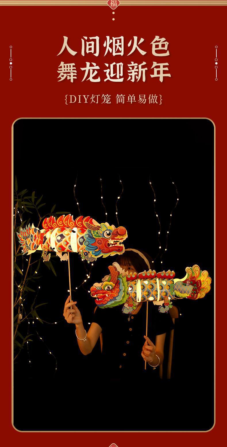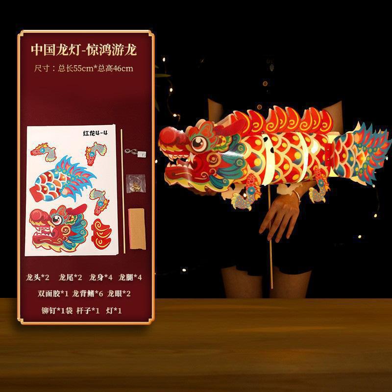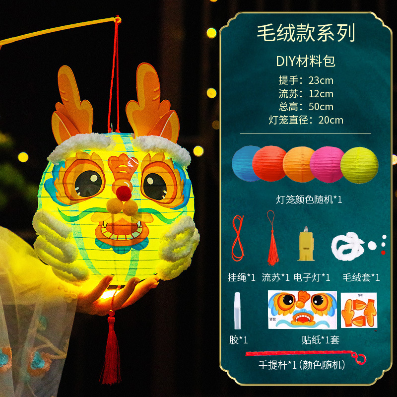 中秋节灯笼手持国潮舞龙古风花灯儿童手工diy材料包纸质发光灯笼
