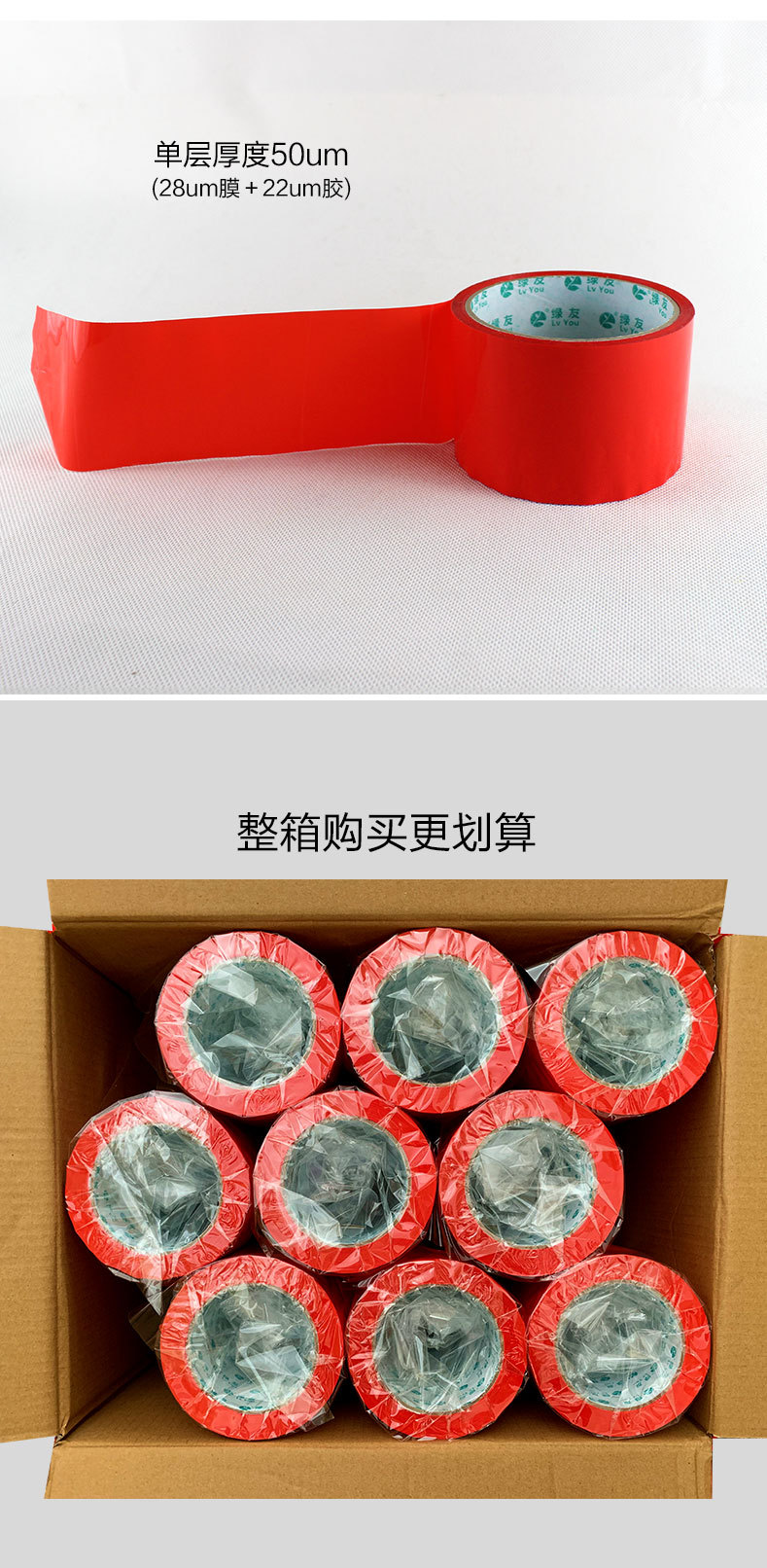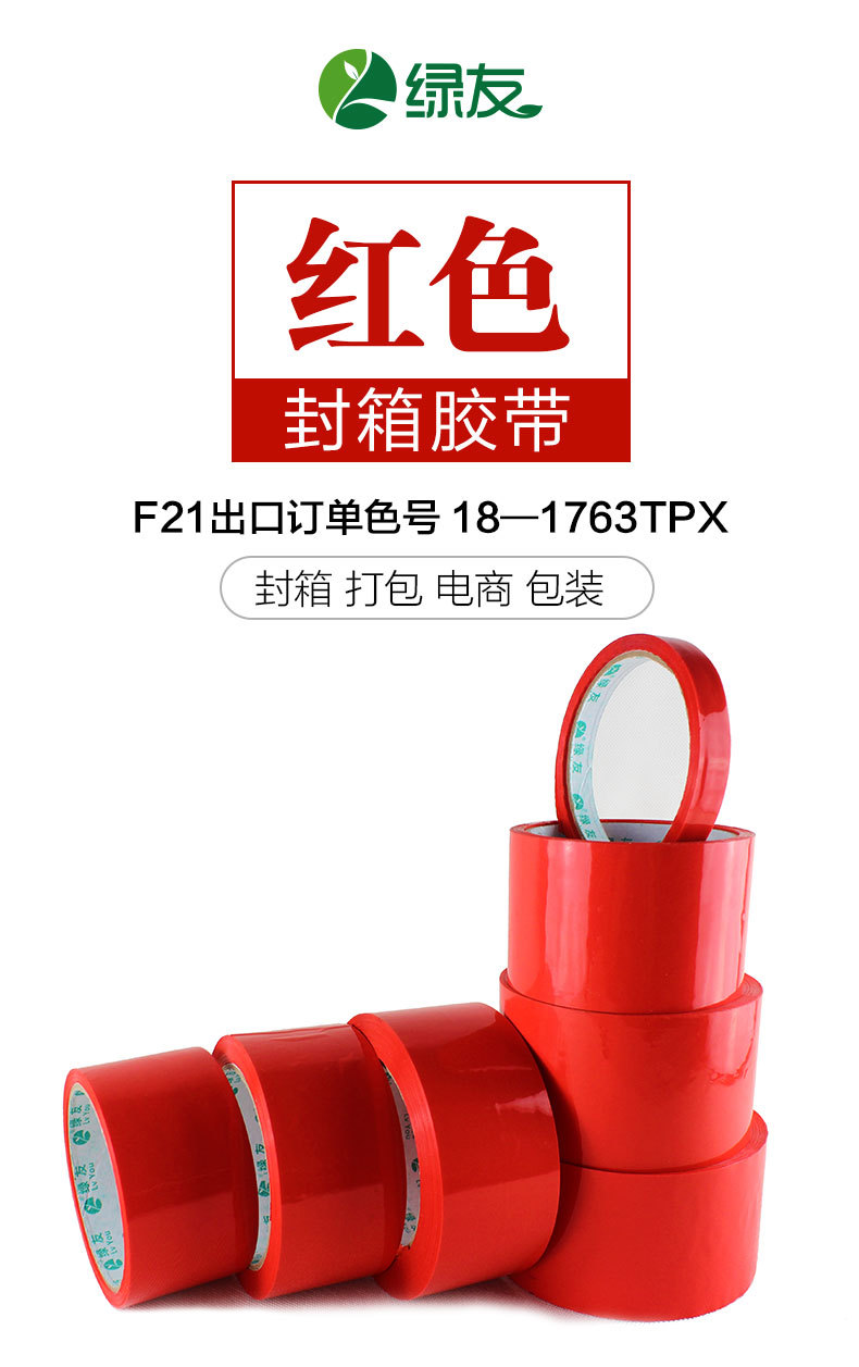 大红色封箱胶带中国红12-72mmF21大卷封箱带外贸出口物流打包胶带