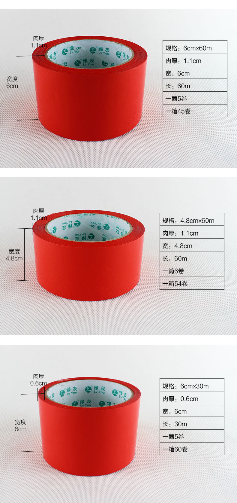 | 红色;4.8cm宽60米 | USD $0.93 | 1000 roll available |