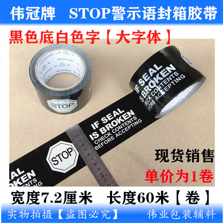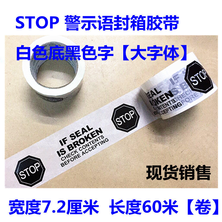 印字警示封箱胶带印刷STOP英文72mm透明底红色字 大字体