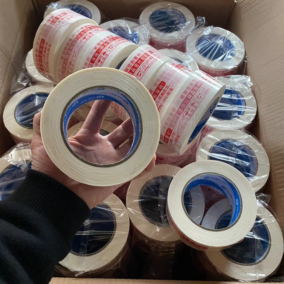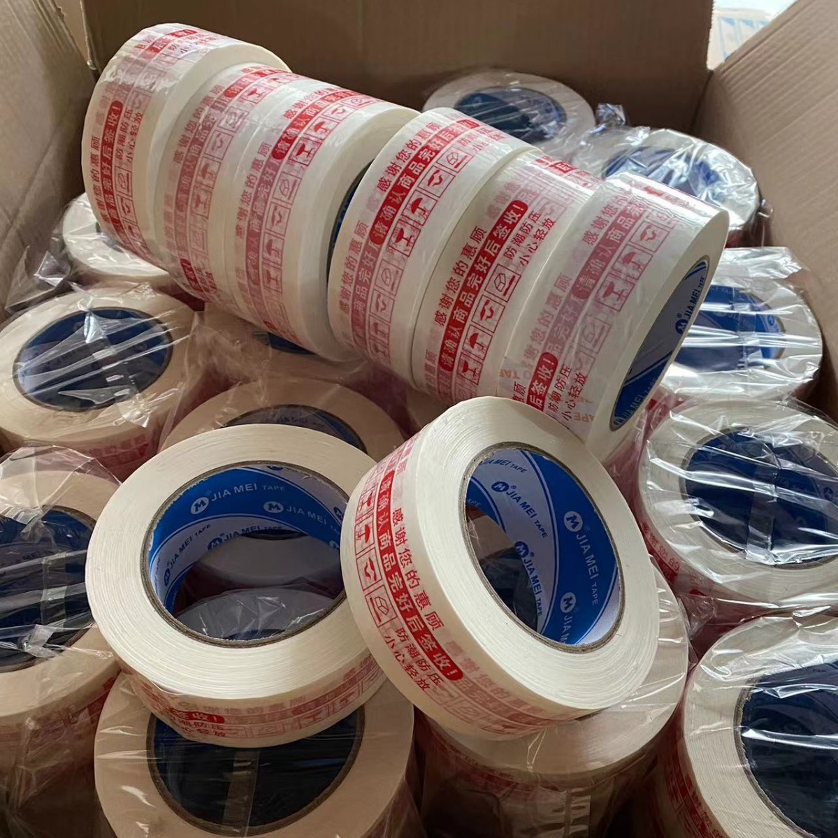 42宽乳白红色字警示语封箱胶带高粘封箱胶乳白胶带胶纸高粘长度足