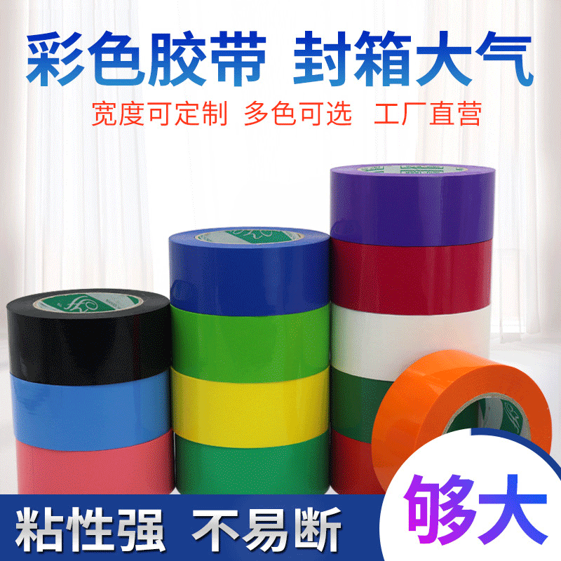 彩色胶带 高粘彩色包装胶带封箱快递打包带印刷黑色红色4.5CM 5.5