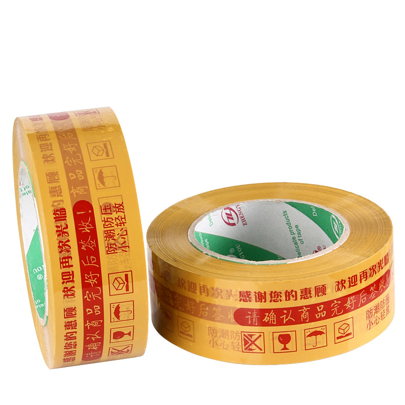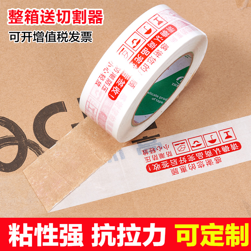 包装材料厂家4.5CM胶带纸胶布 快递封口胶红色警示语封箱胶带