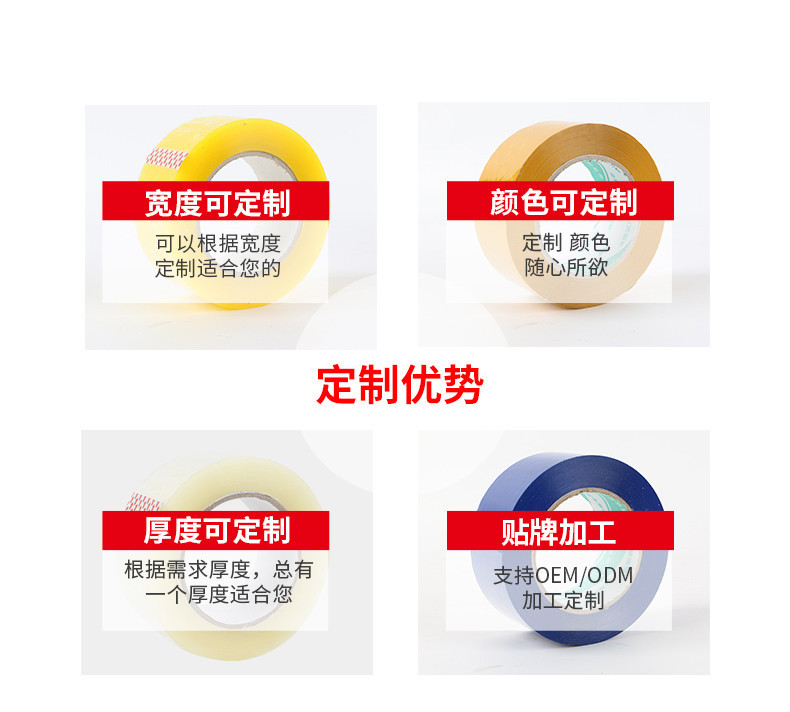 彩色封箱胶带山东高粘打包封口黑色粉色胶带红色胶带纸箱打包整箱