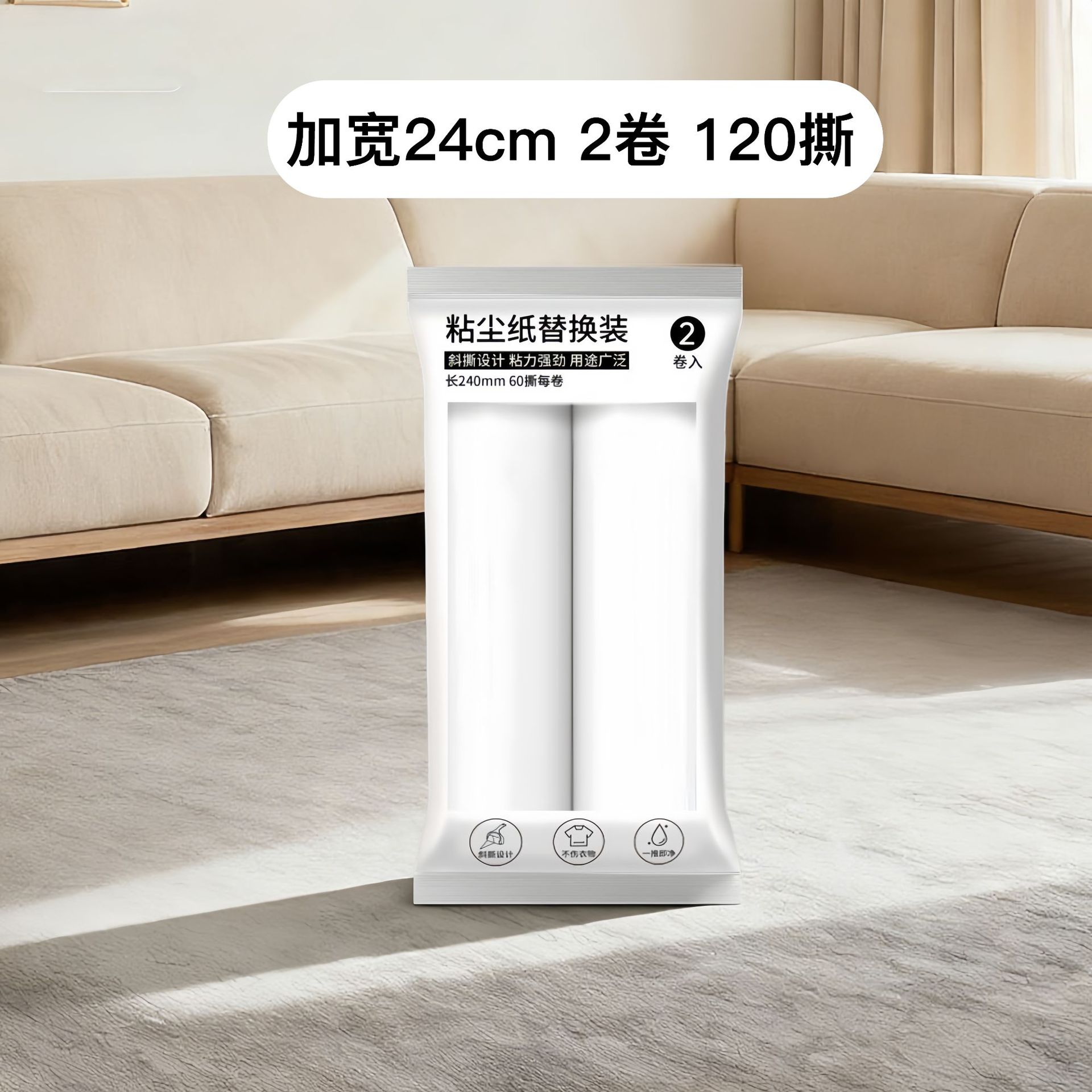 产品数量:粘毛滚24个/箱 替换纸25套/箱