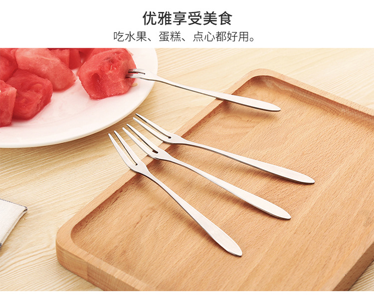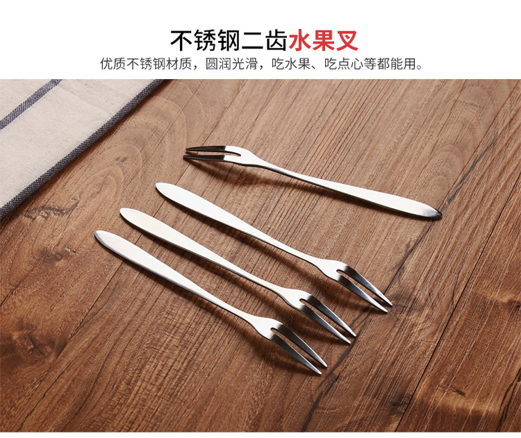 围炉煮茶不锈钢水果叉 西餐具小叉子 二齿水果点心叉蛋糕叉