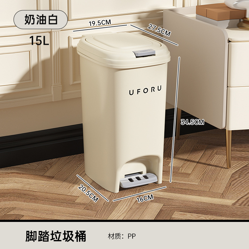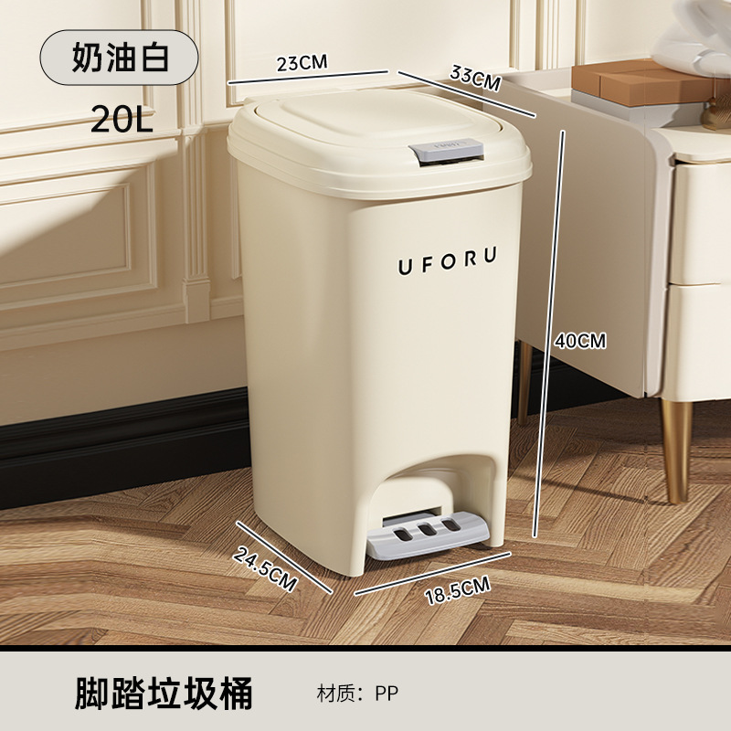 奶油风厨房垃圾桶家用卫生间带盖大容量脚踏式加厚大口径垃圾篓