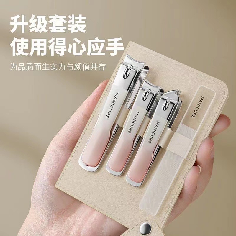 指甲刀4件套渐变色指甲剪套装女士家用单个指甲钳斜口修甲刀工具