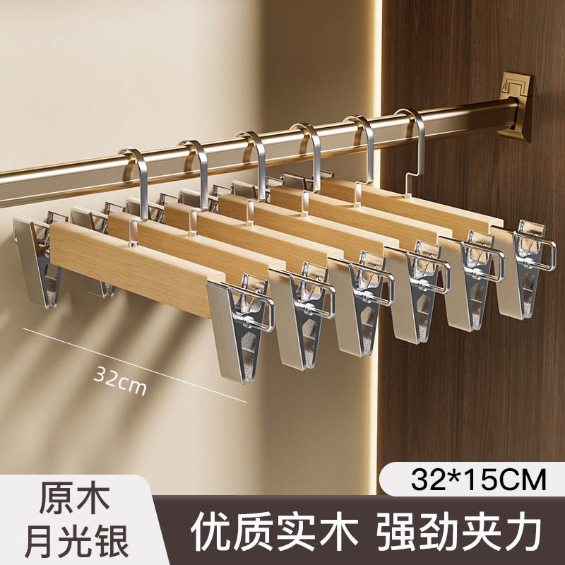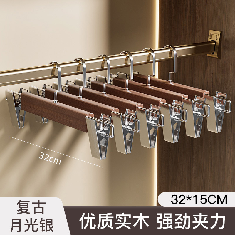 实木裤架夹子款夹裤子挂家用收纳裙子防滑晾晒可伸缩不锈钢裤夹