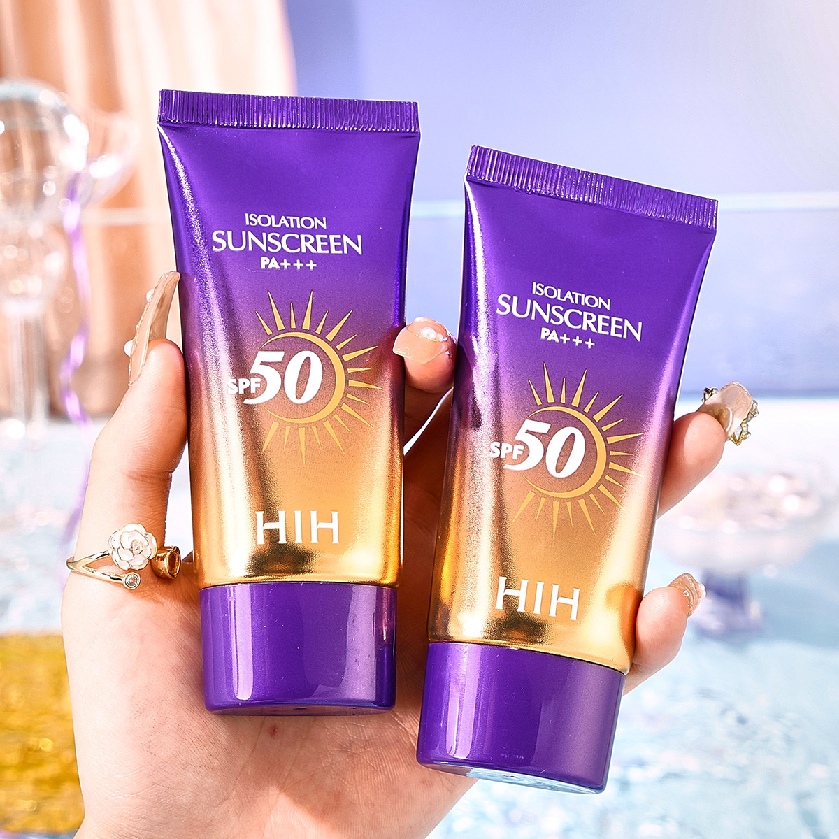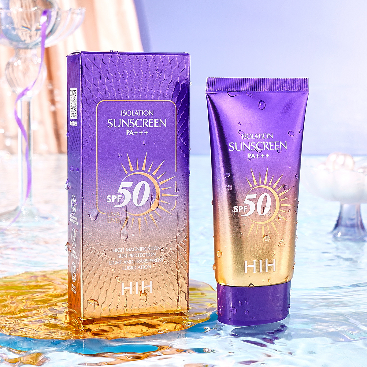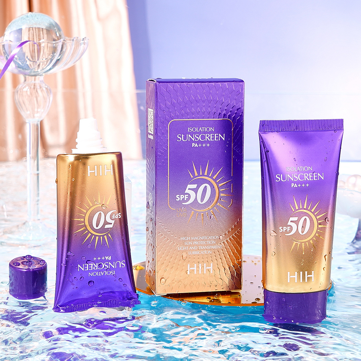HIH隔离防晒乳SPF50 PA+++防水防汗防紫外线持久美白防晒霜三合一