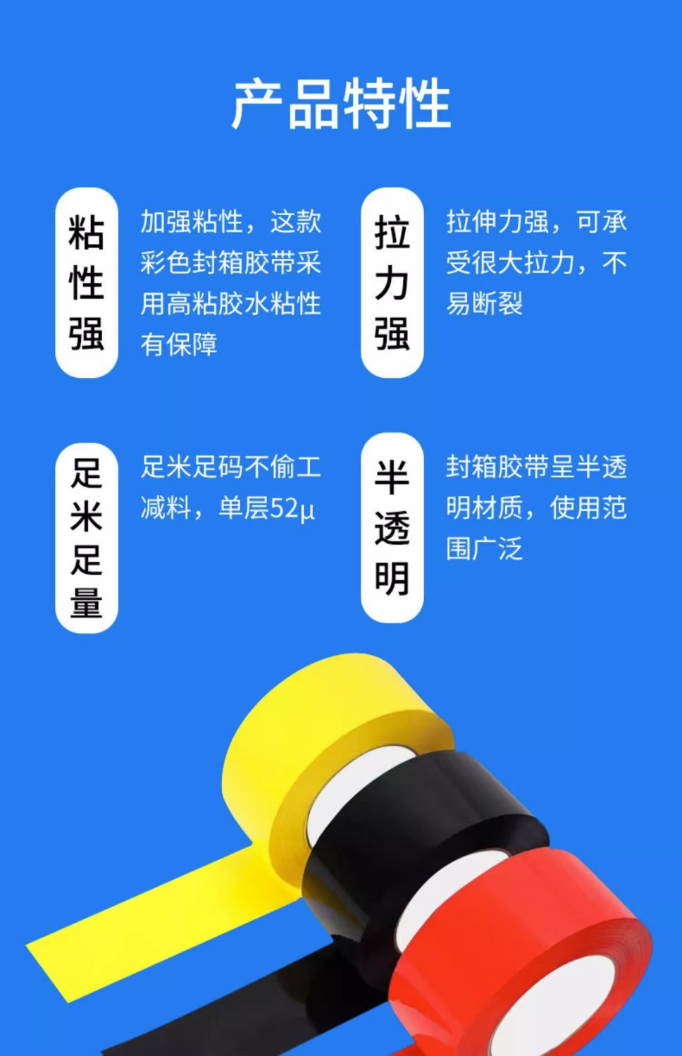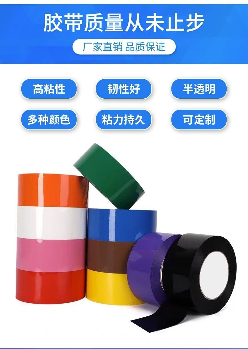 彩色封箱胶带大卷绿色红色黑色蓝色白色透明加宽快递打包胶带批发