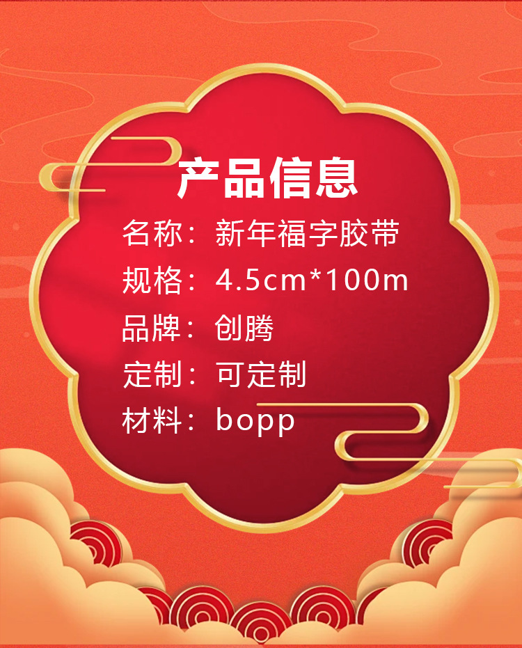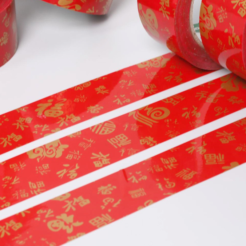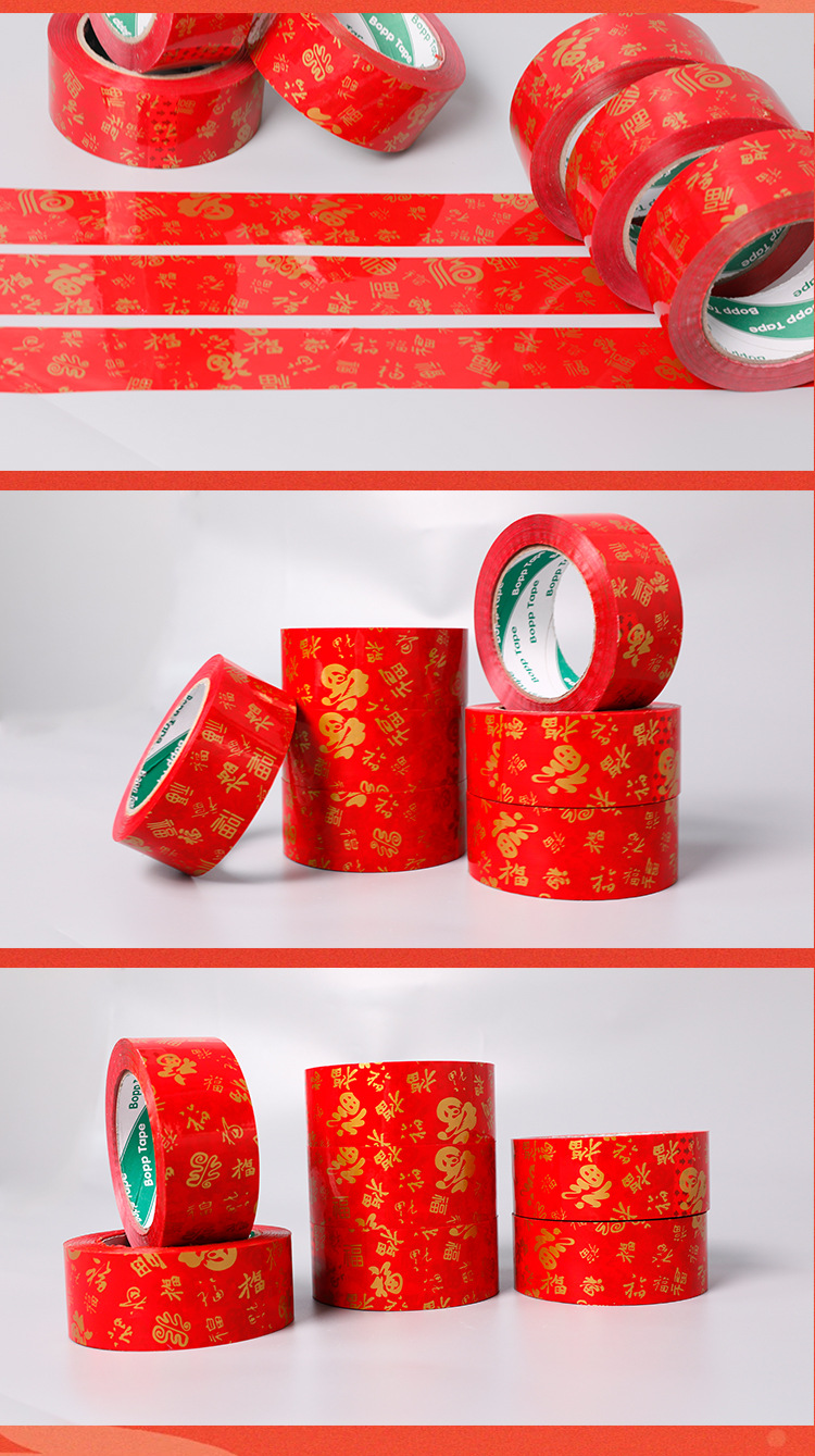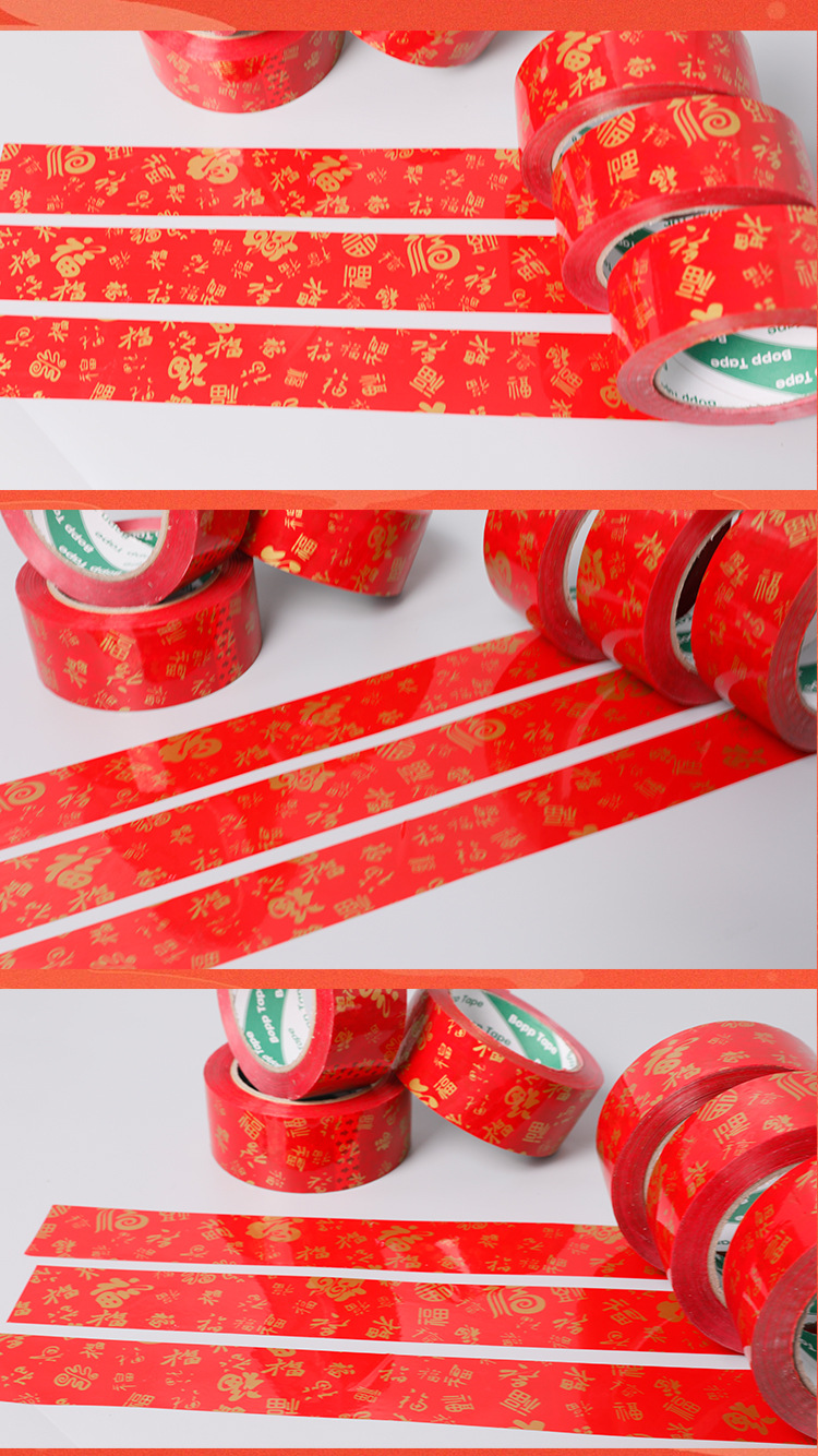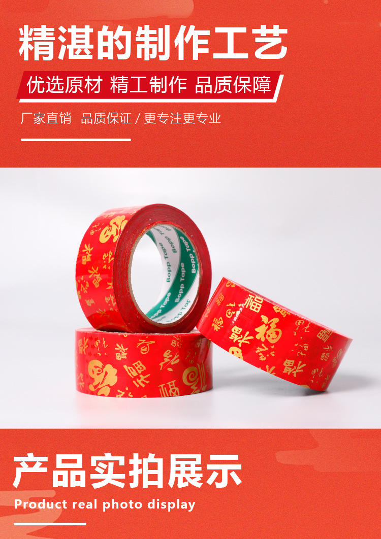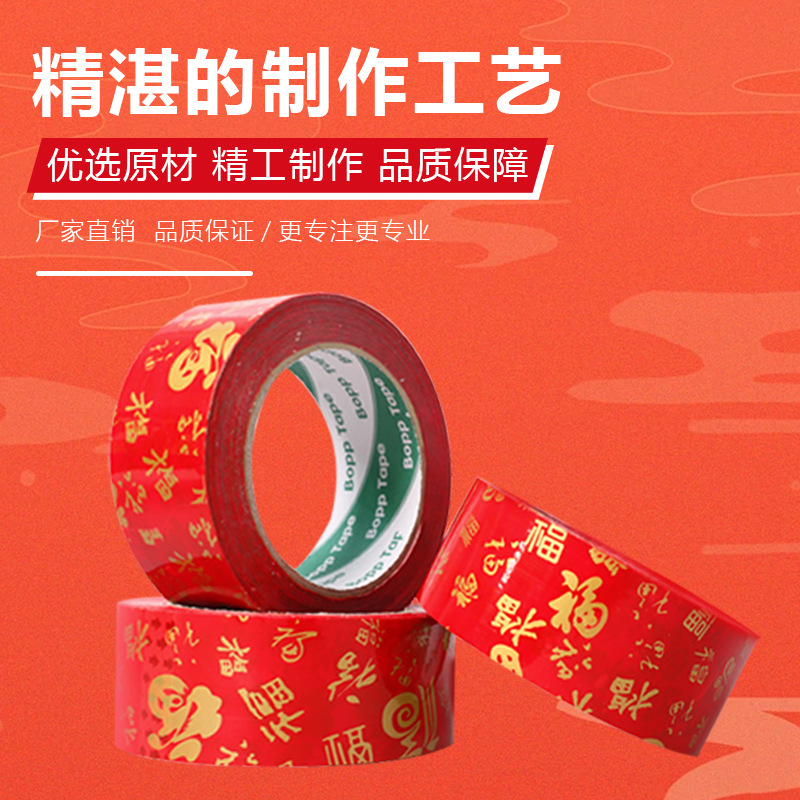 新年红色福气福字胶带物流打包封箱胶纸高粘胶布厂家大卷整箱批发