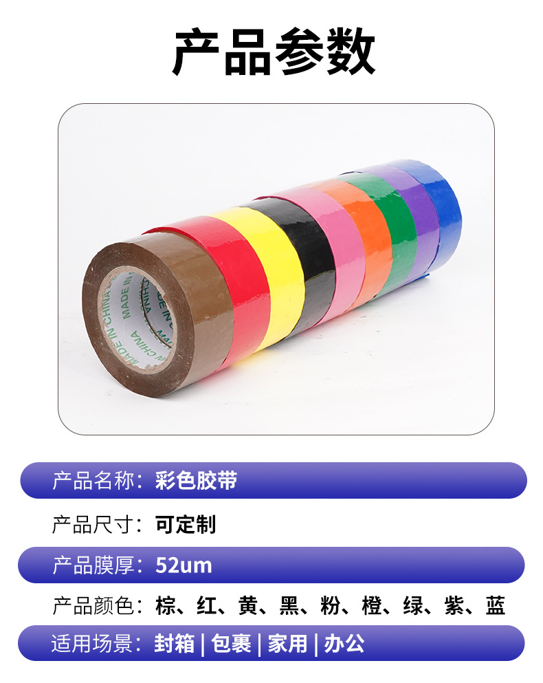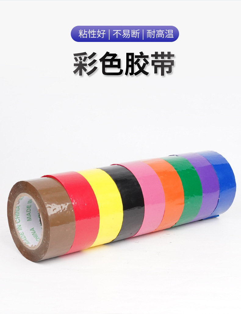 彩色胶带快递打包封口不留胶高粘胶带紫色蓝色绿色红色黑色高粘性