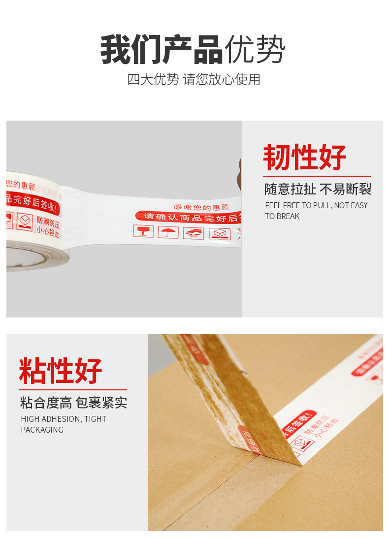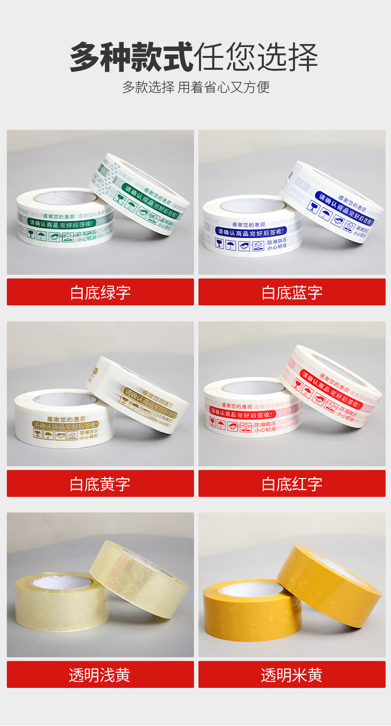 透明红色黄色红色绿色金色胶带警示语快递打包胶带/封箱胶带批发