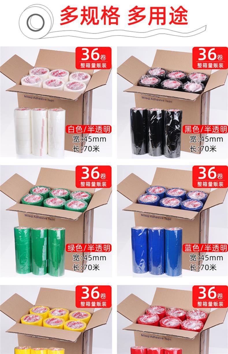 彩色封箱胶带大卷绿色红色黑色蓝色白色透明加宽快递打包胶带