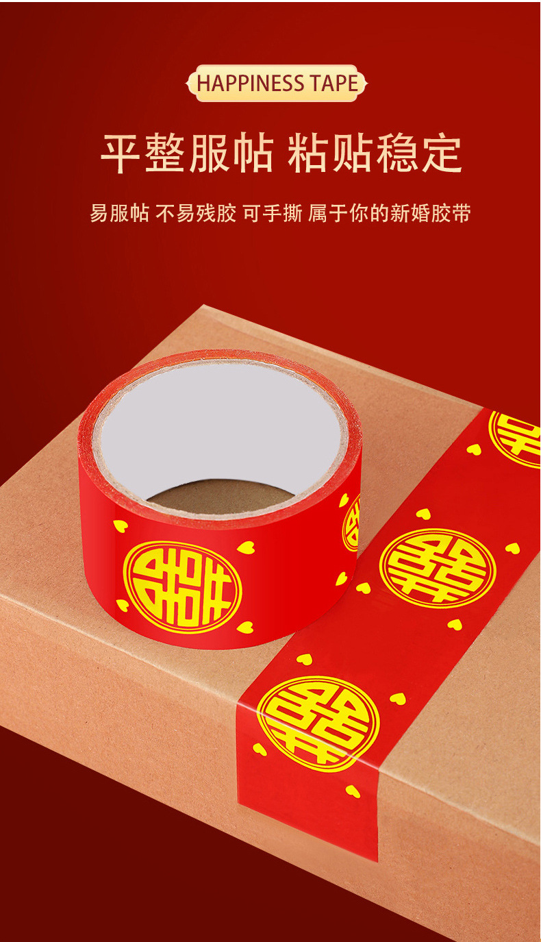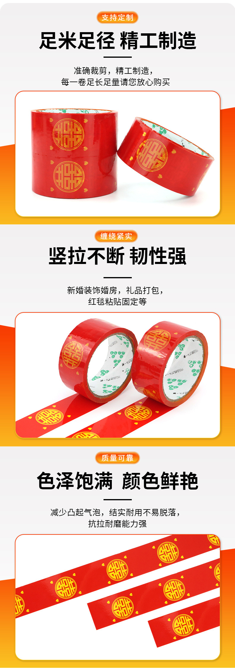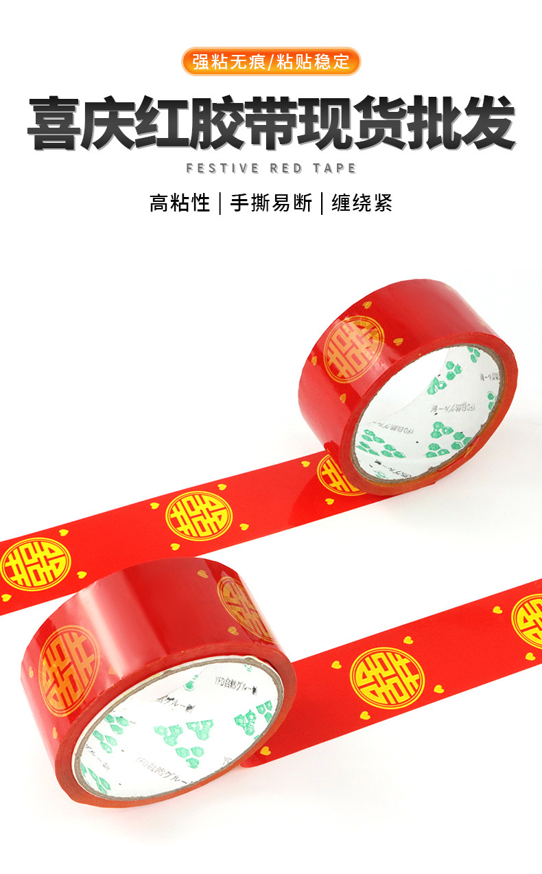 喜字婚庆结婚胶带红色婚房装饰婚庆用品封口创意单面胶带批发